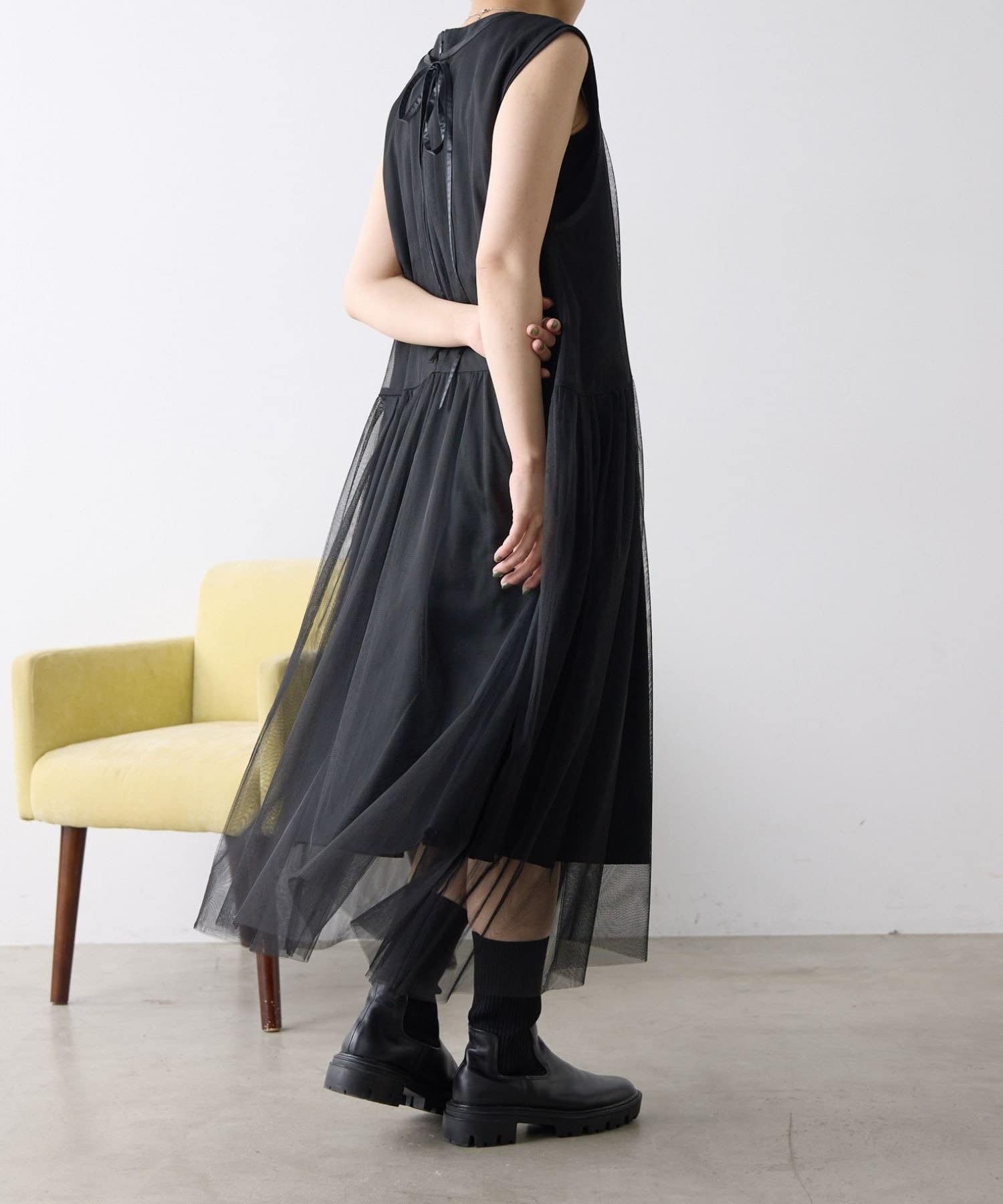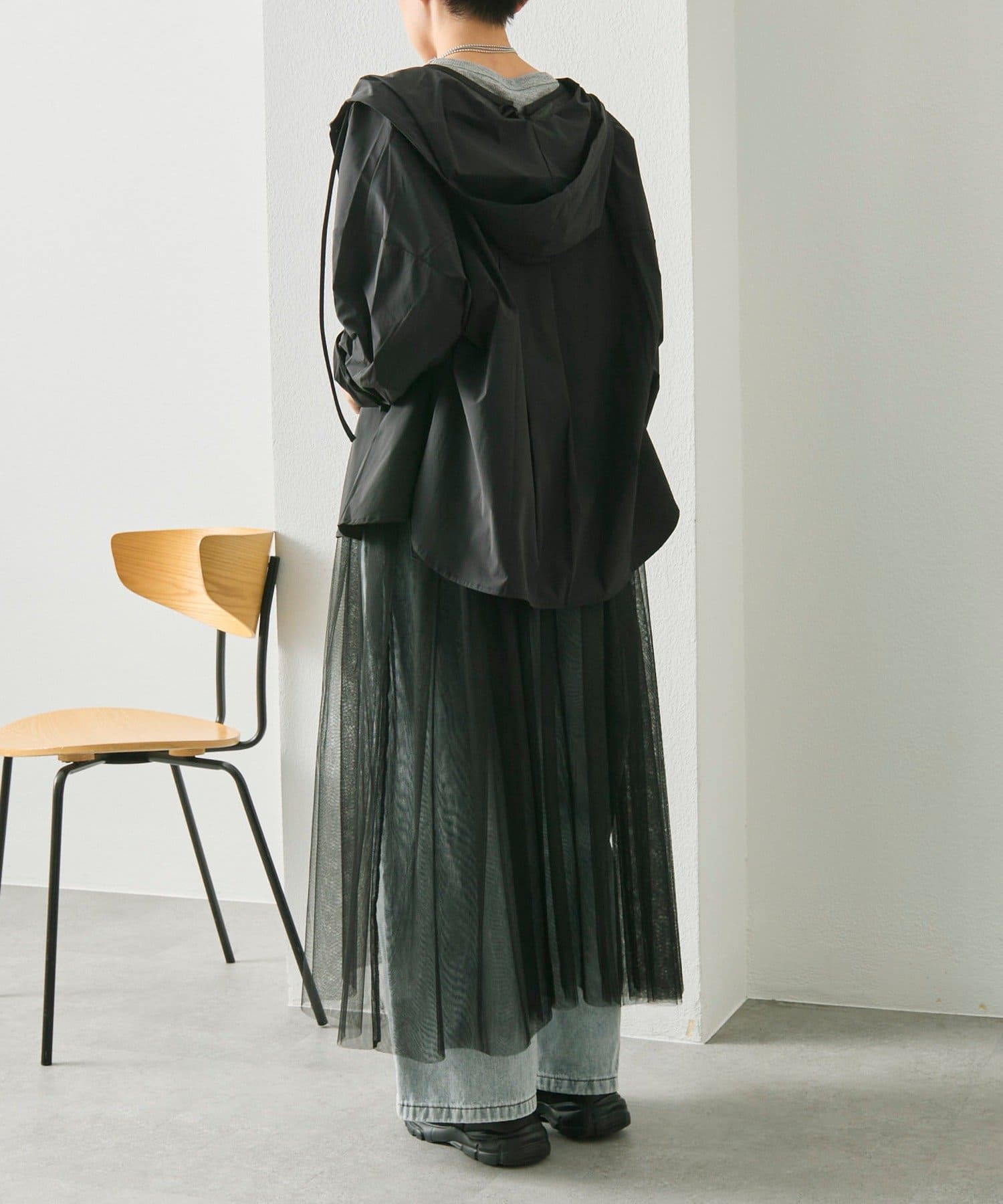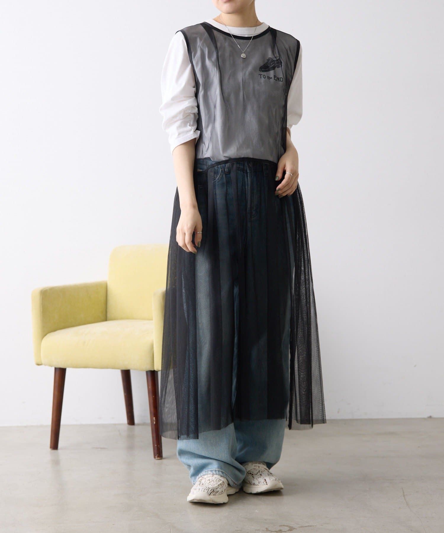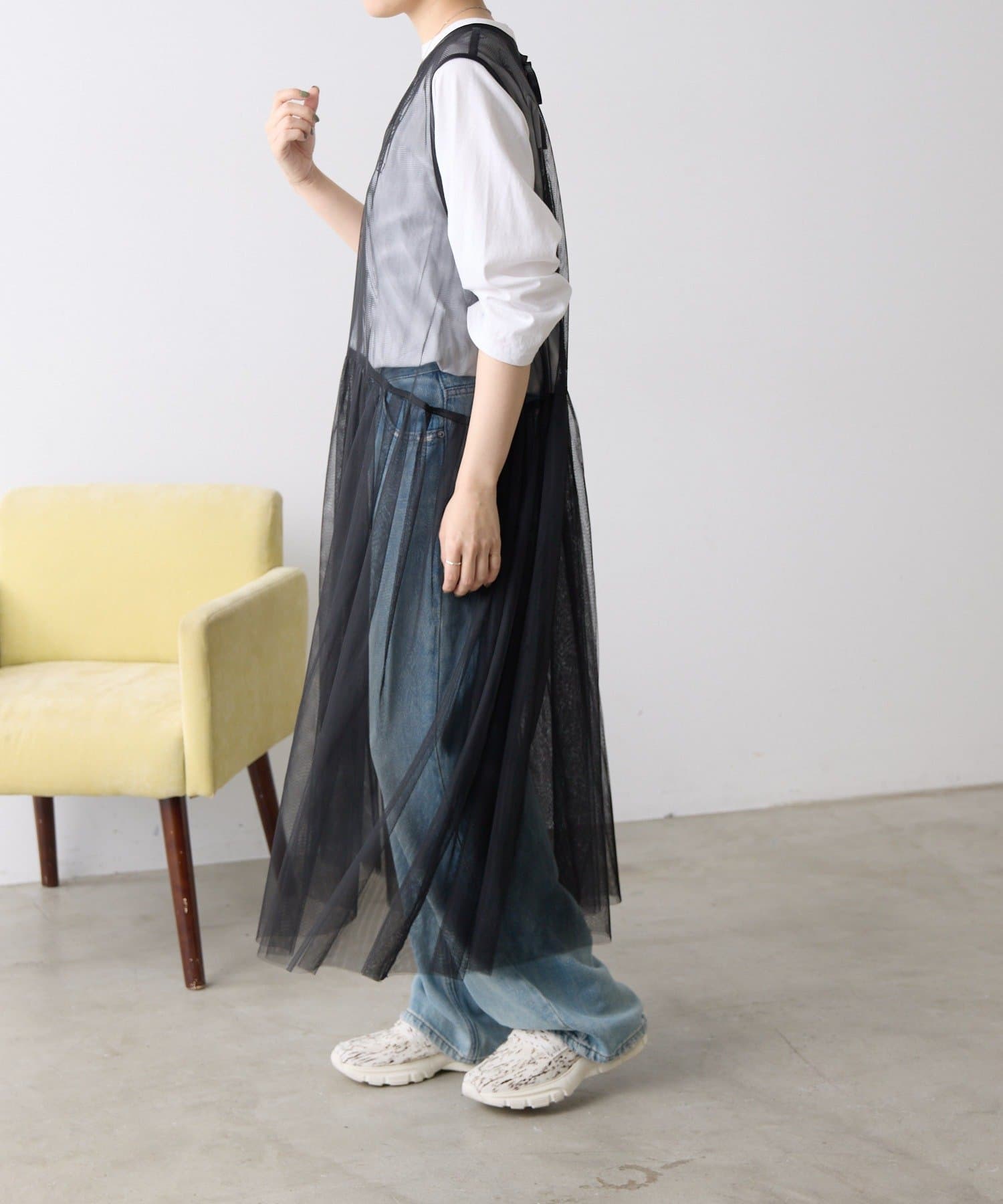 ・透け感あるチュールがフェミニンな魅力を惹き立てて