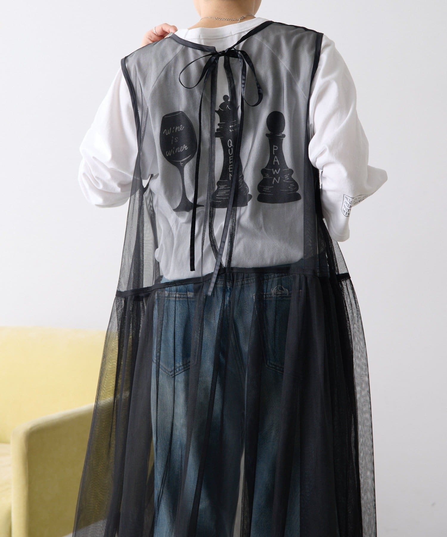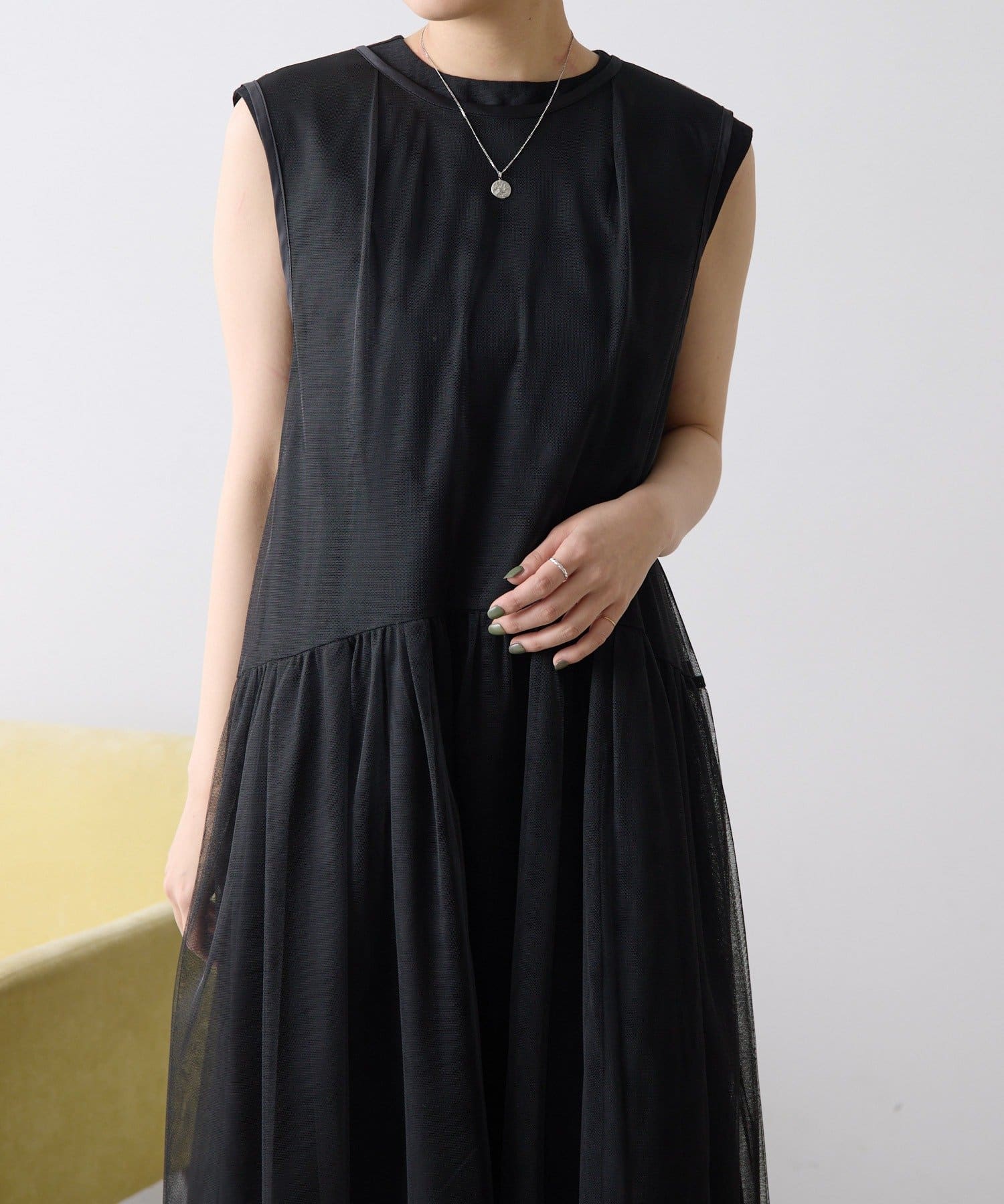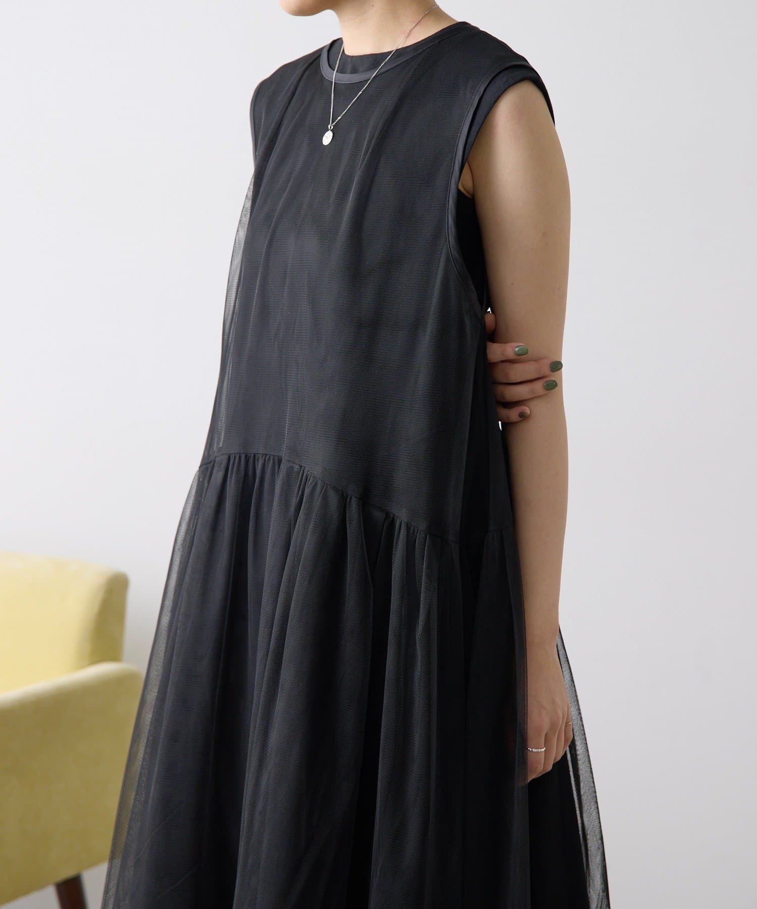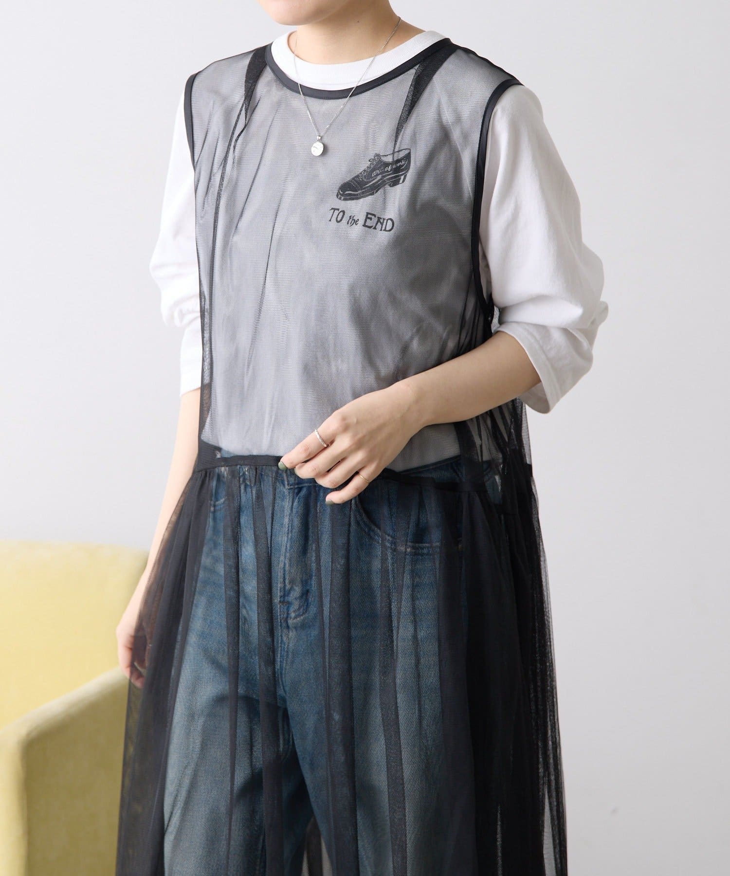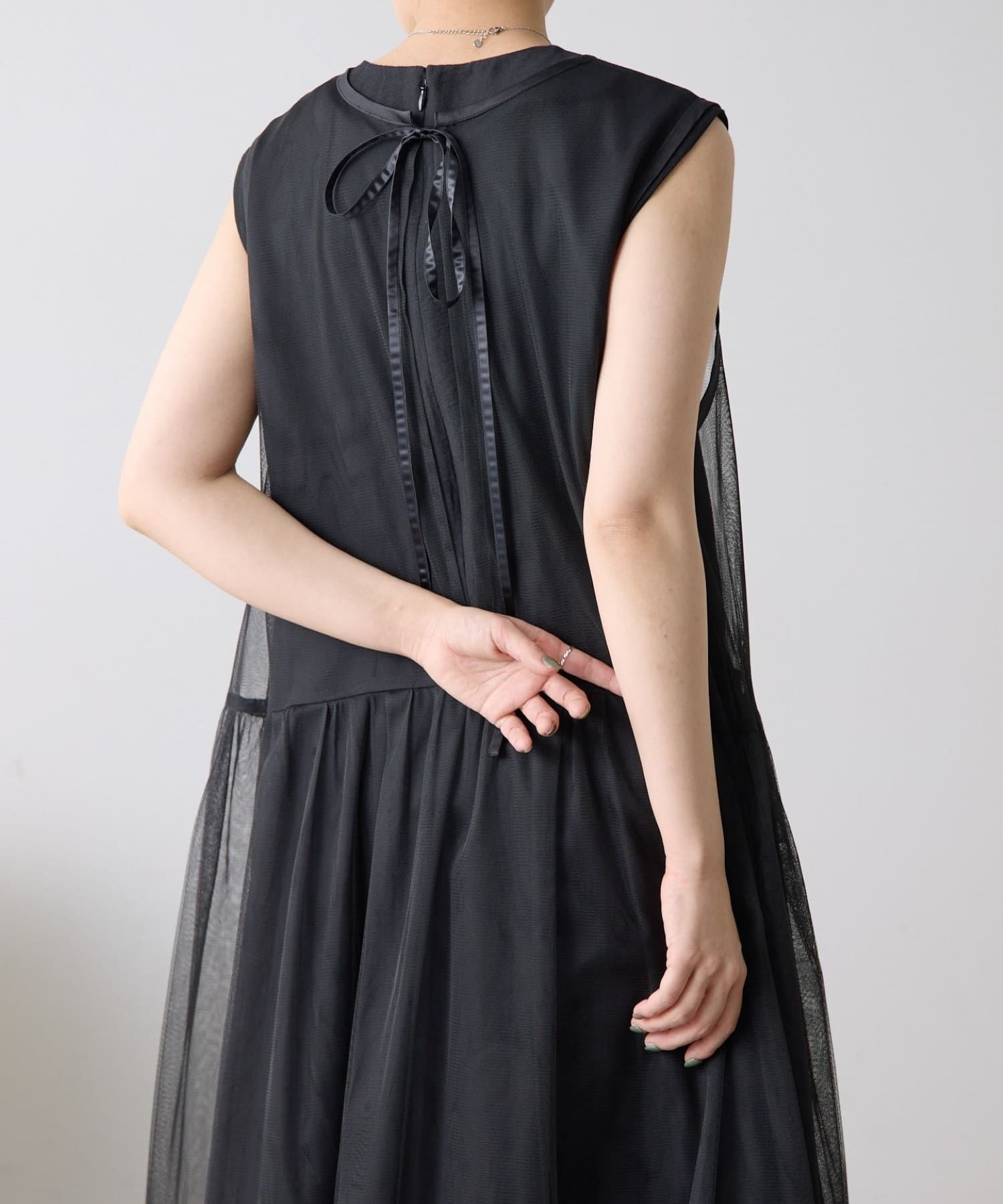 ・透け感あるチュールがフェミニンな魅力を惹き立てて