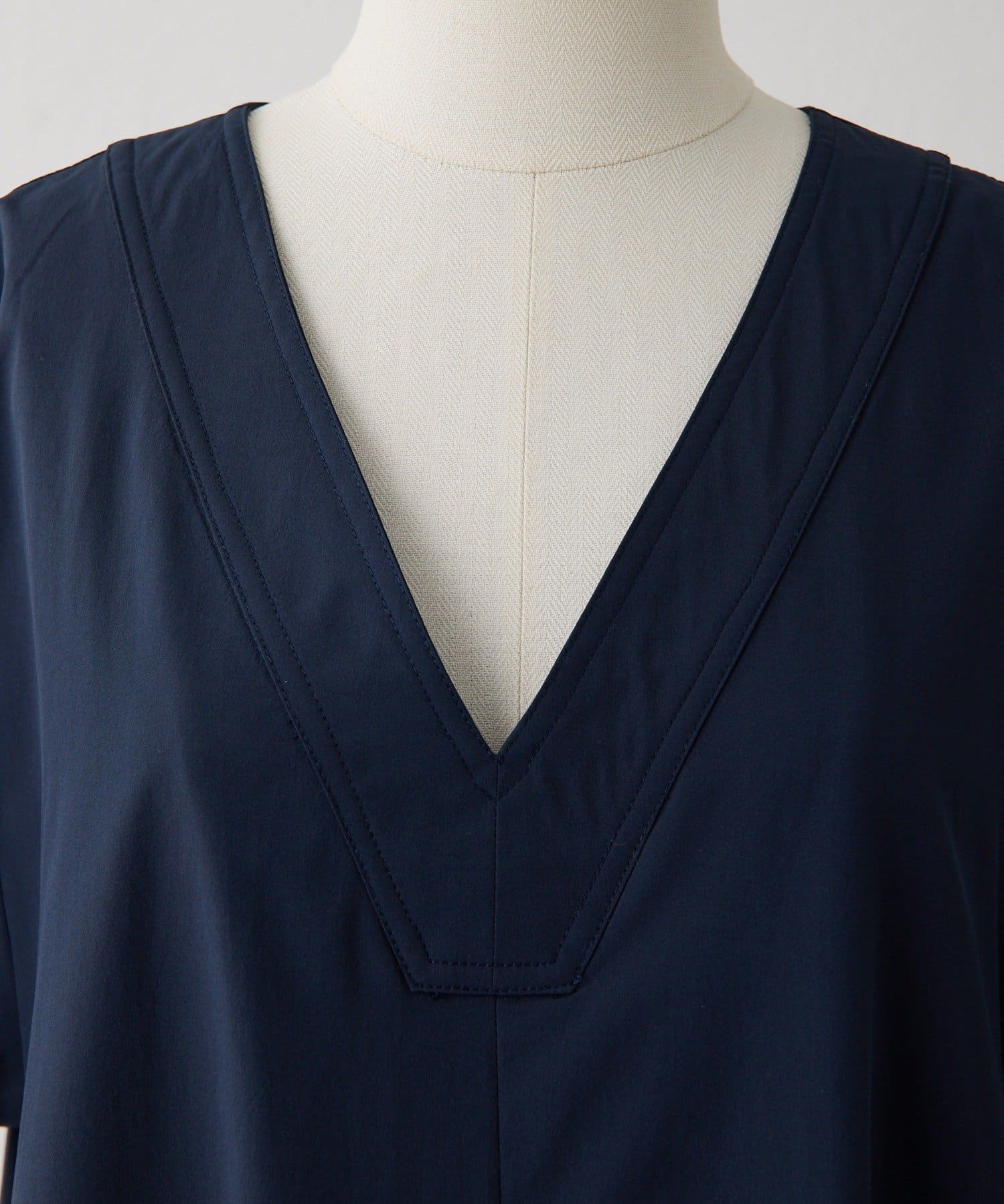 ・シャープなVネックはエレガントな雰囲気でお顔周りすっきり見え
