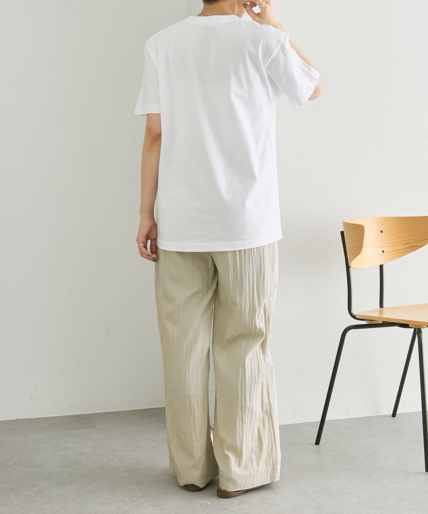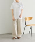 ワンポイントデザインなので柄物のボトムスとも相性良く、まとまりやすいです。