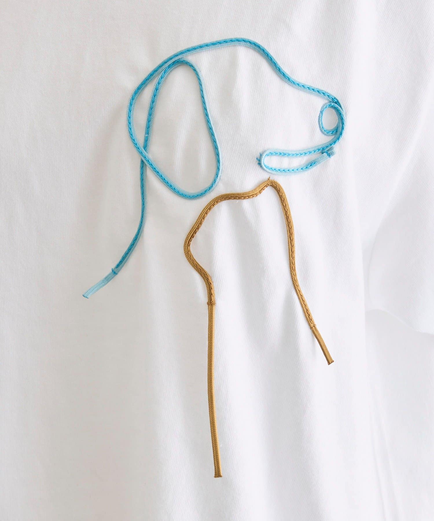 ・紐を動物のシルエット型に縫い付けた胸元のデザインがポイント