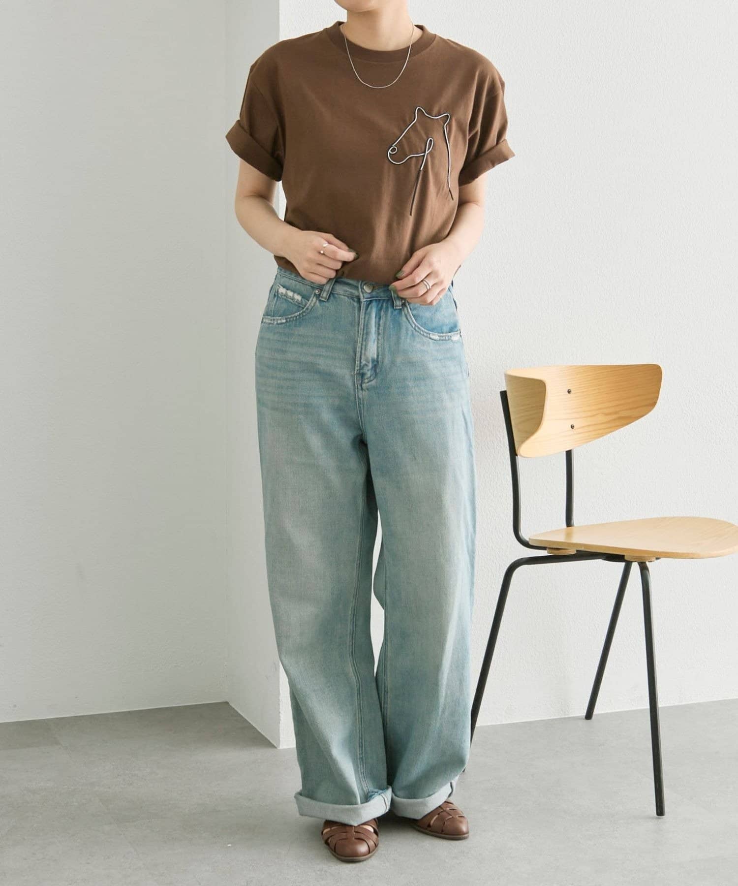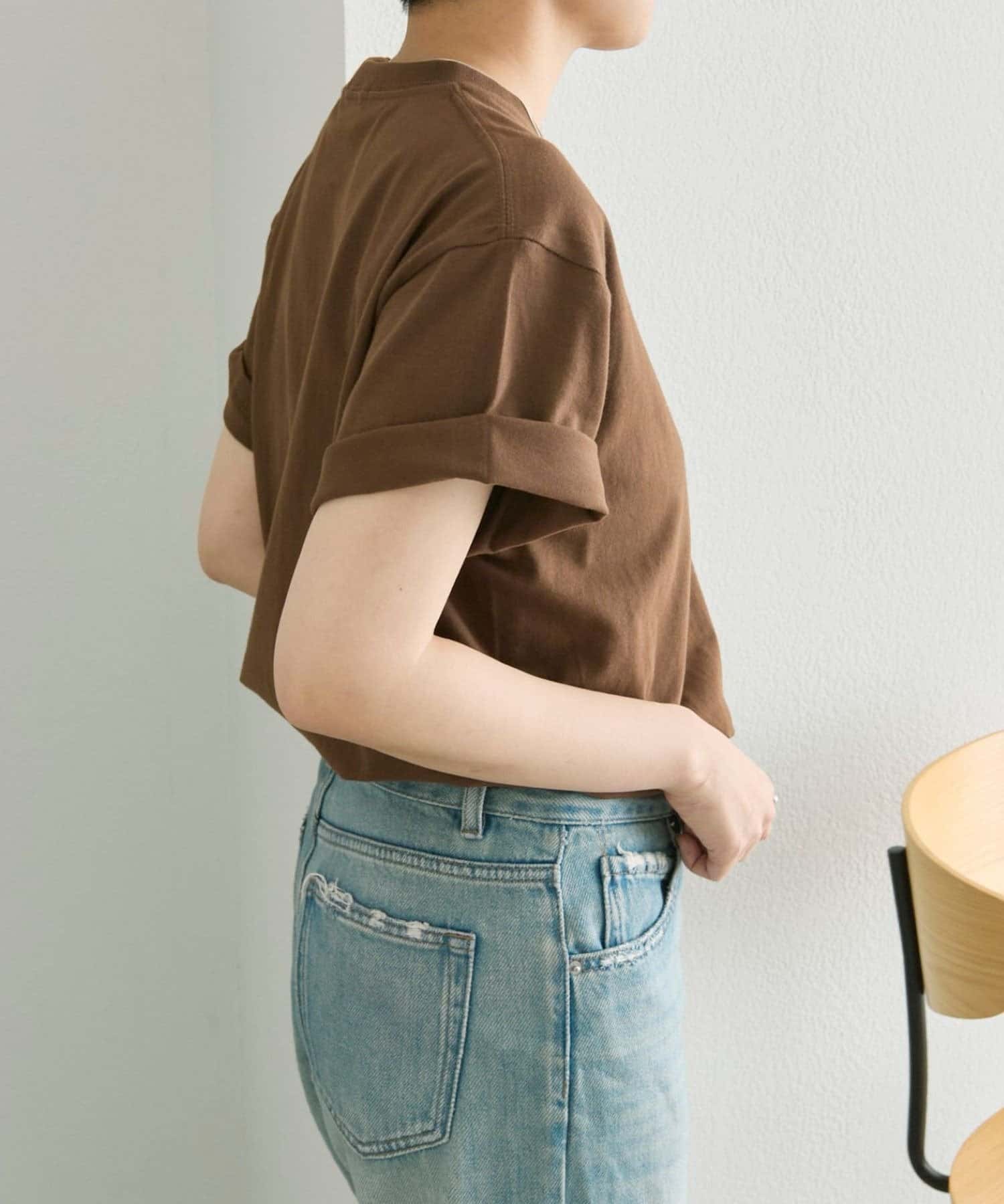 シンプルなデザインなので、袖まくりをしたりアクセの重ね付けなど