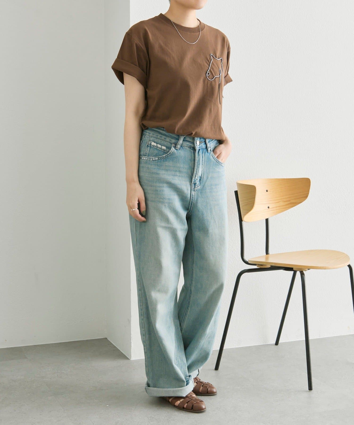 胸元の動物刺しゅうがポイントのデザインTシャツ