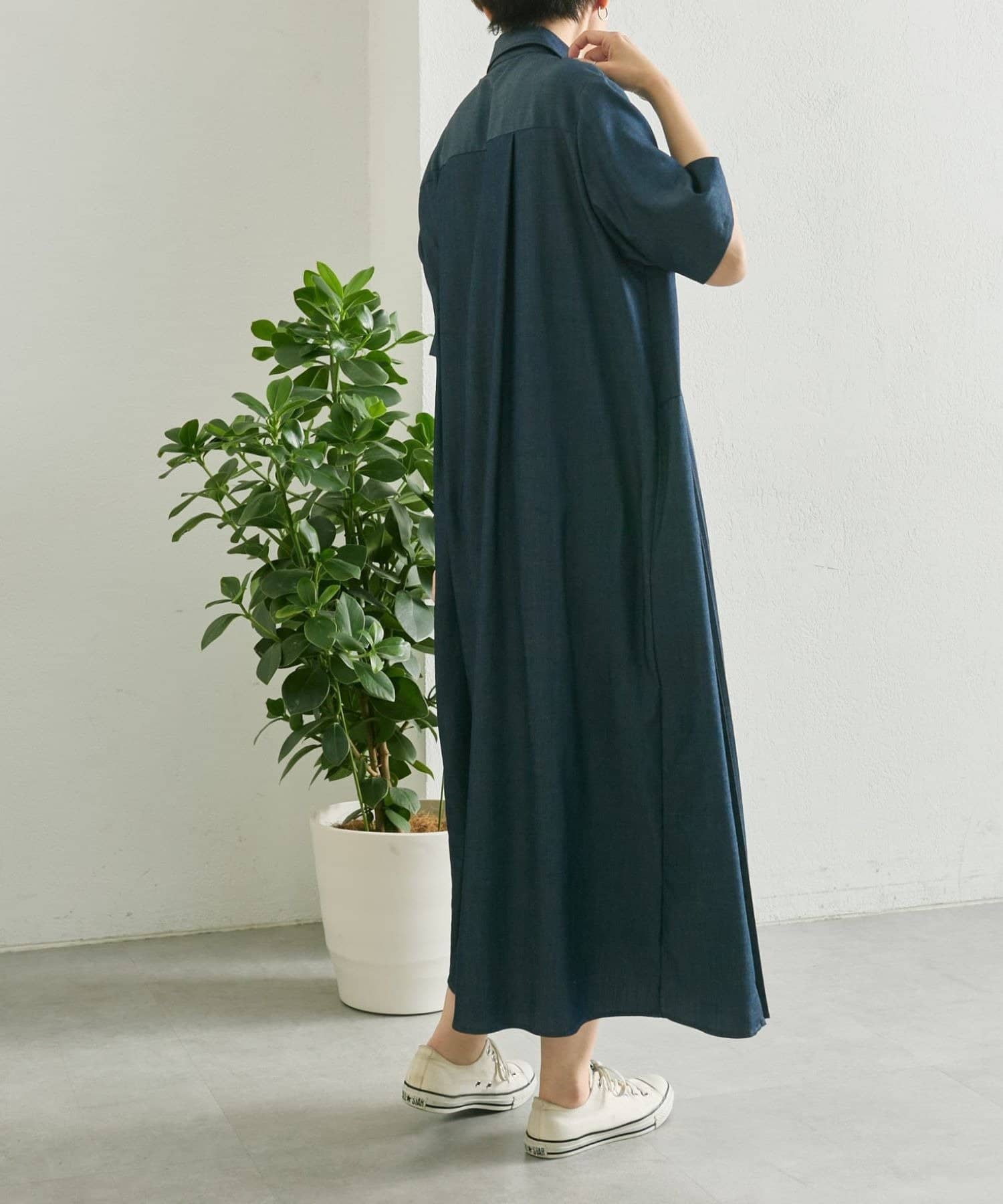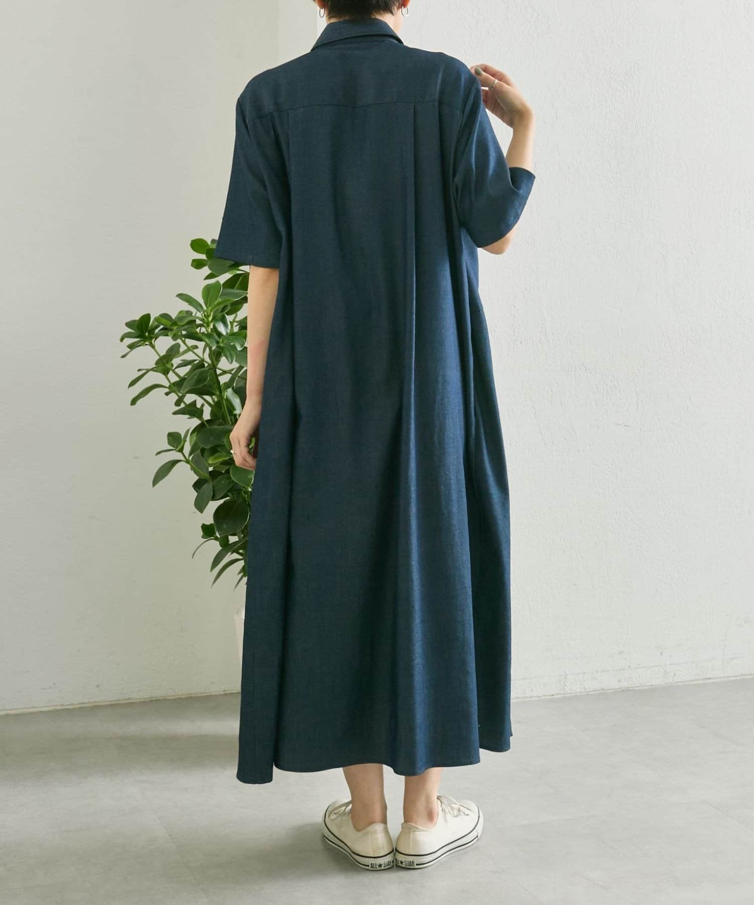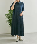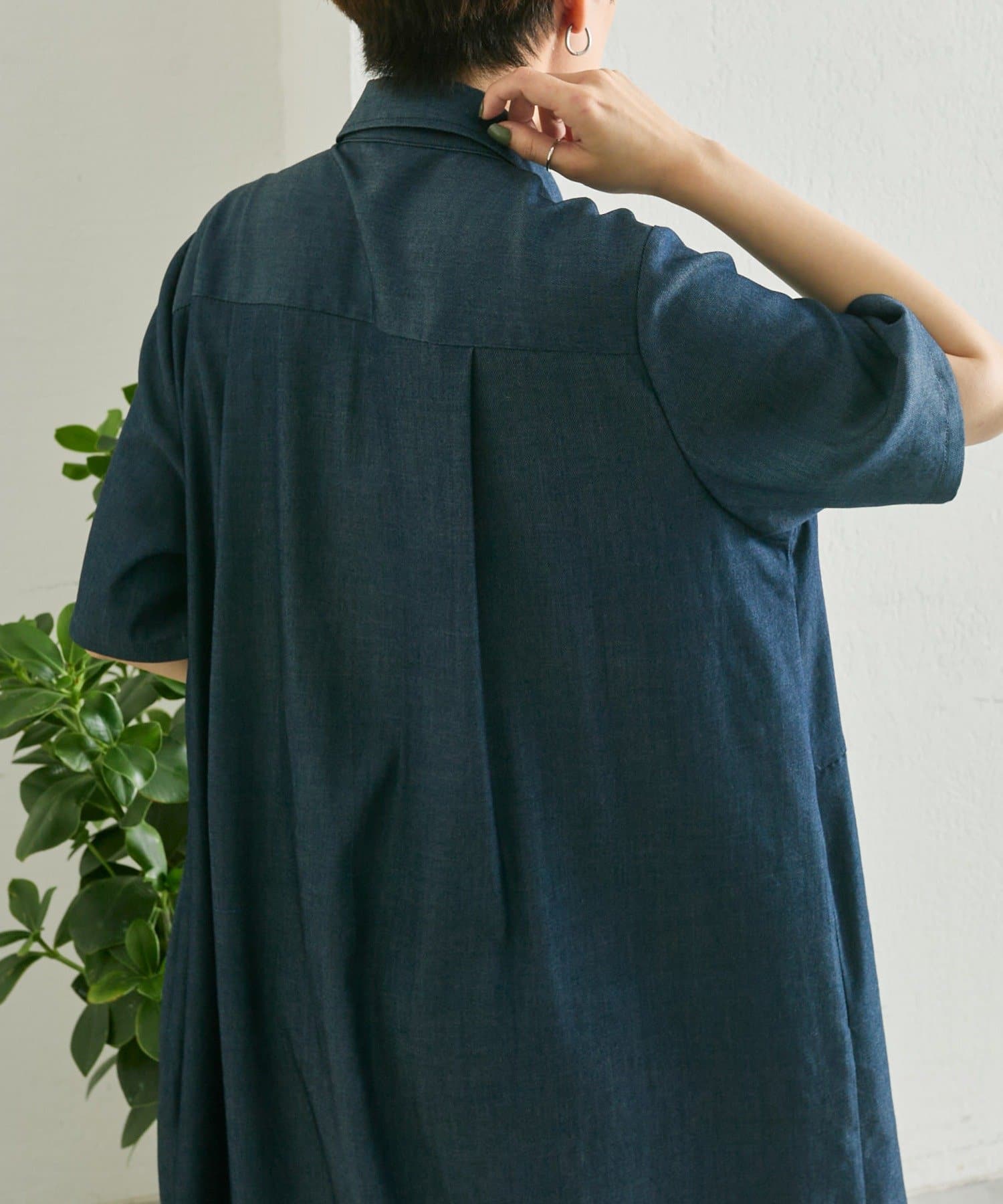 ・デニムライクな薄手の素材を使用したワンピ