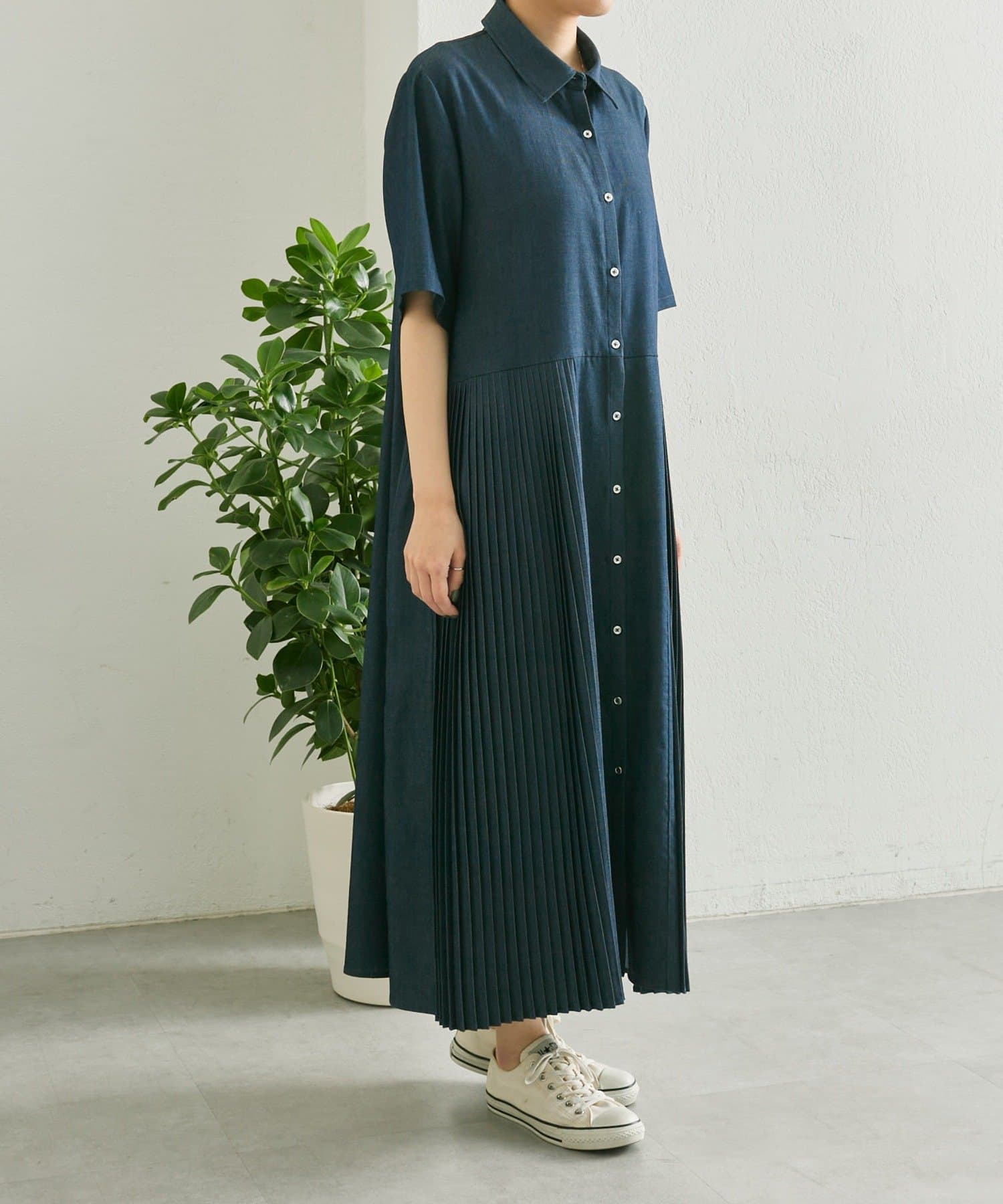 ear PAPILLONNER(イア パピヨネ) 《リラックス》デニムプリーツワンピース【SUM1 STYLE(スミスタイル)】
