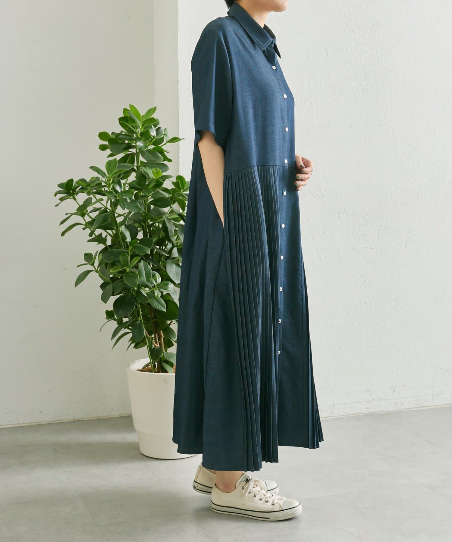 《リラックス》デニムプリーツワンピース【SUM1 STYLE(スミスタイル)】