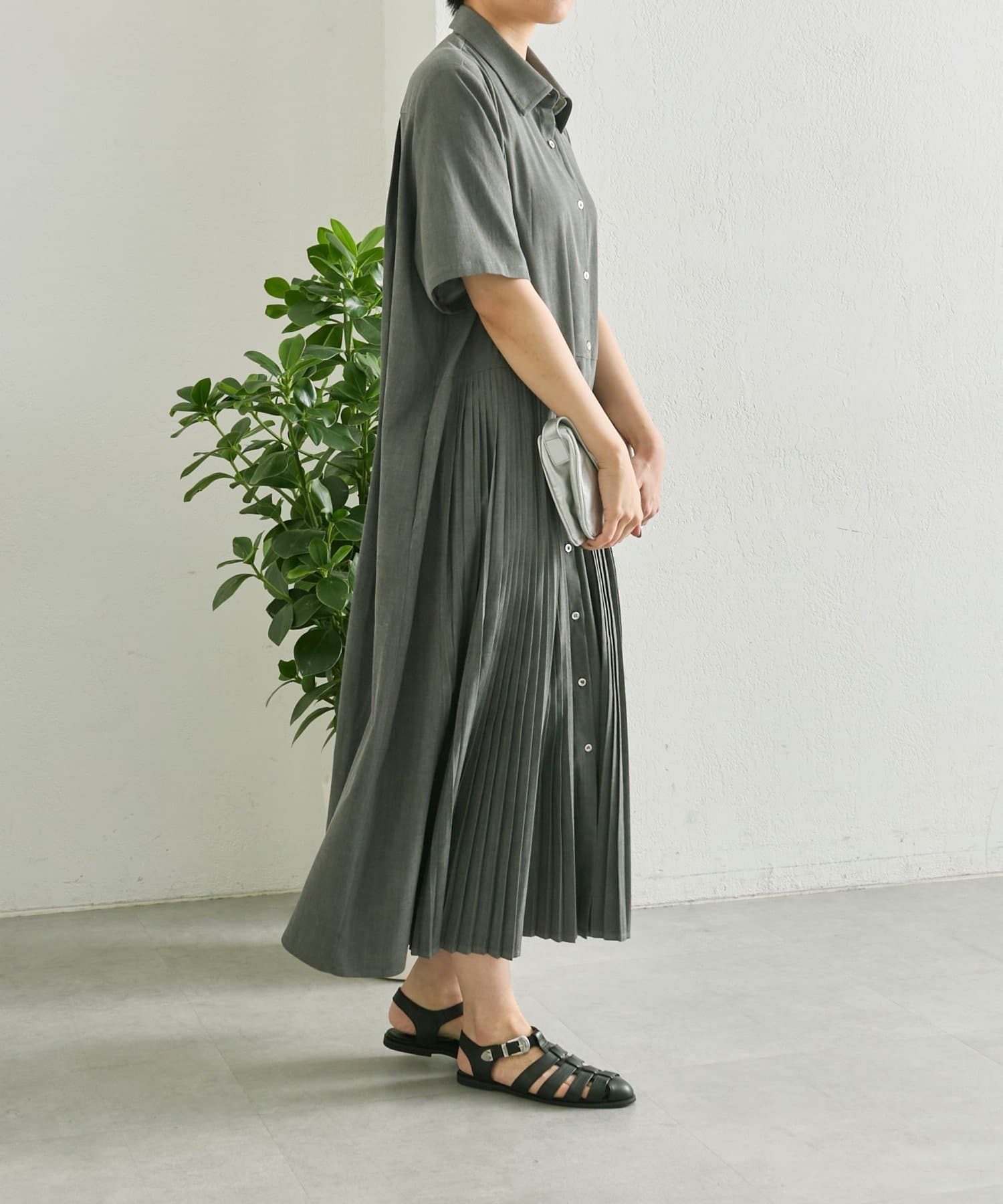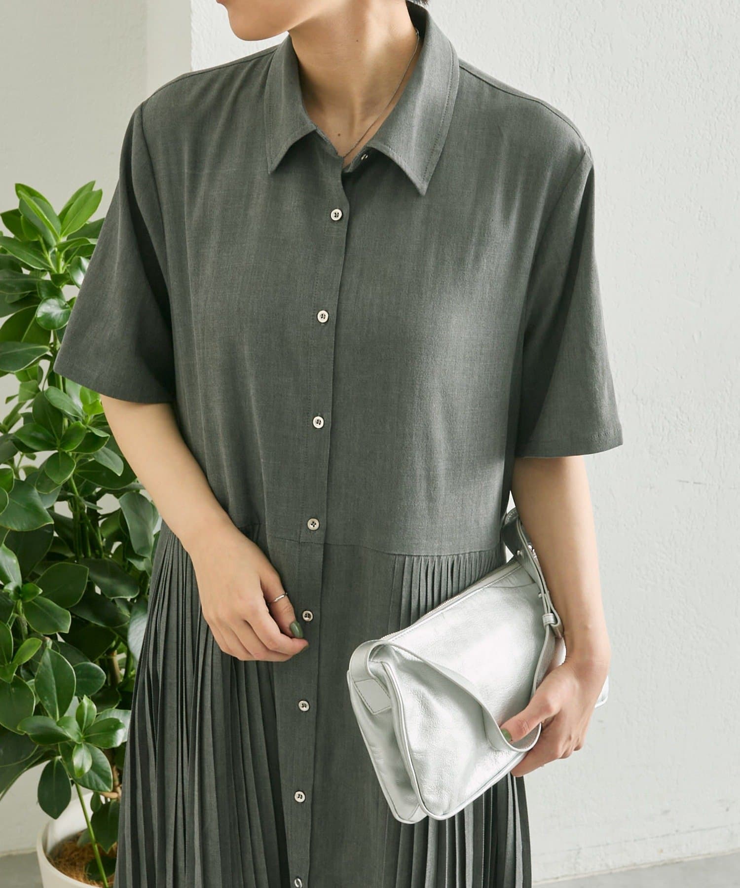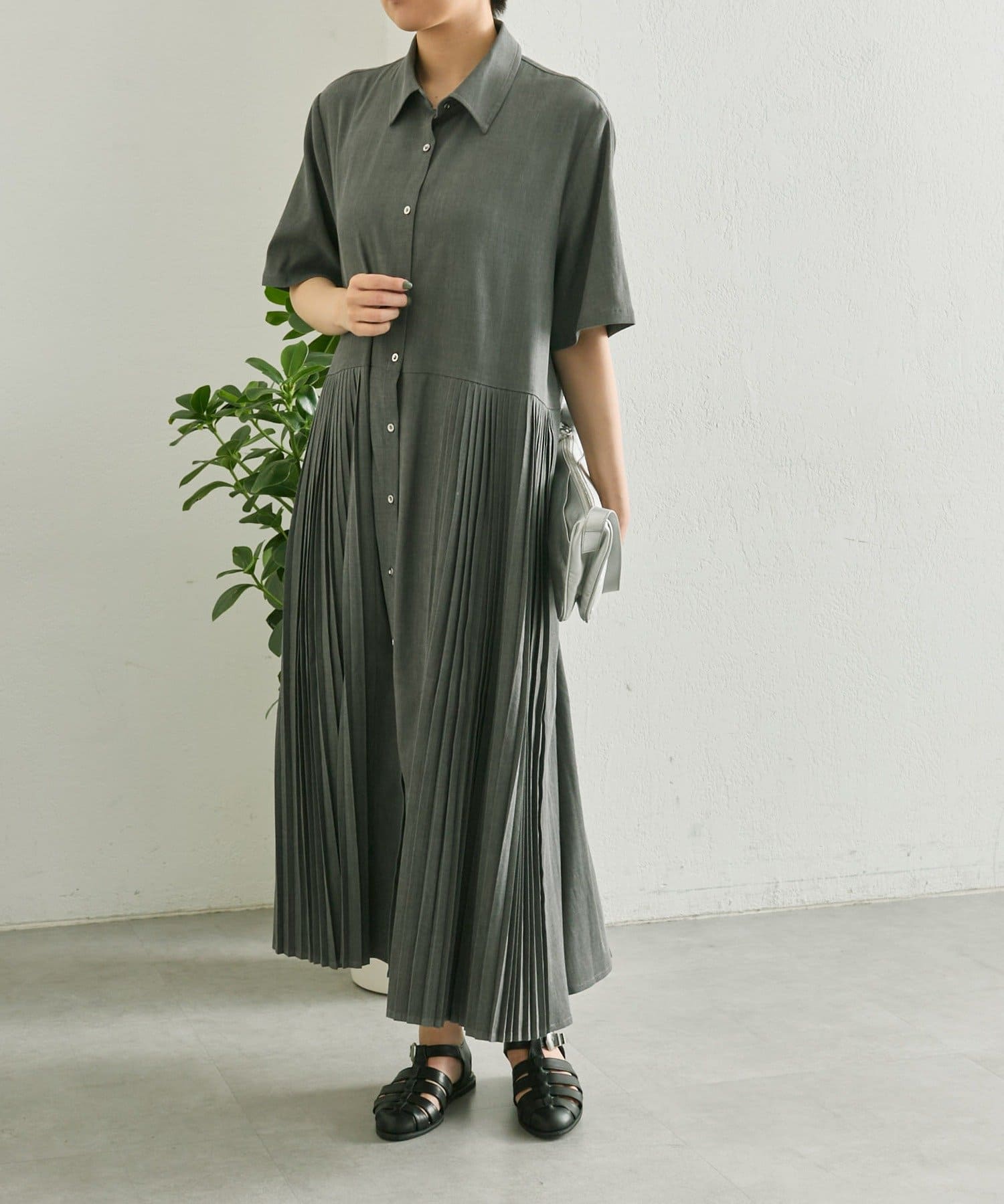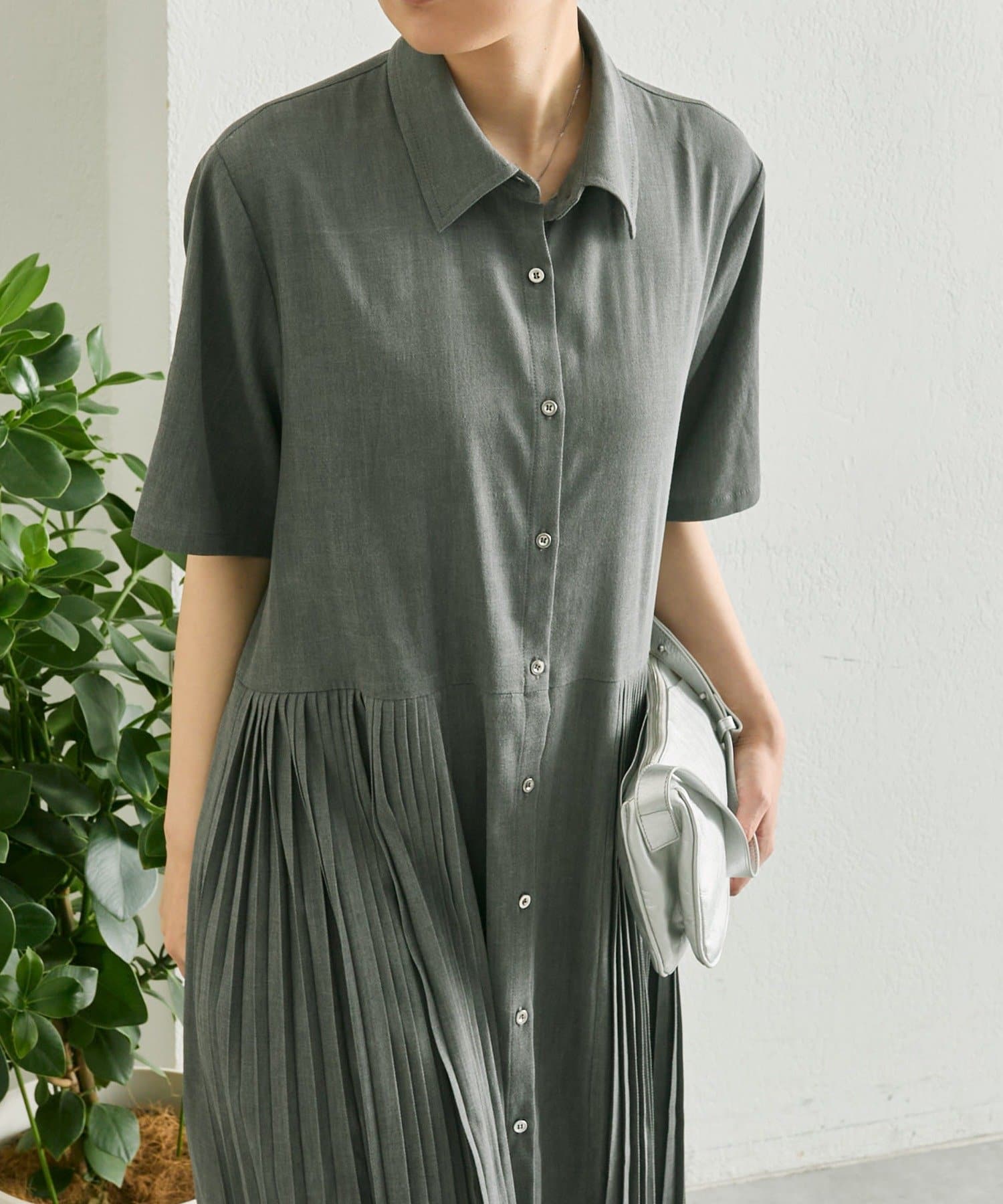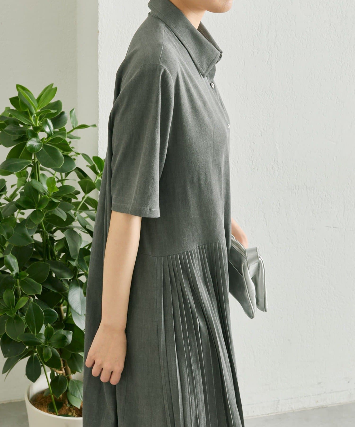 縦ラインを強調するプリーツですっきり見え