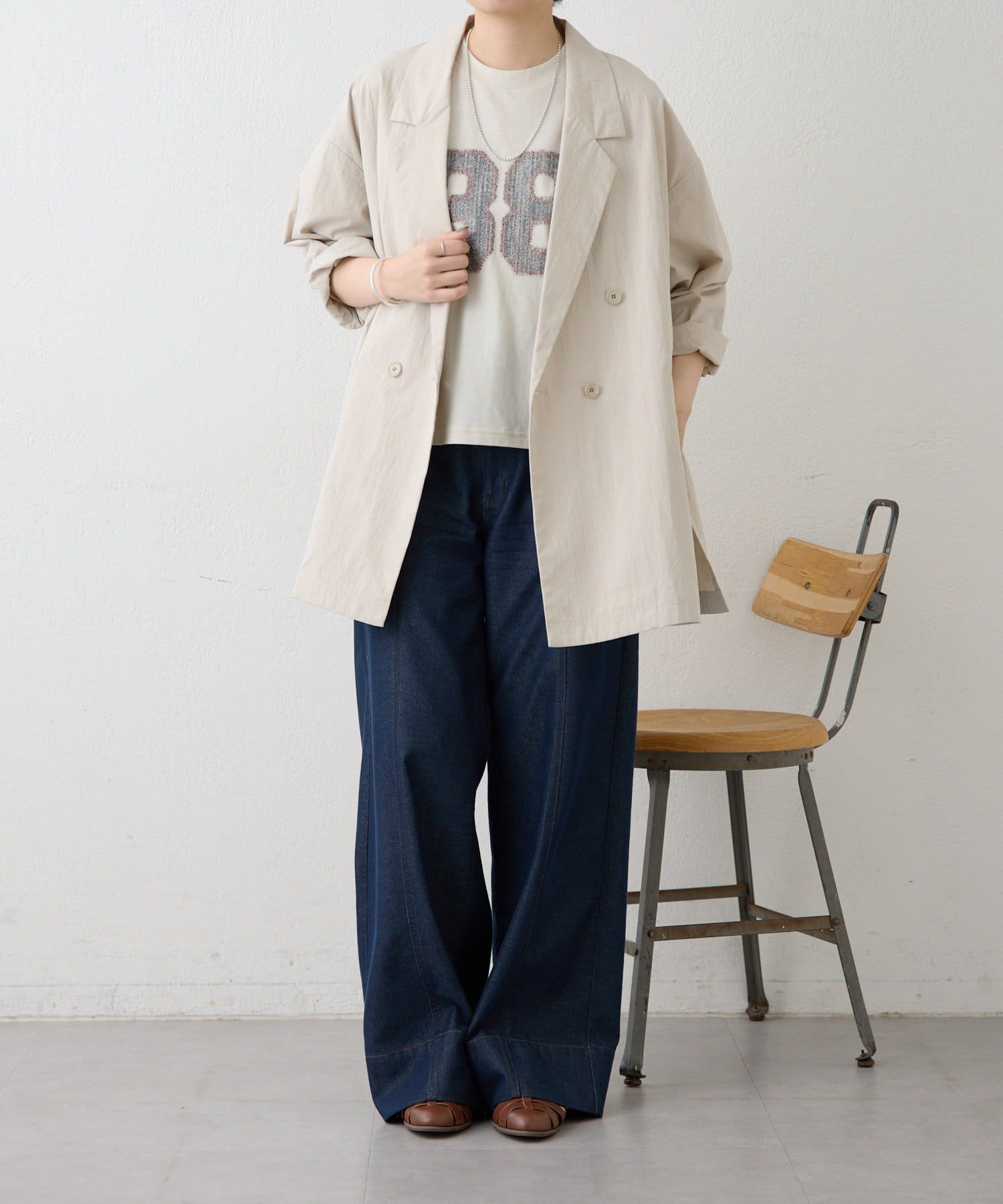 広がりのあるシルエットのボトムスと合わせるとバランス良くまとまりやすいです。