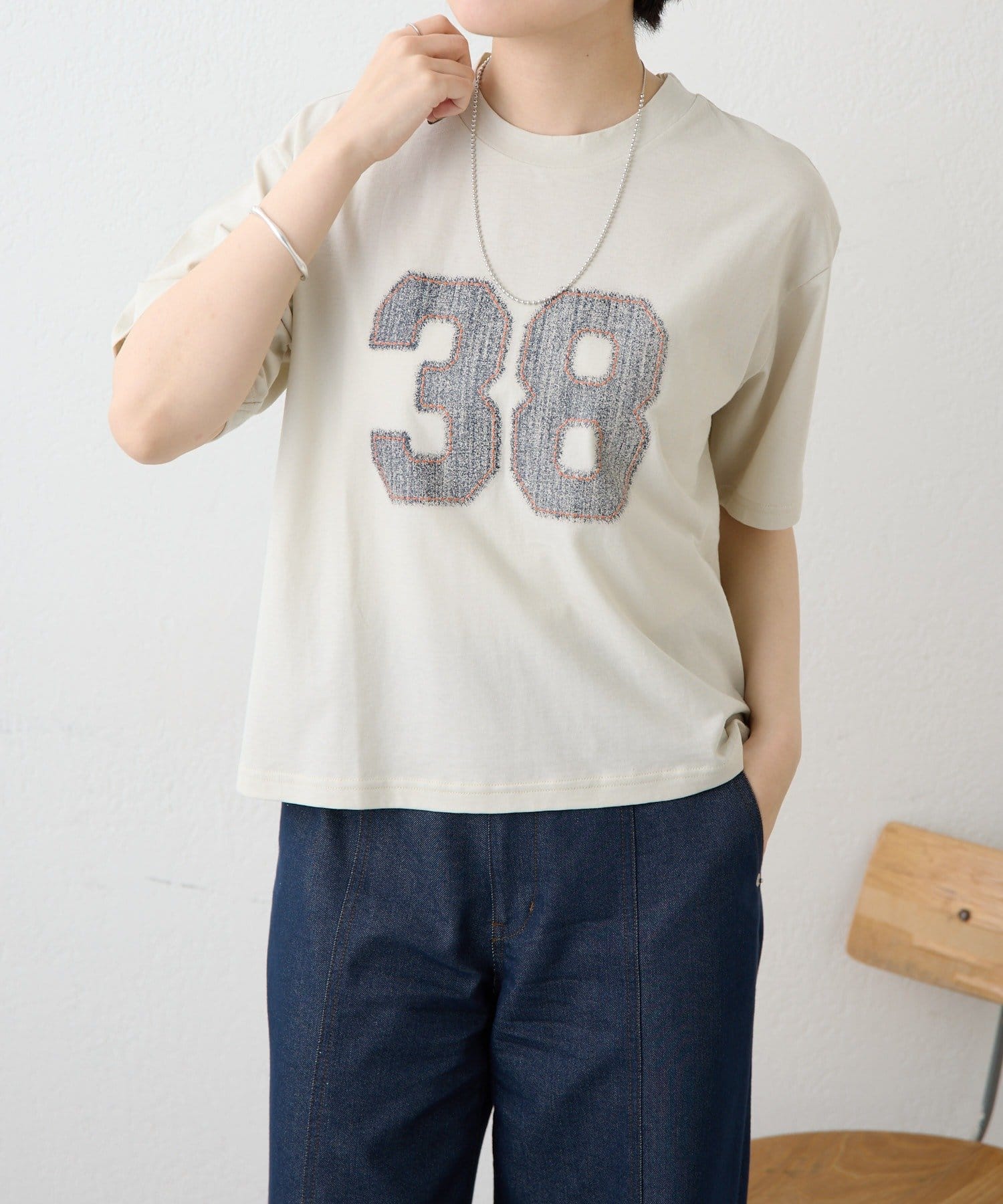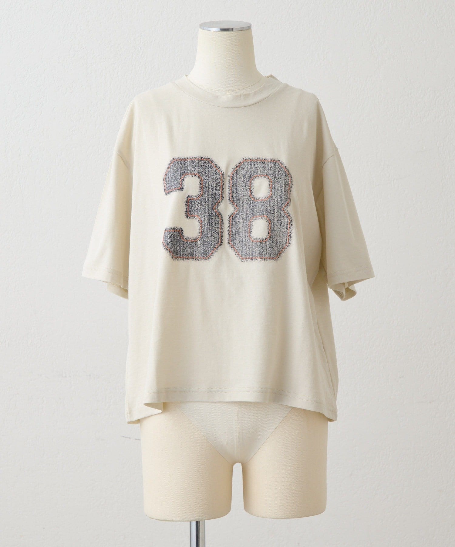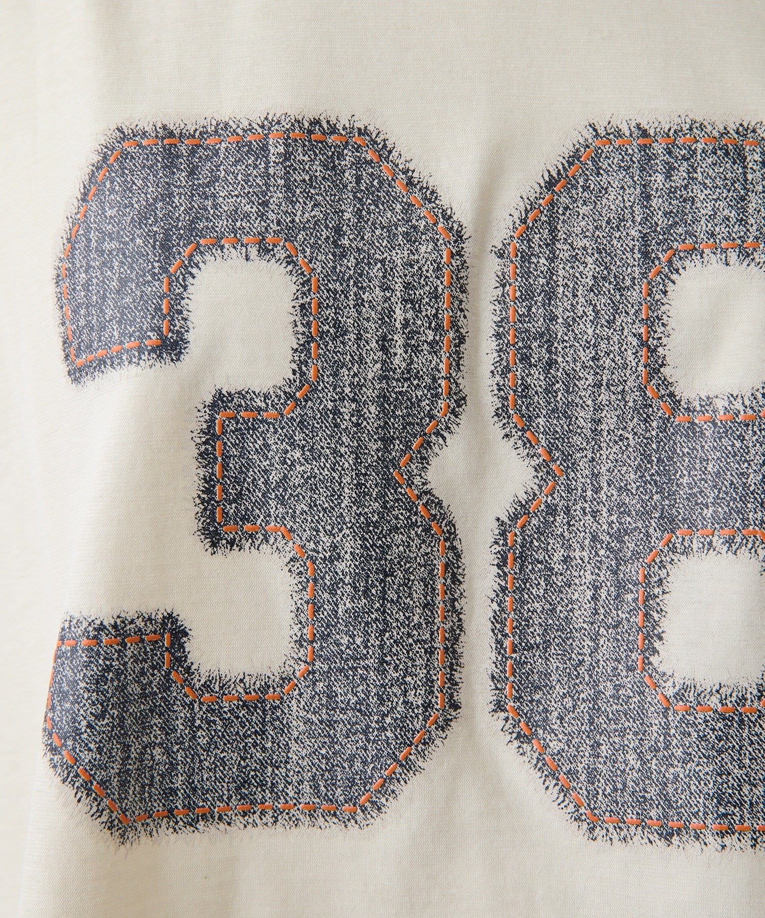 《綿100%/二の腕カバー》ステッチ風ナンバープリントTシャツ【SUM1 STYLE(スミスタイル)】