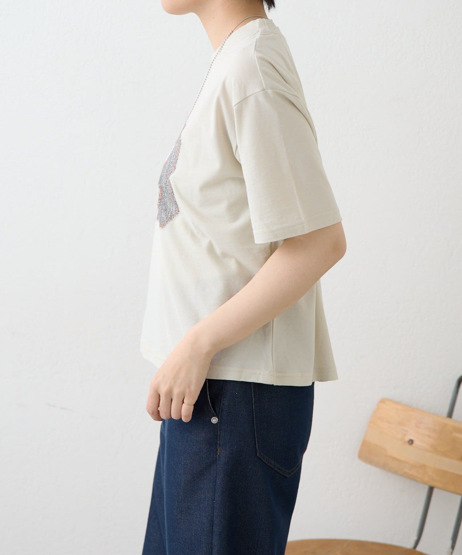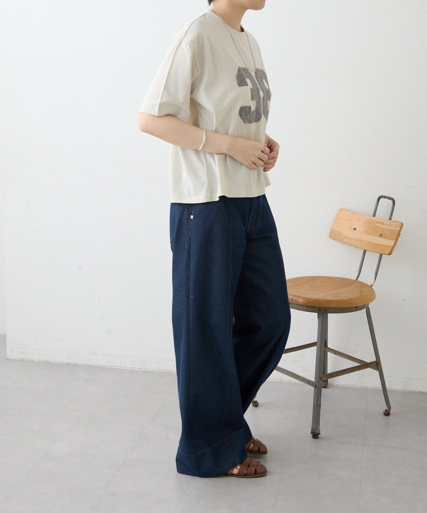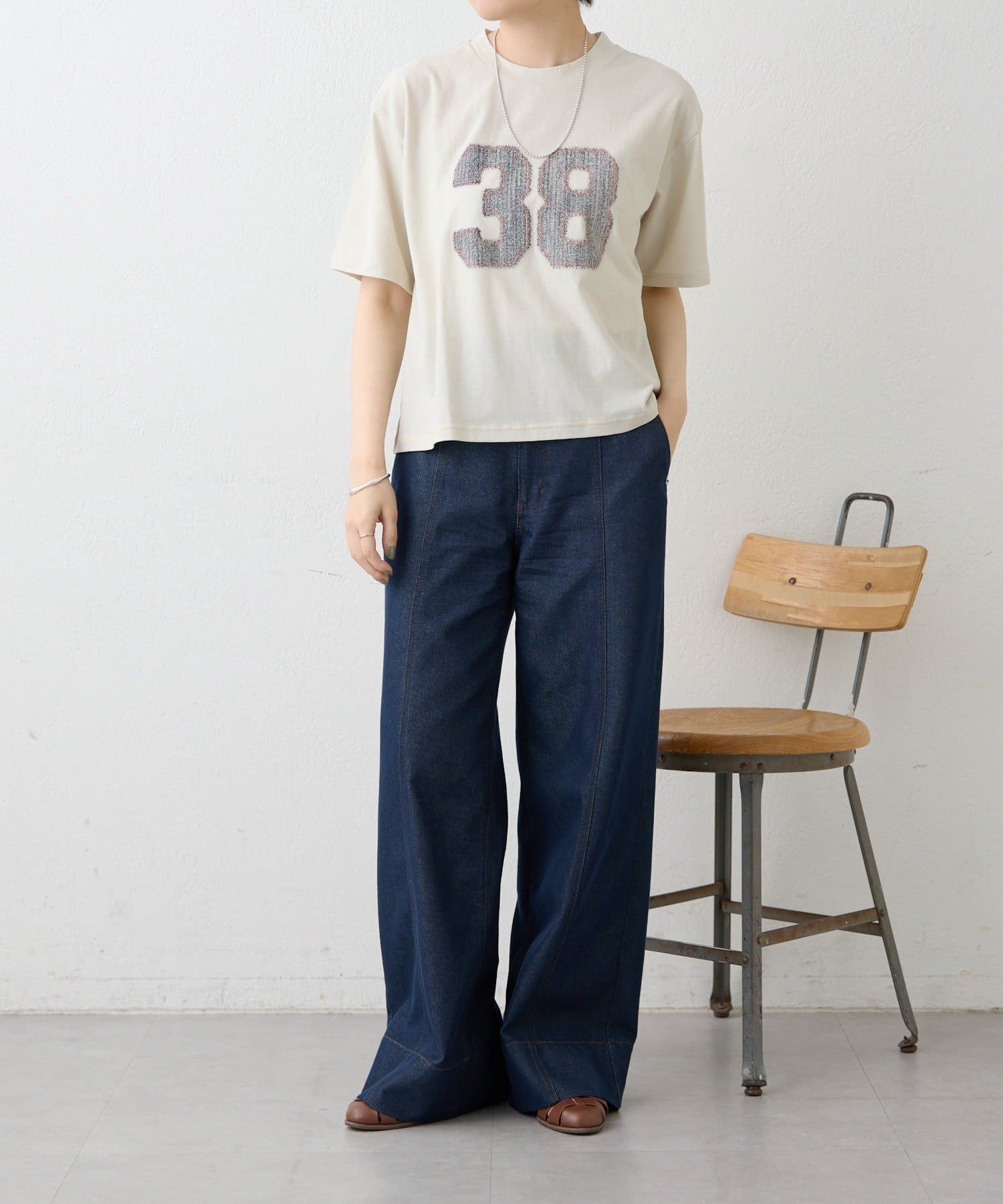 《綿100%/二の腕カバー》ステッチ風ナンバープリントTシャツ【SUM1 STYLE(スミスタイル)】