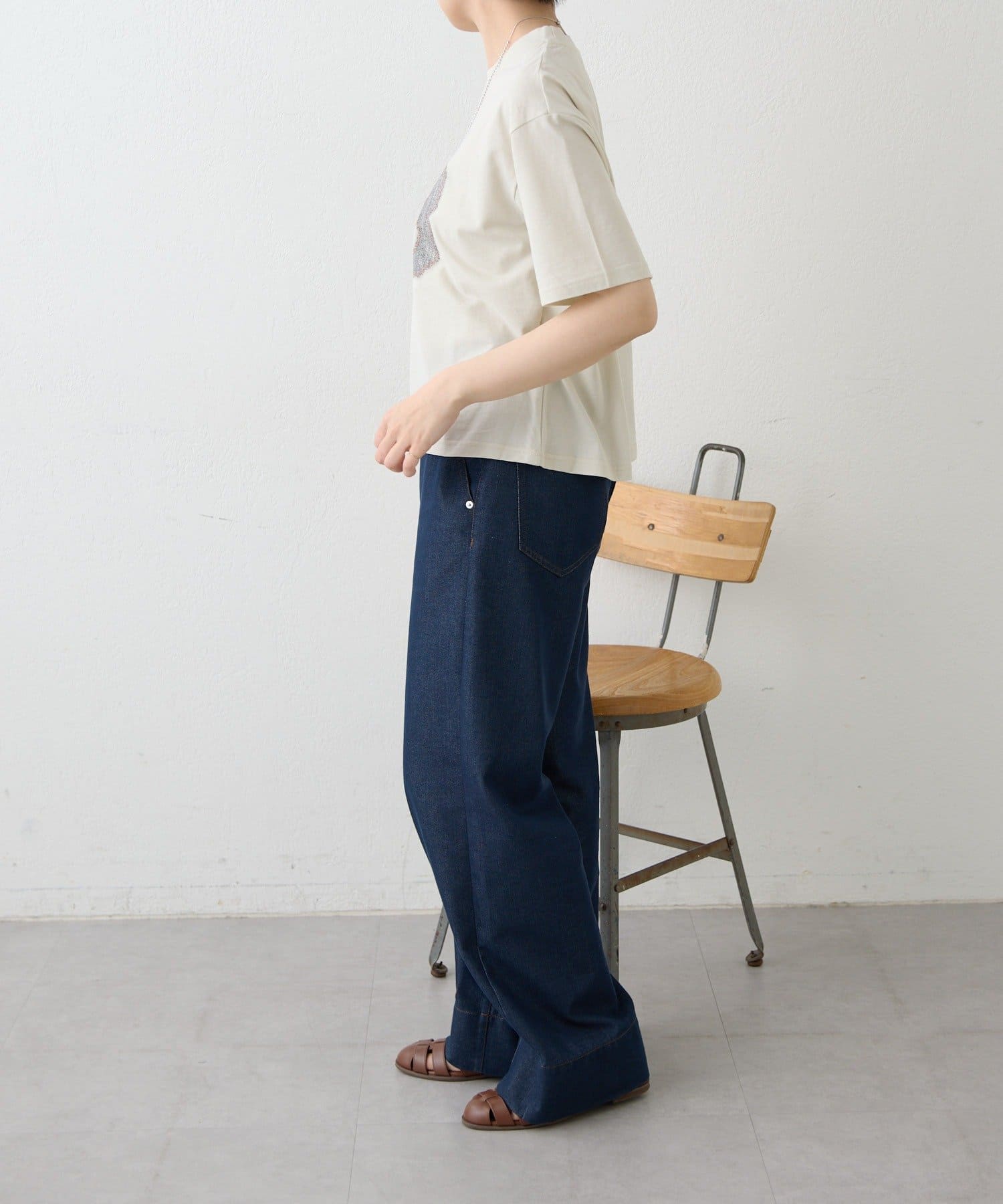 シンプルにデニムパンツやスカートと合わせるだけでOK。