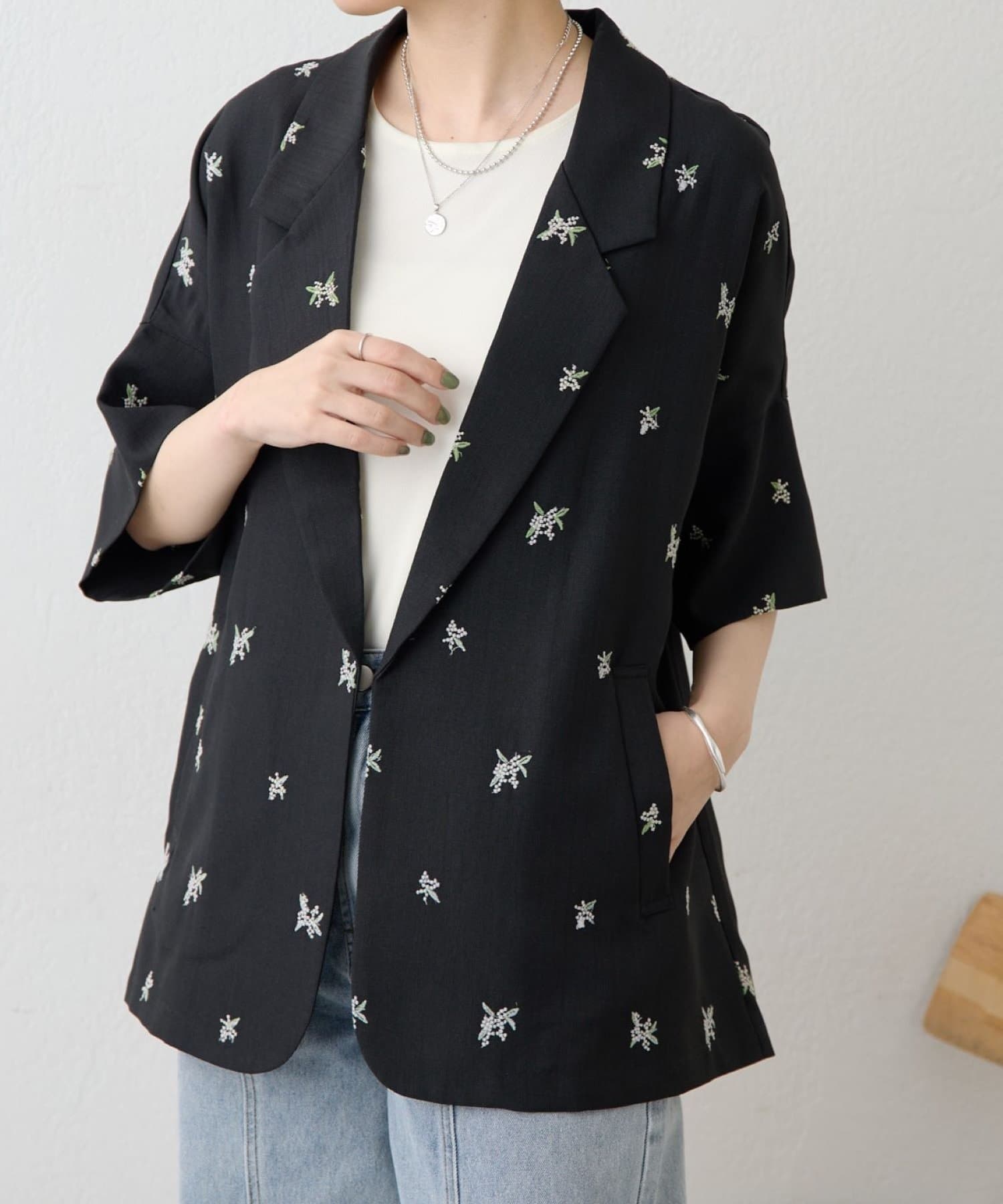 可愛いだけじゃない花刺しゅうの半袖ジャケット