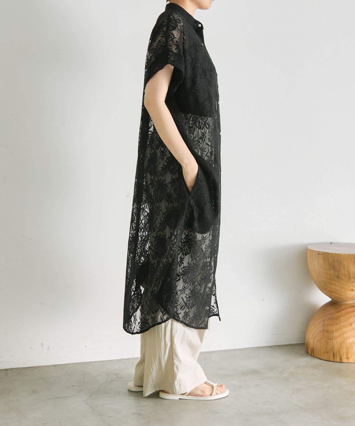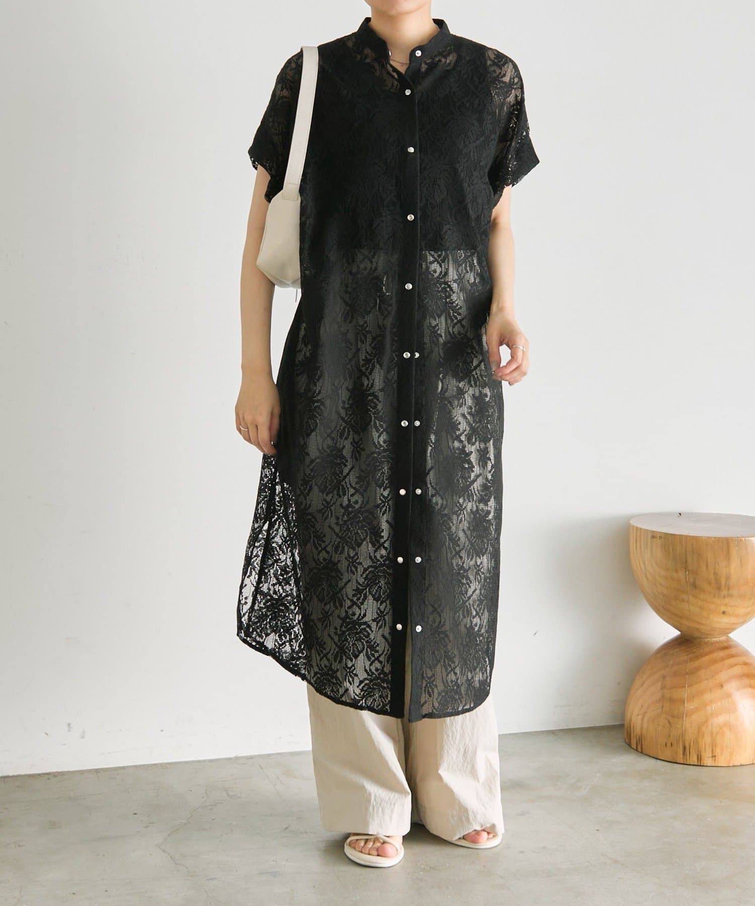 《花柄/透け感/通気性◎》フロントボタンレースワンピース【SUM1 STYLE(スミスタイル)】