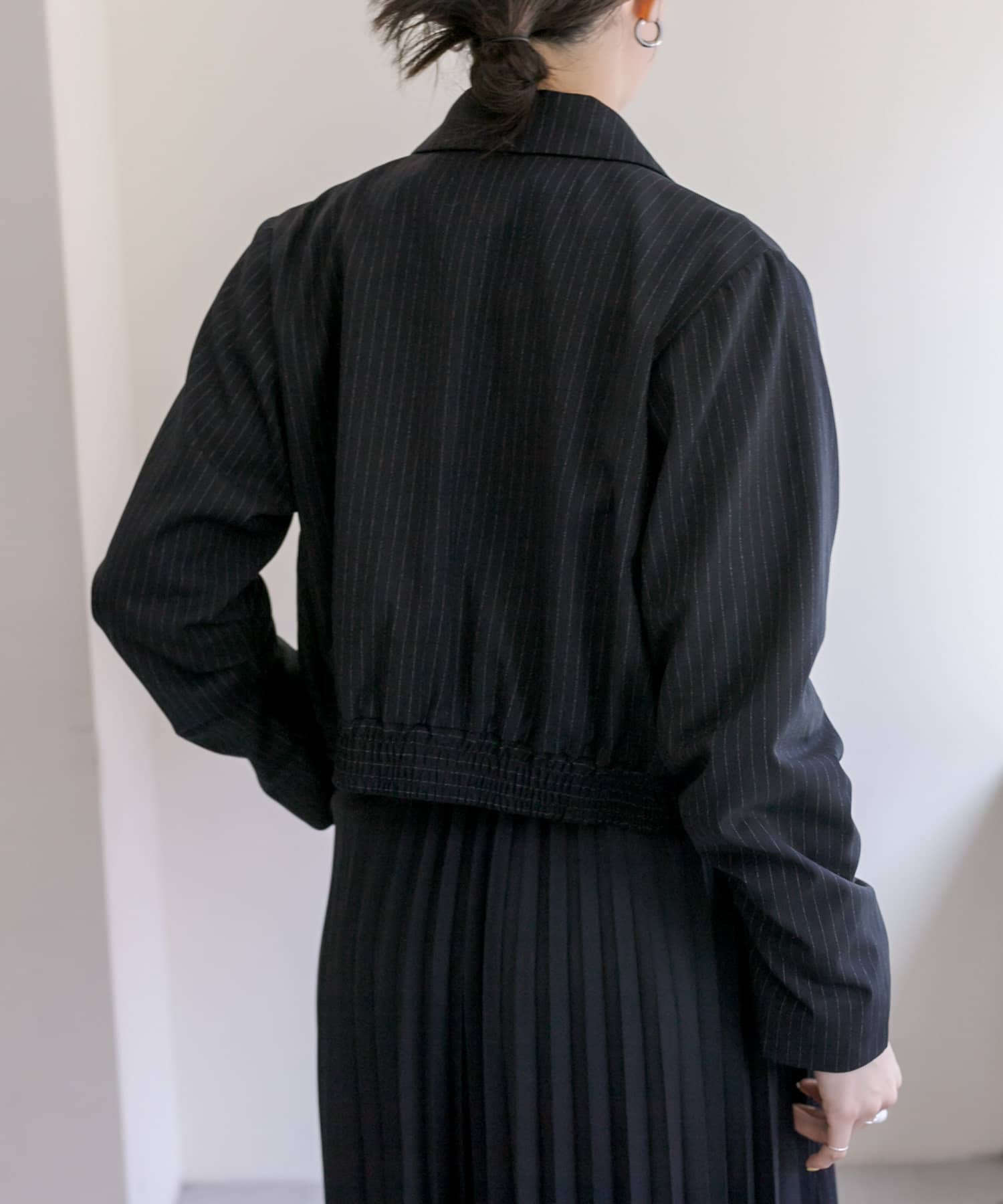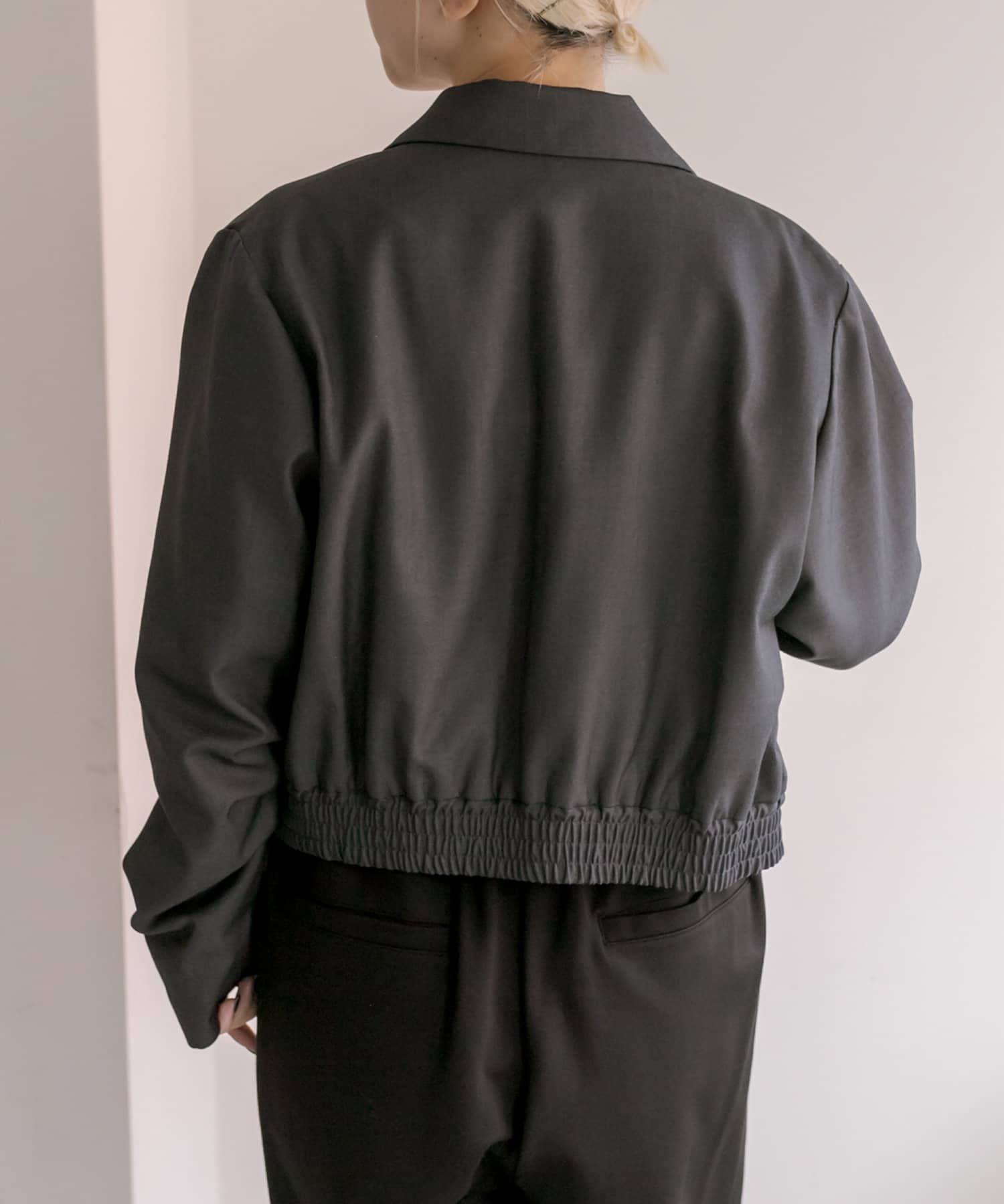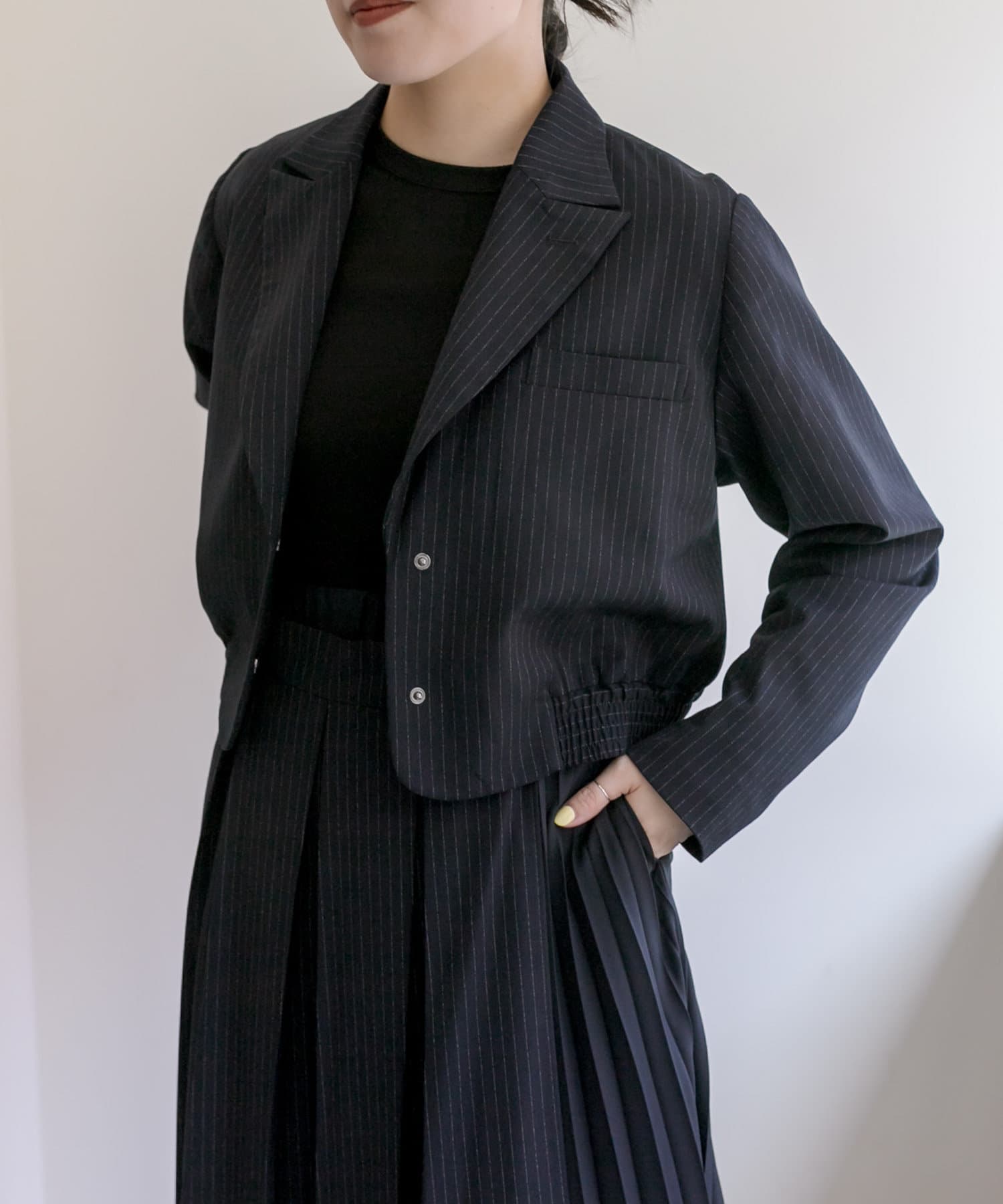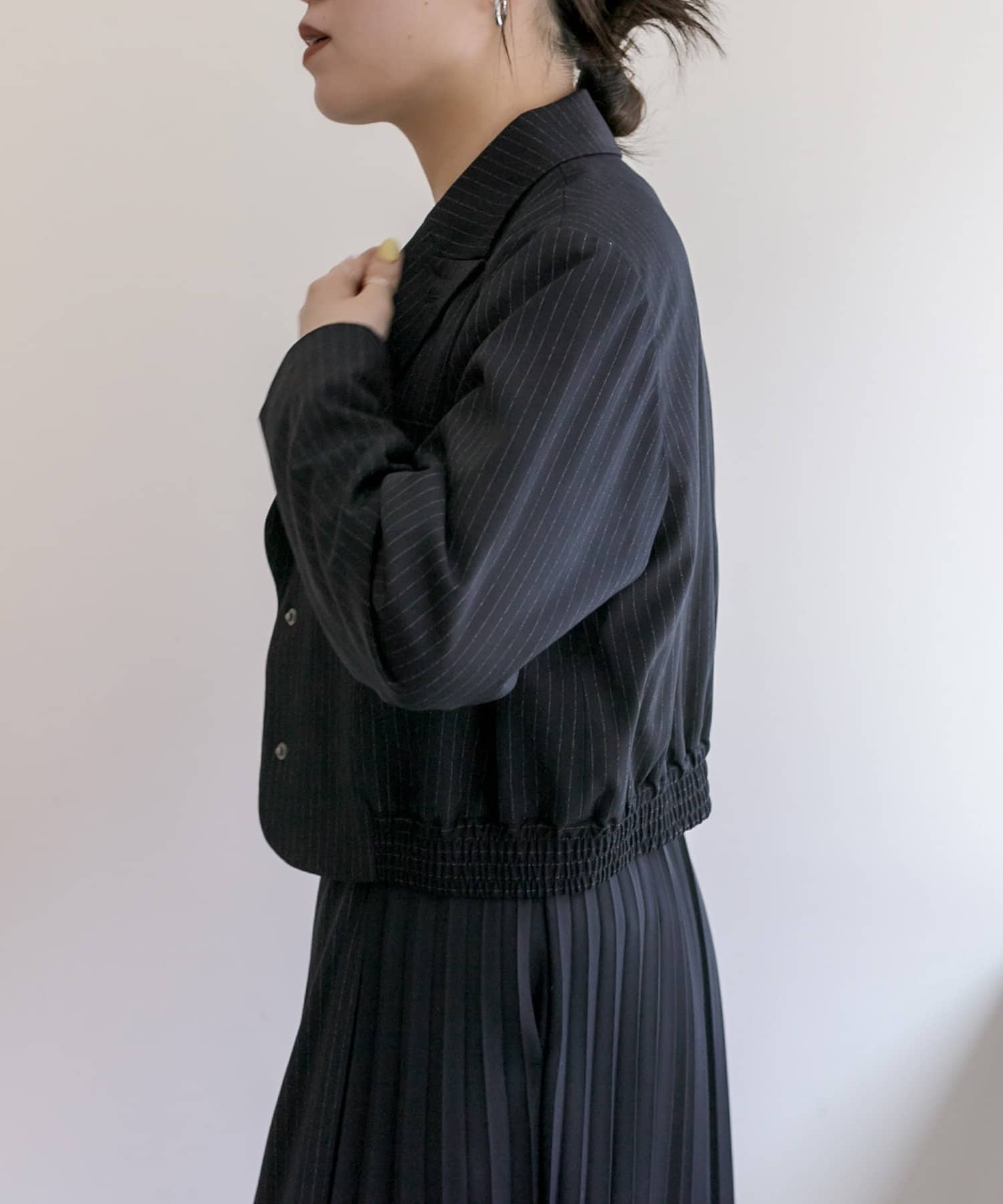 スタイルアップ効果のあるショート丈ジャケット