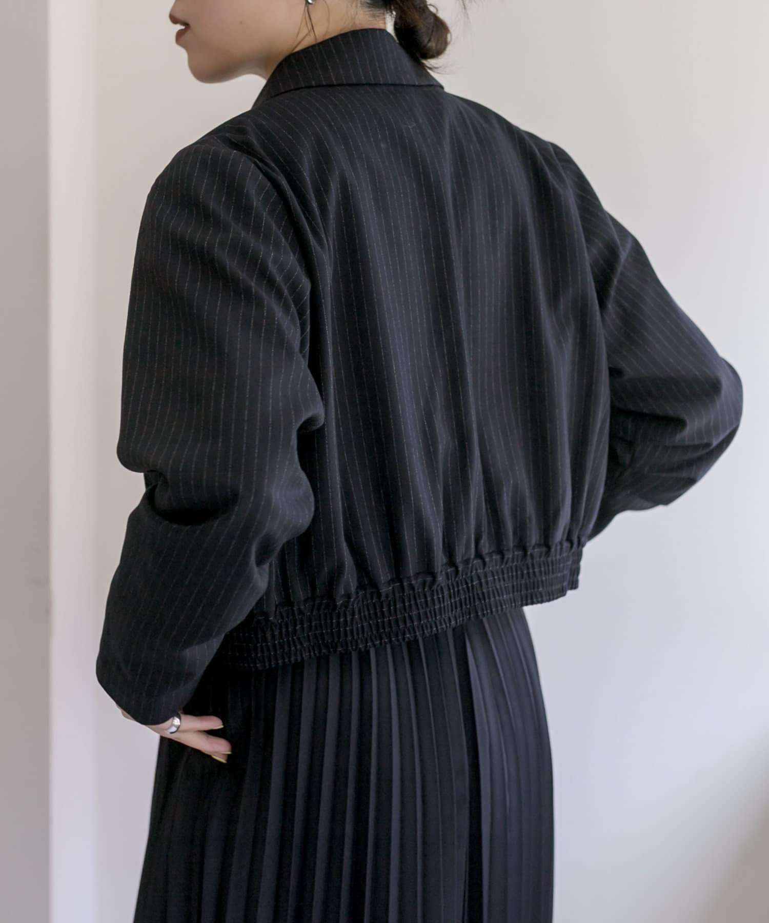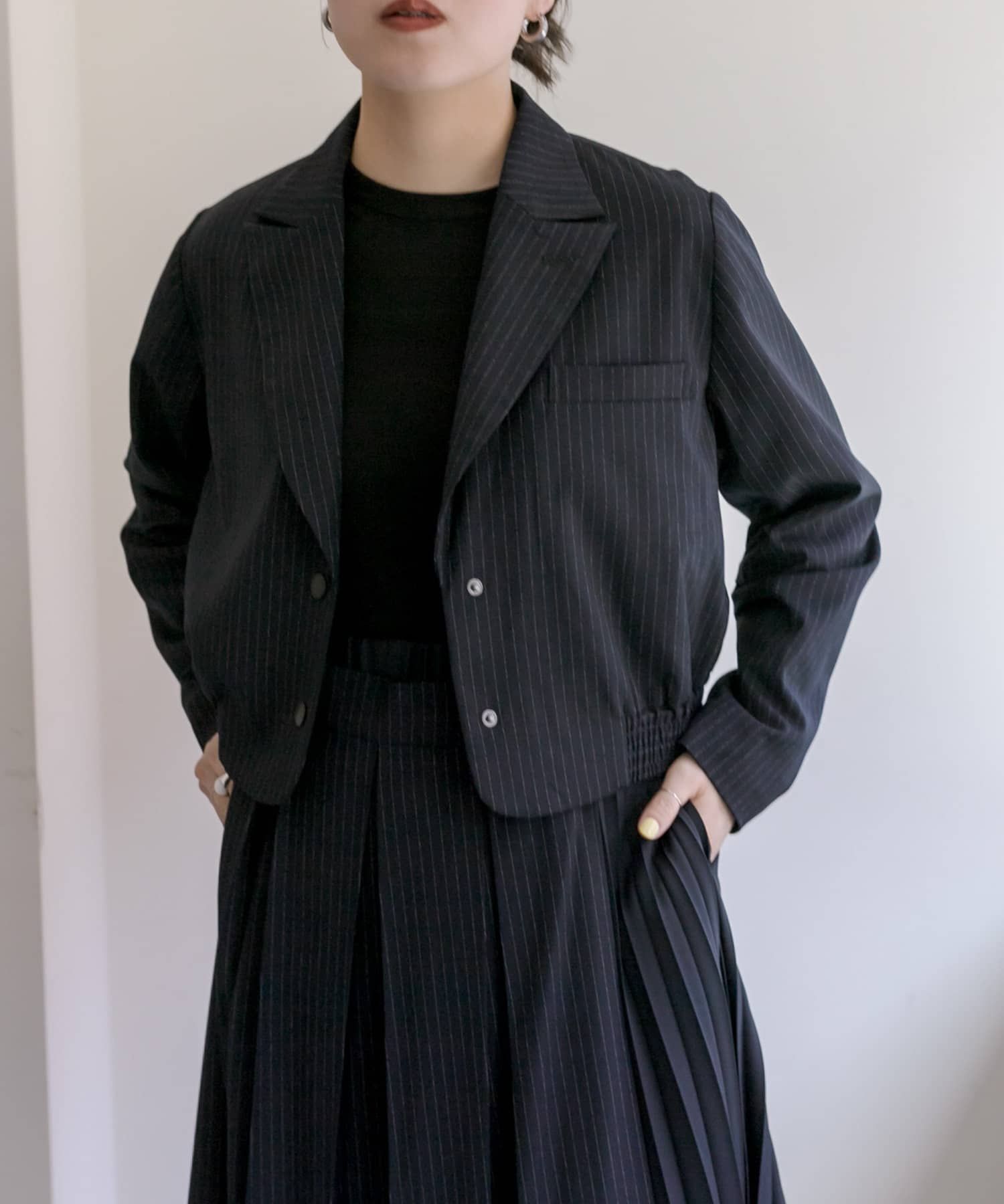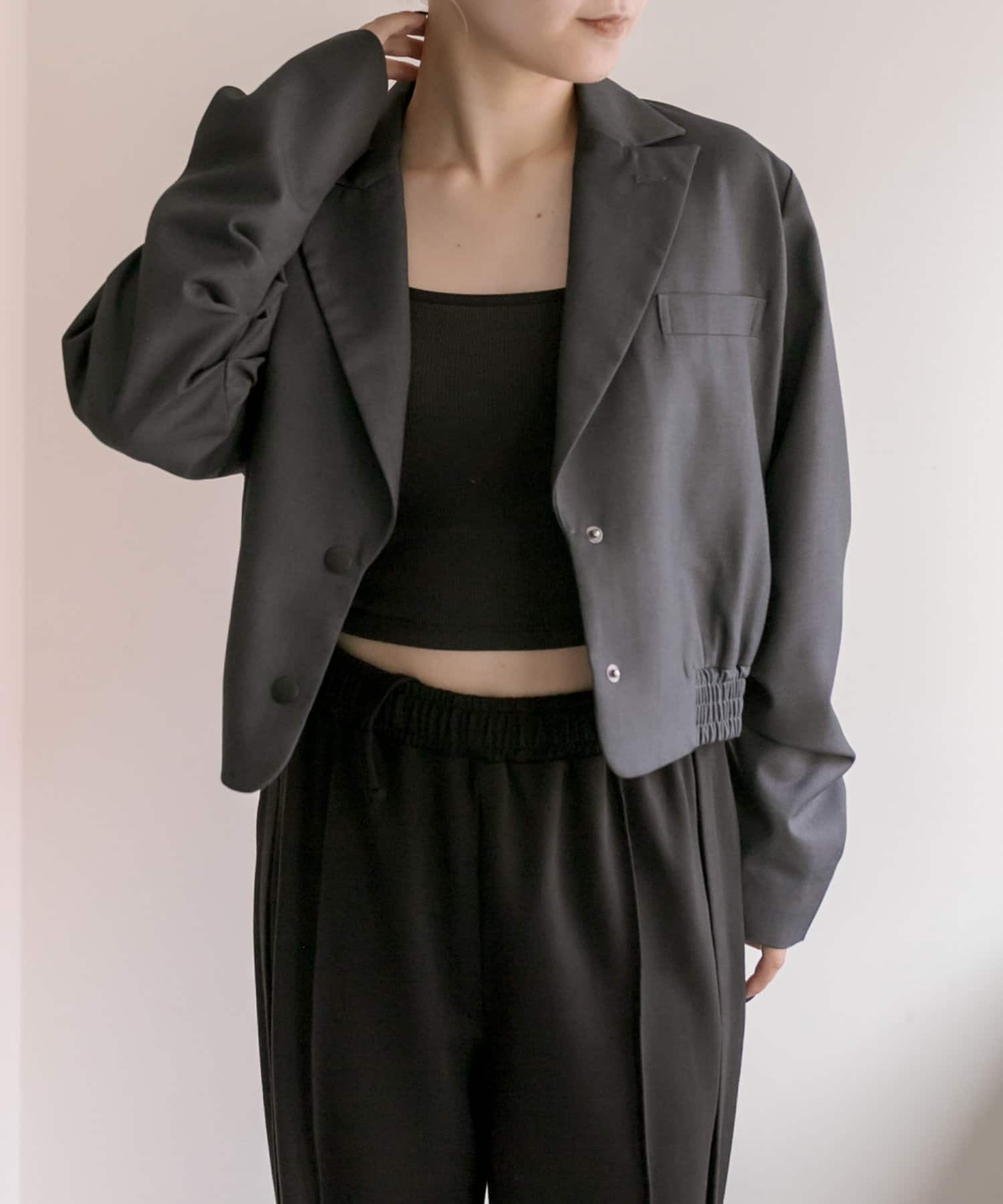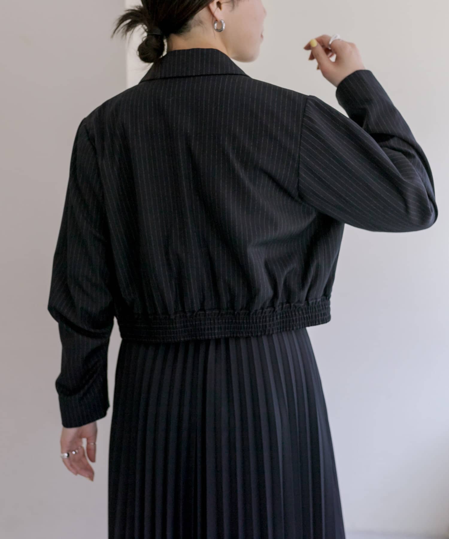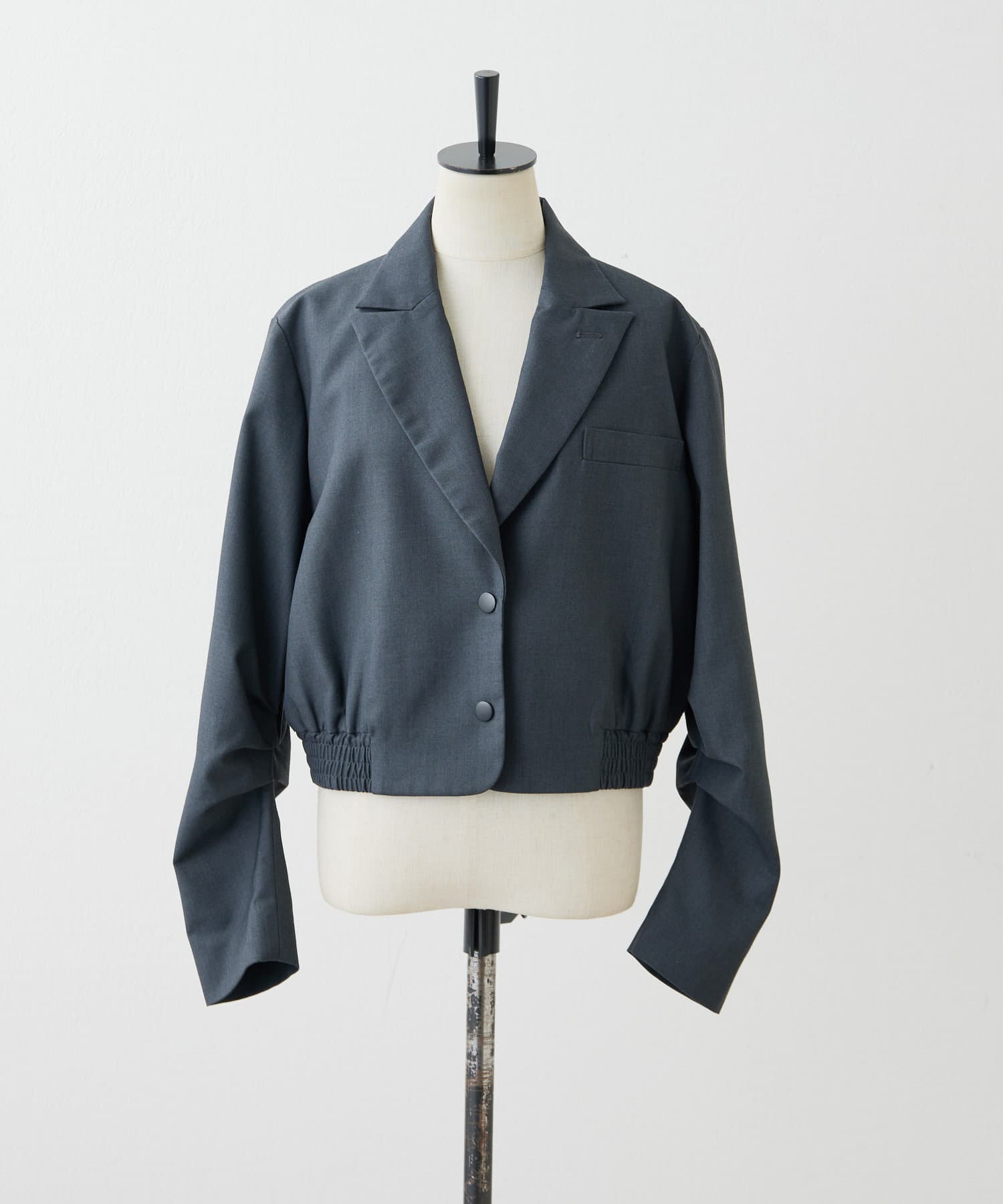 スタイルアップ効果のあるショート丈ジャケット