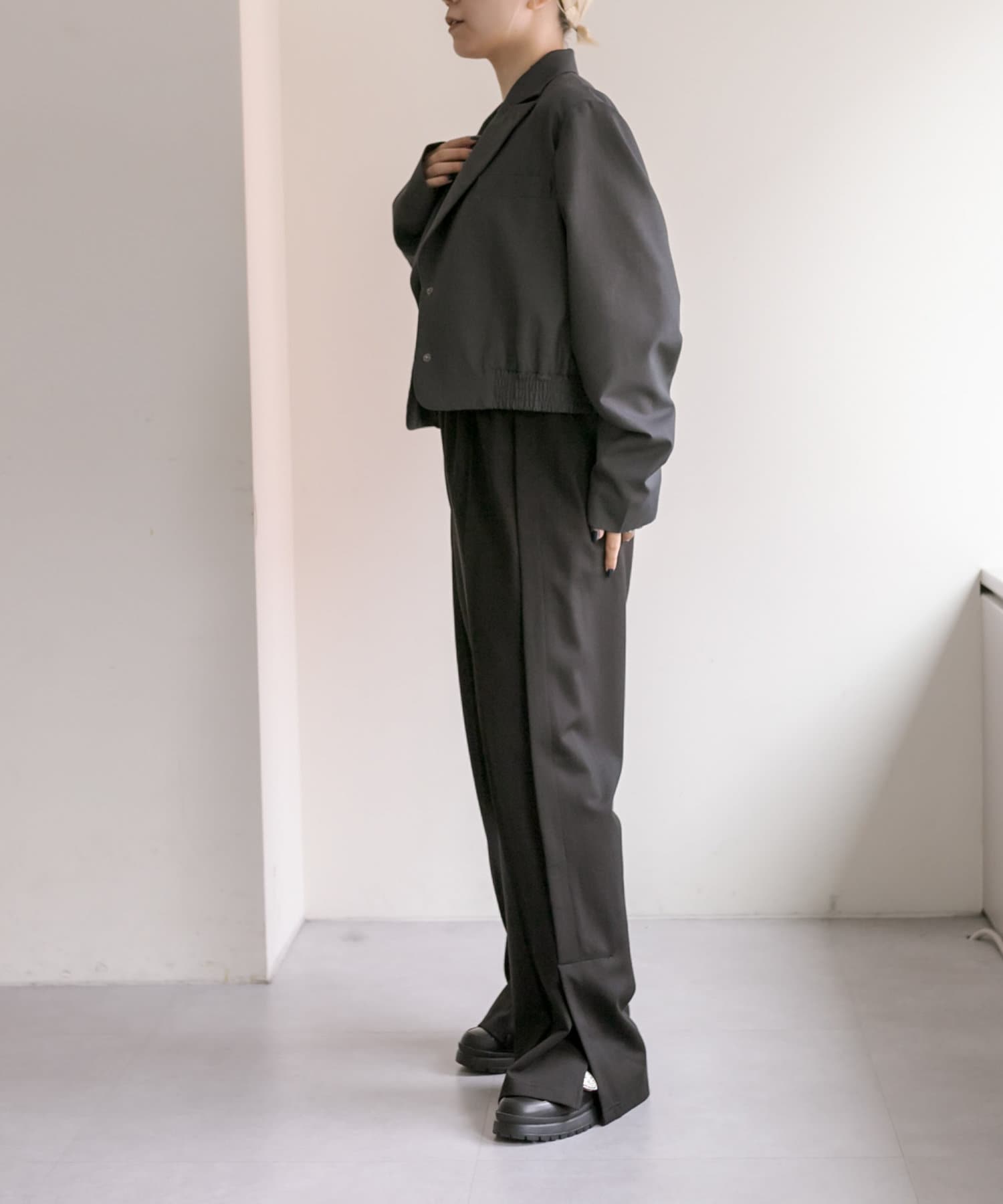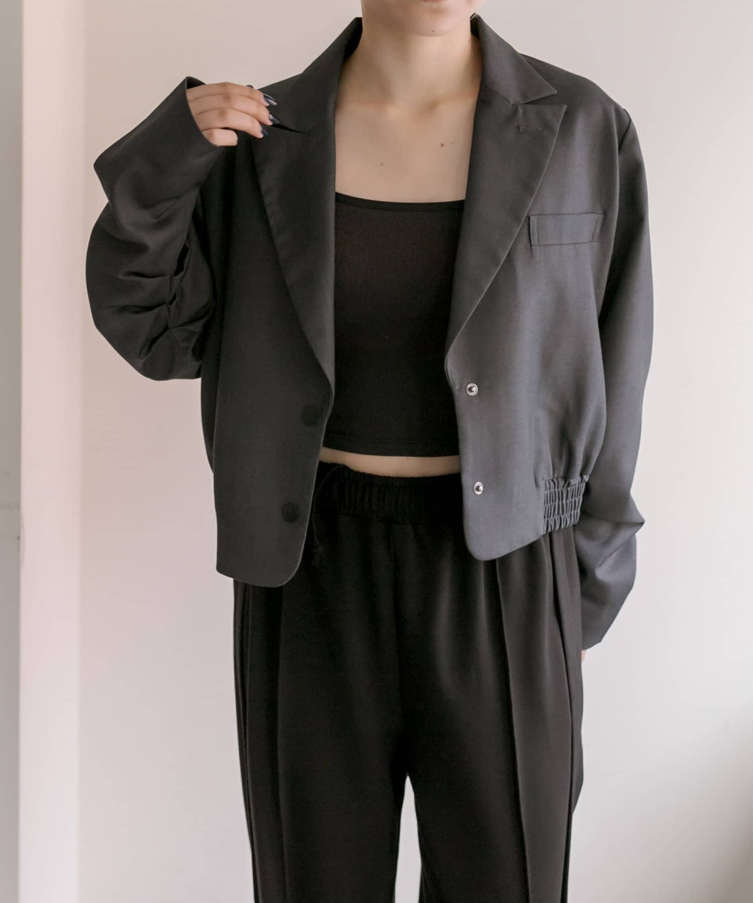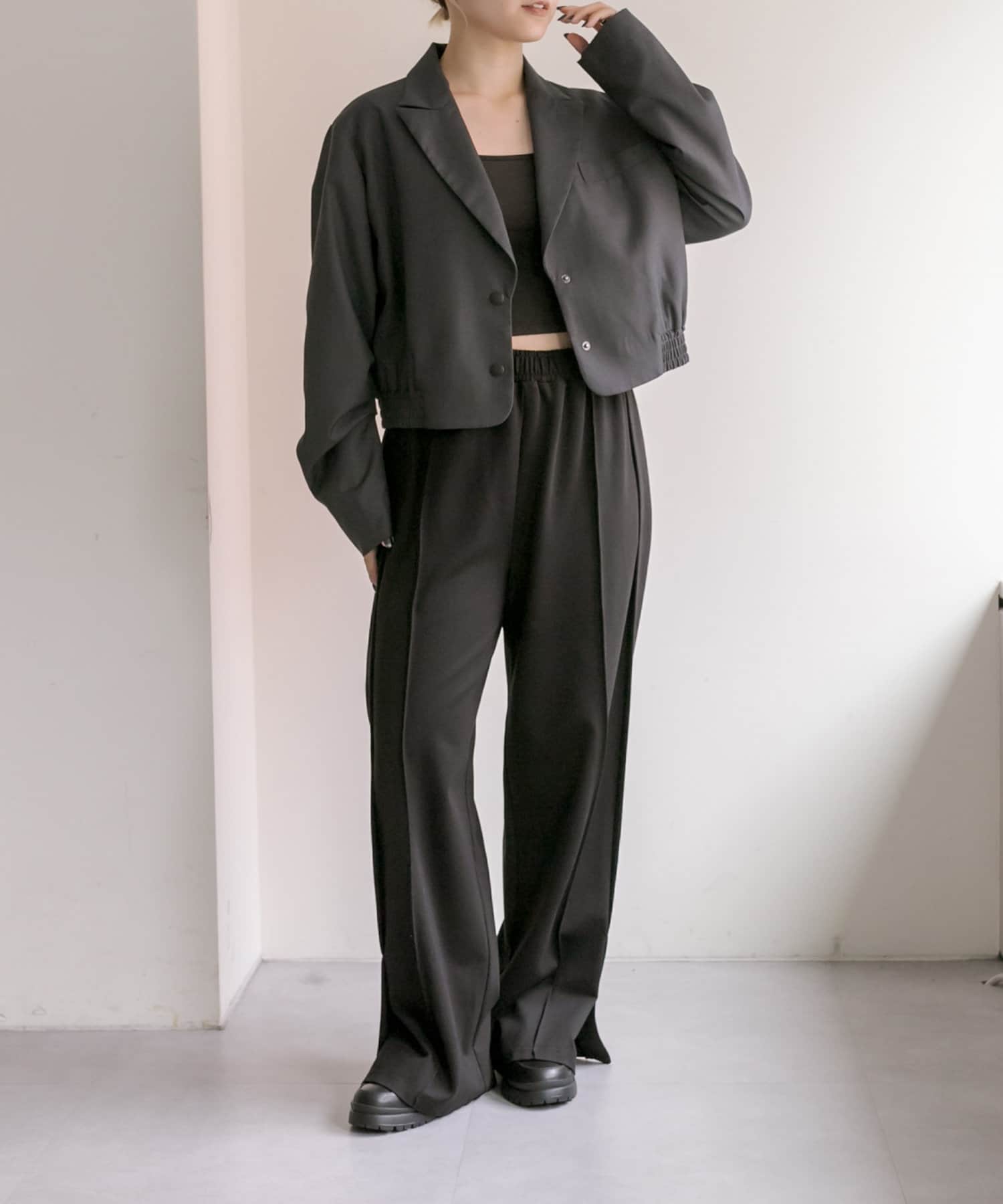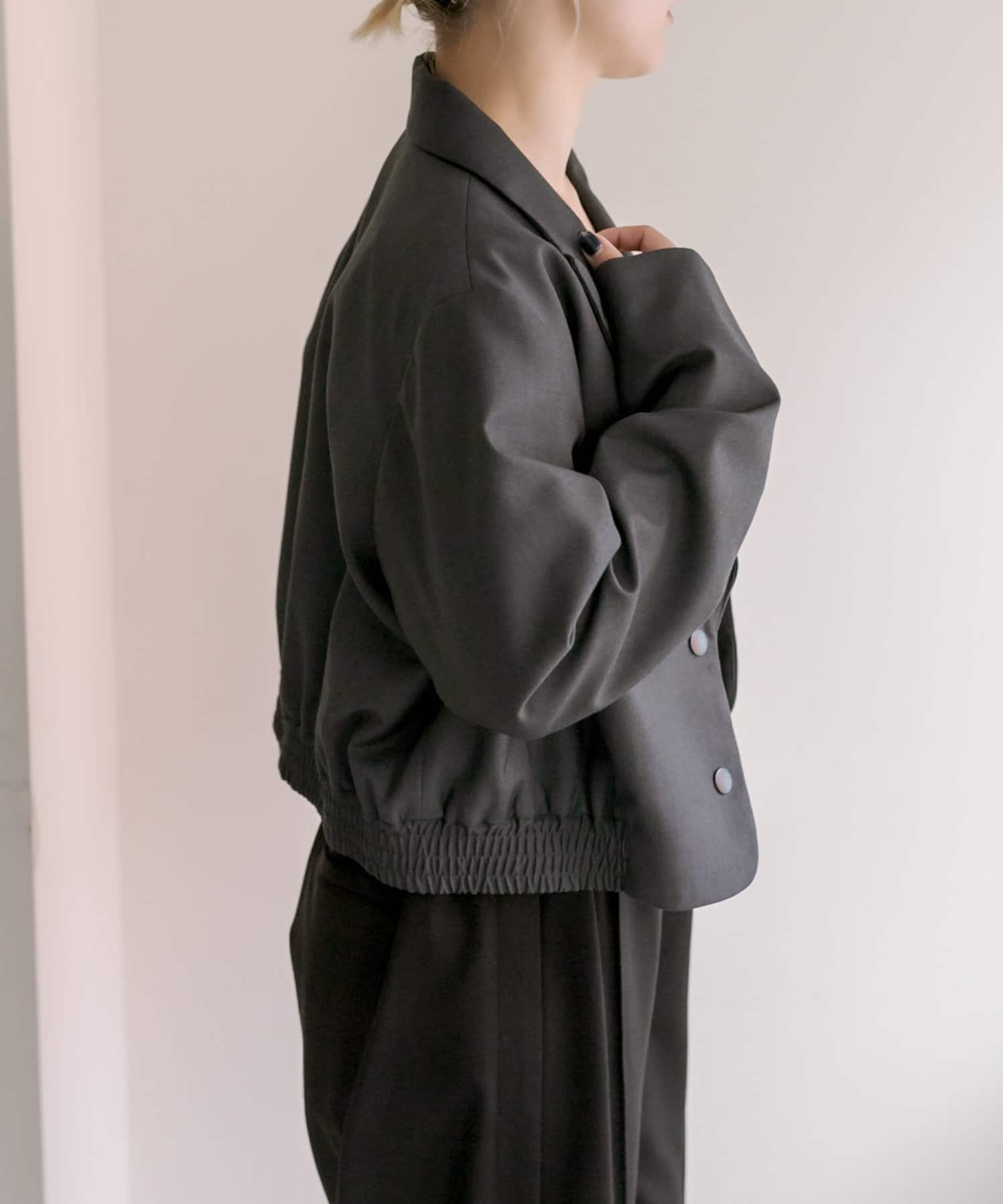 スタイルアップ効果のあるショート丈ジャケット