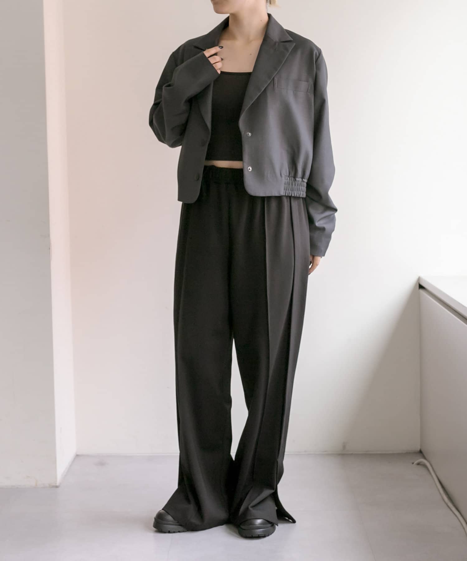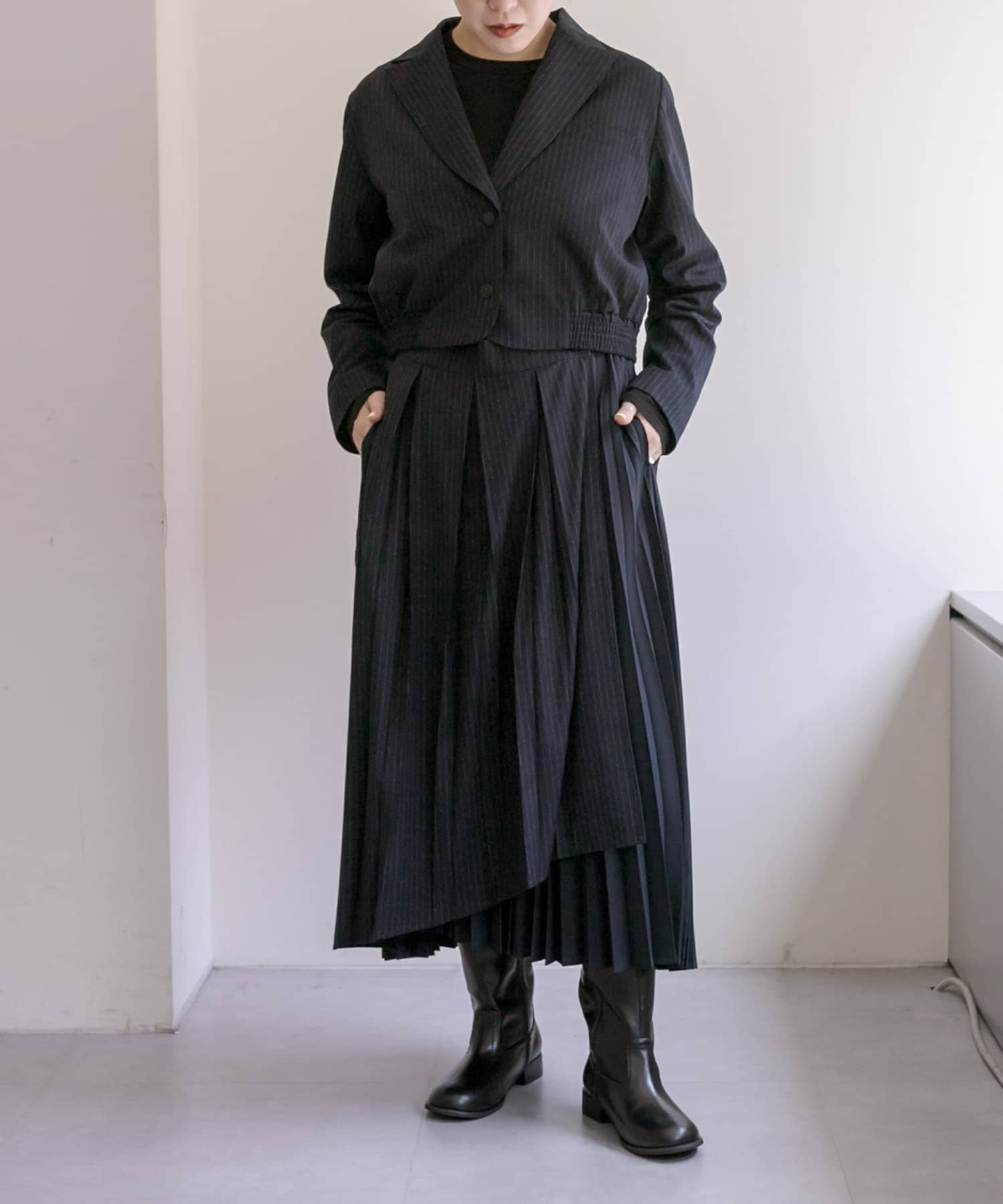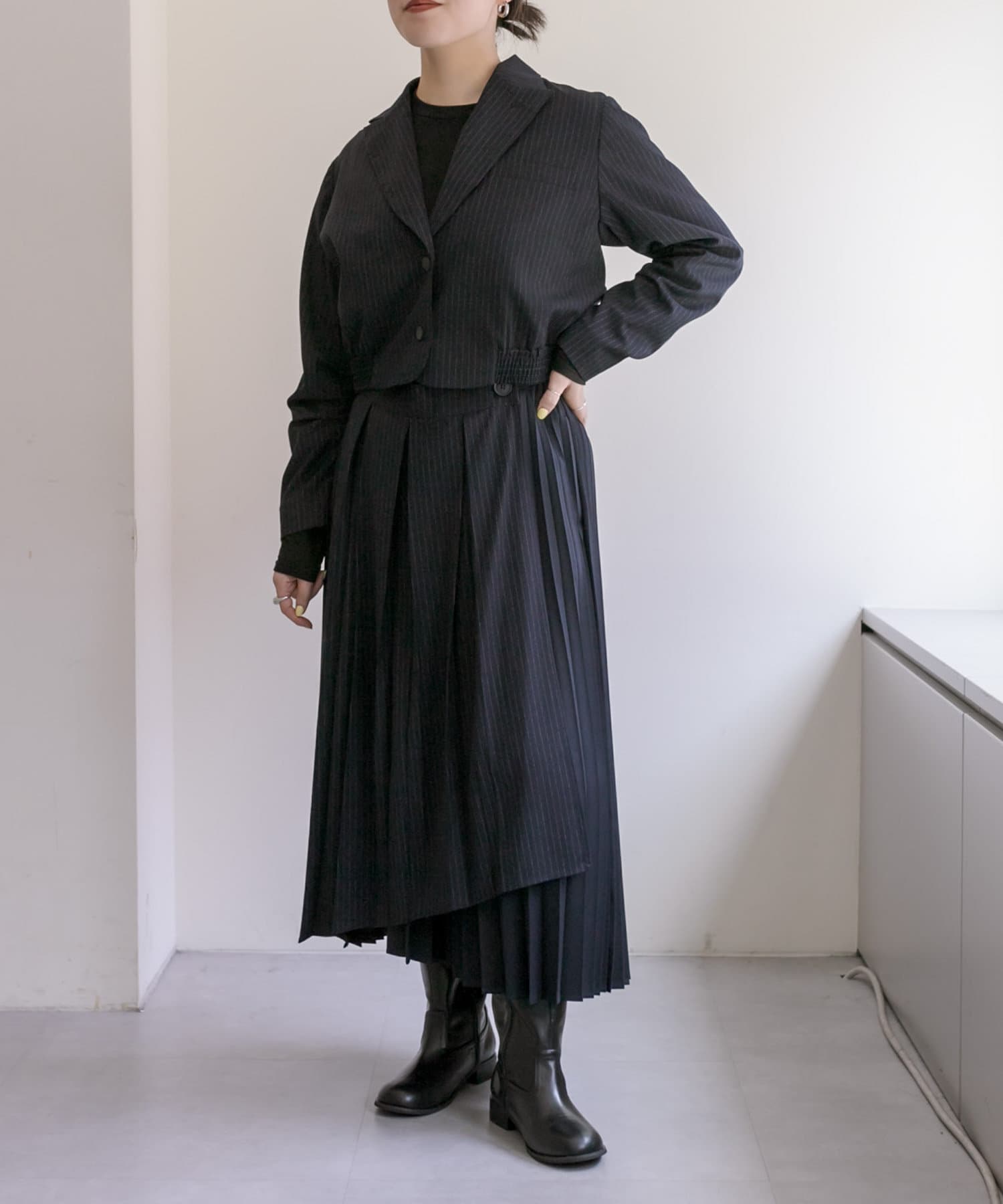別売りのスカートと合わせてセットアップ着用も可能です。
