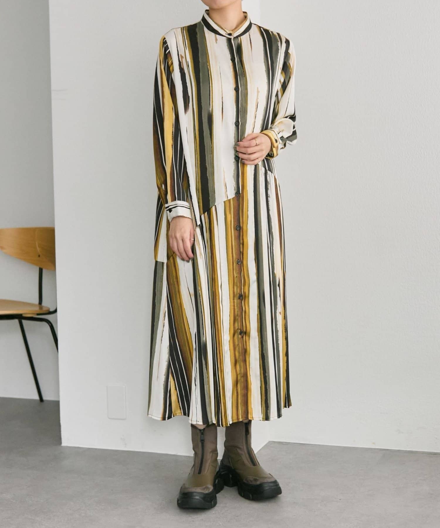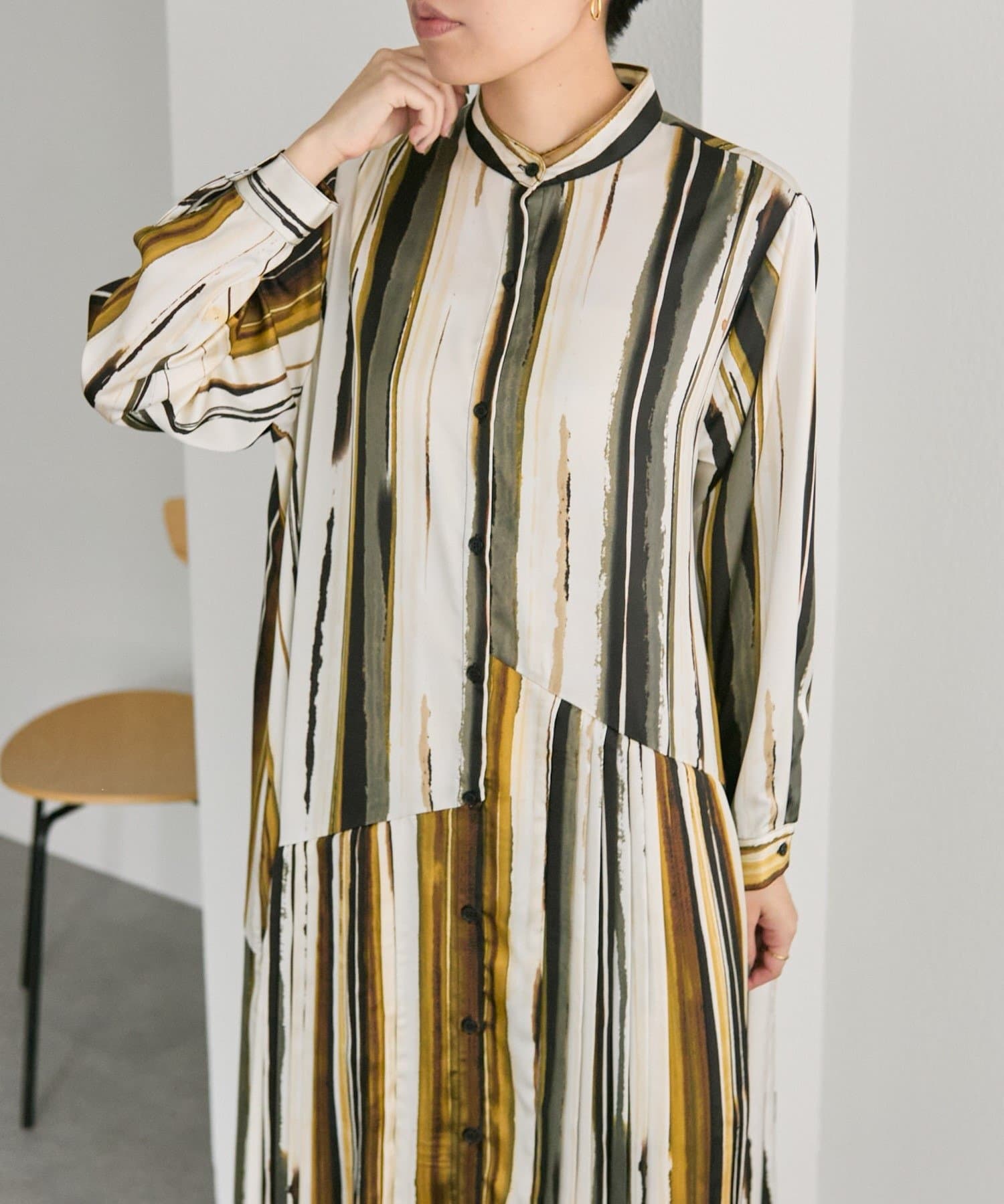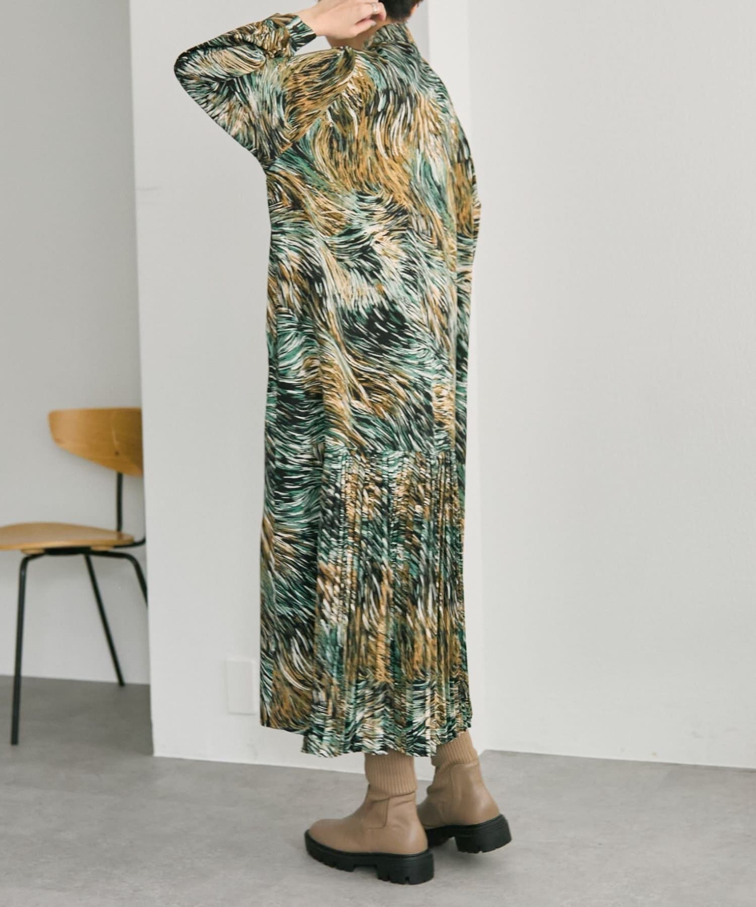 《オケージョン/動画あり》長袖斜めプリーツワンピース【SUM1 STYLE(スミ スタイル)】