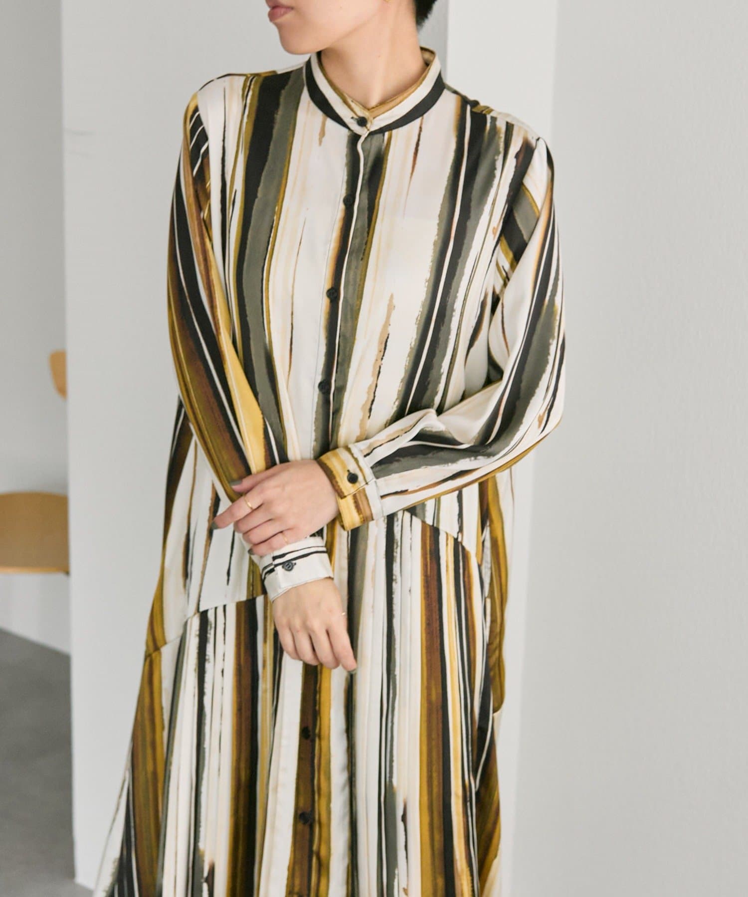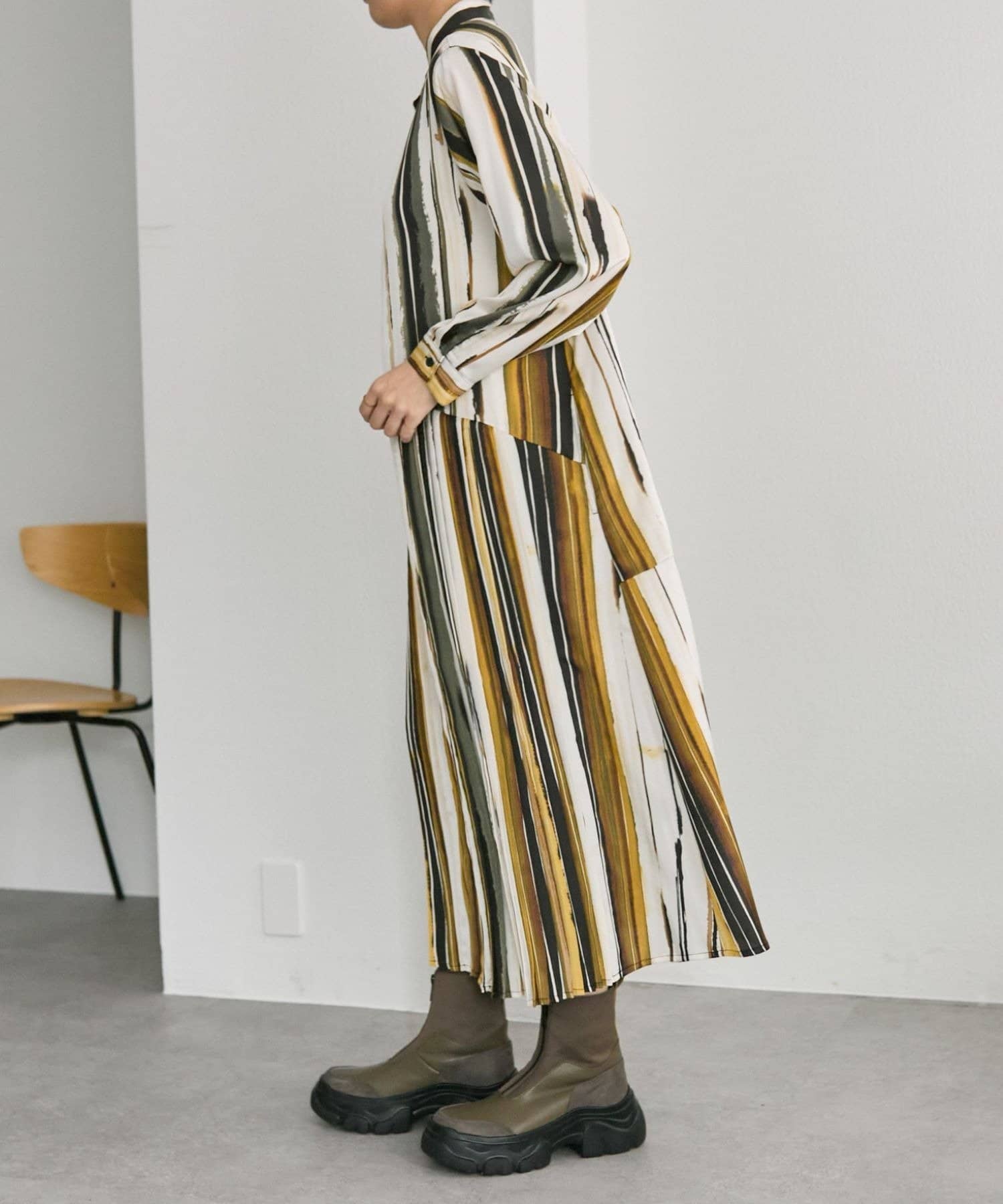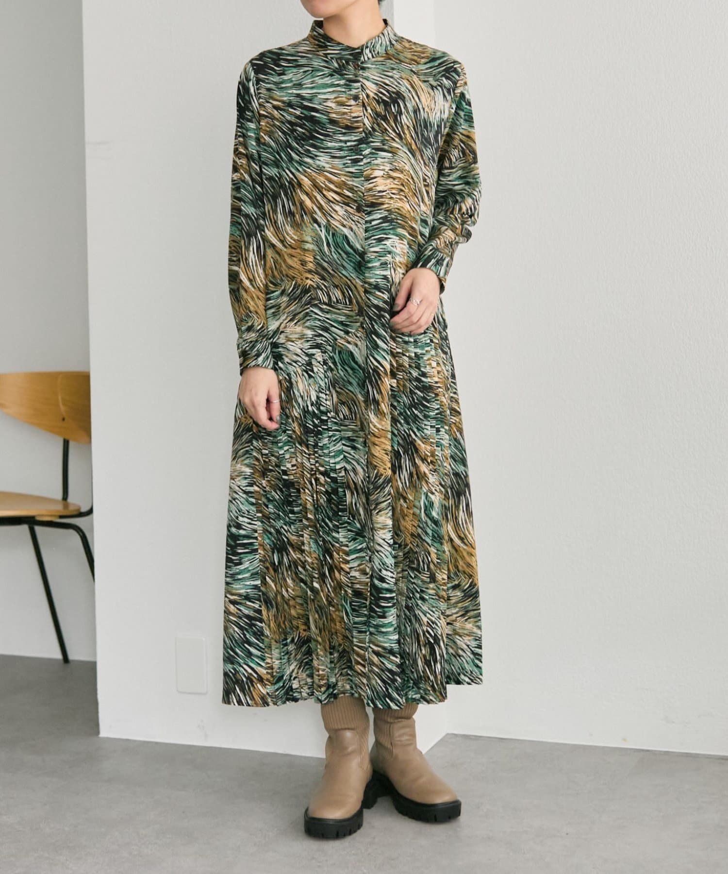 《オケージョン/動画あり》長袖斜めプリーツワンピース【SUM1 STYLE(スミ スタイル)】
