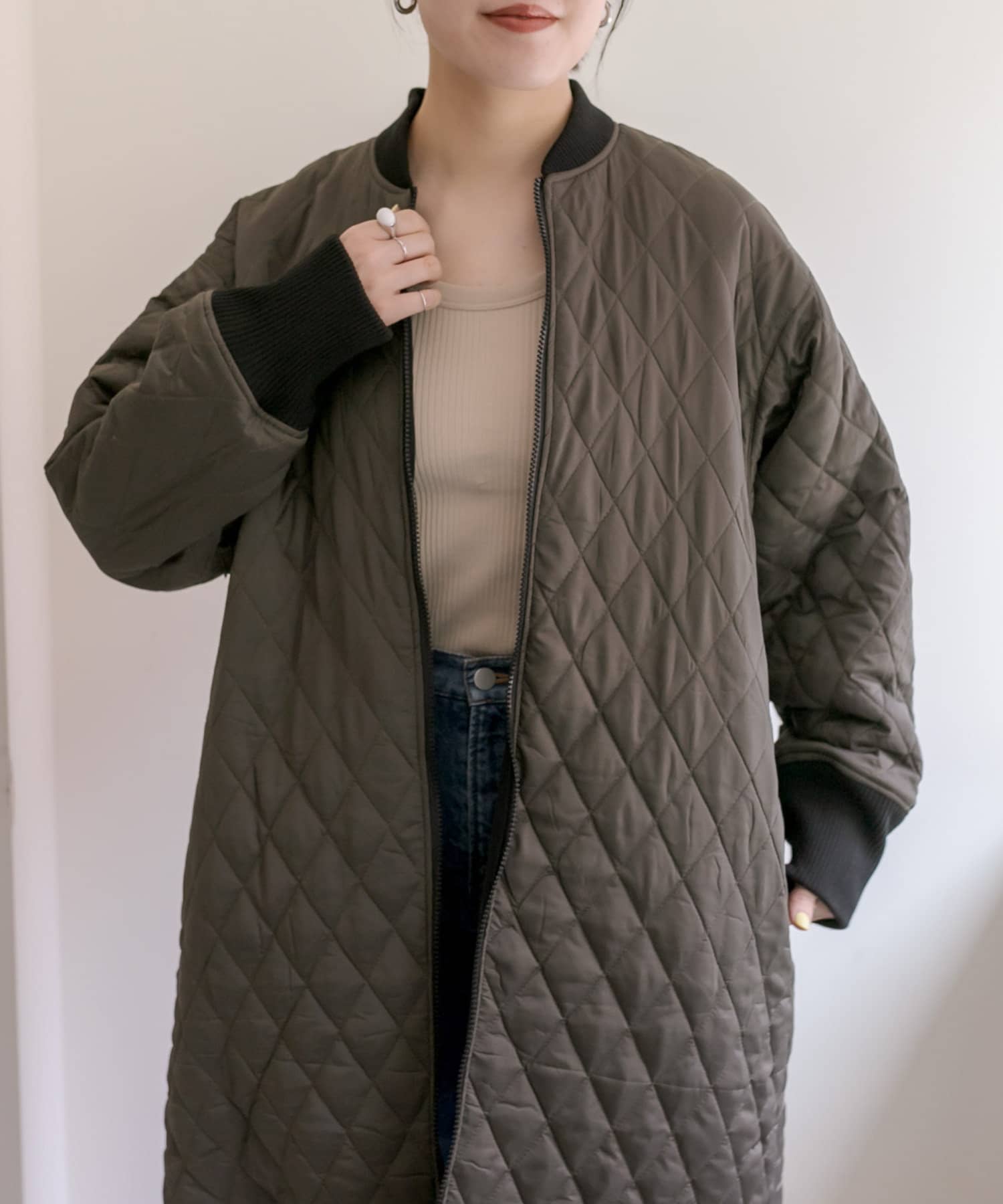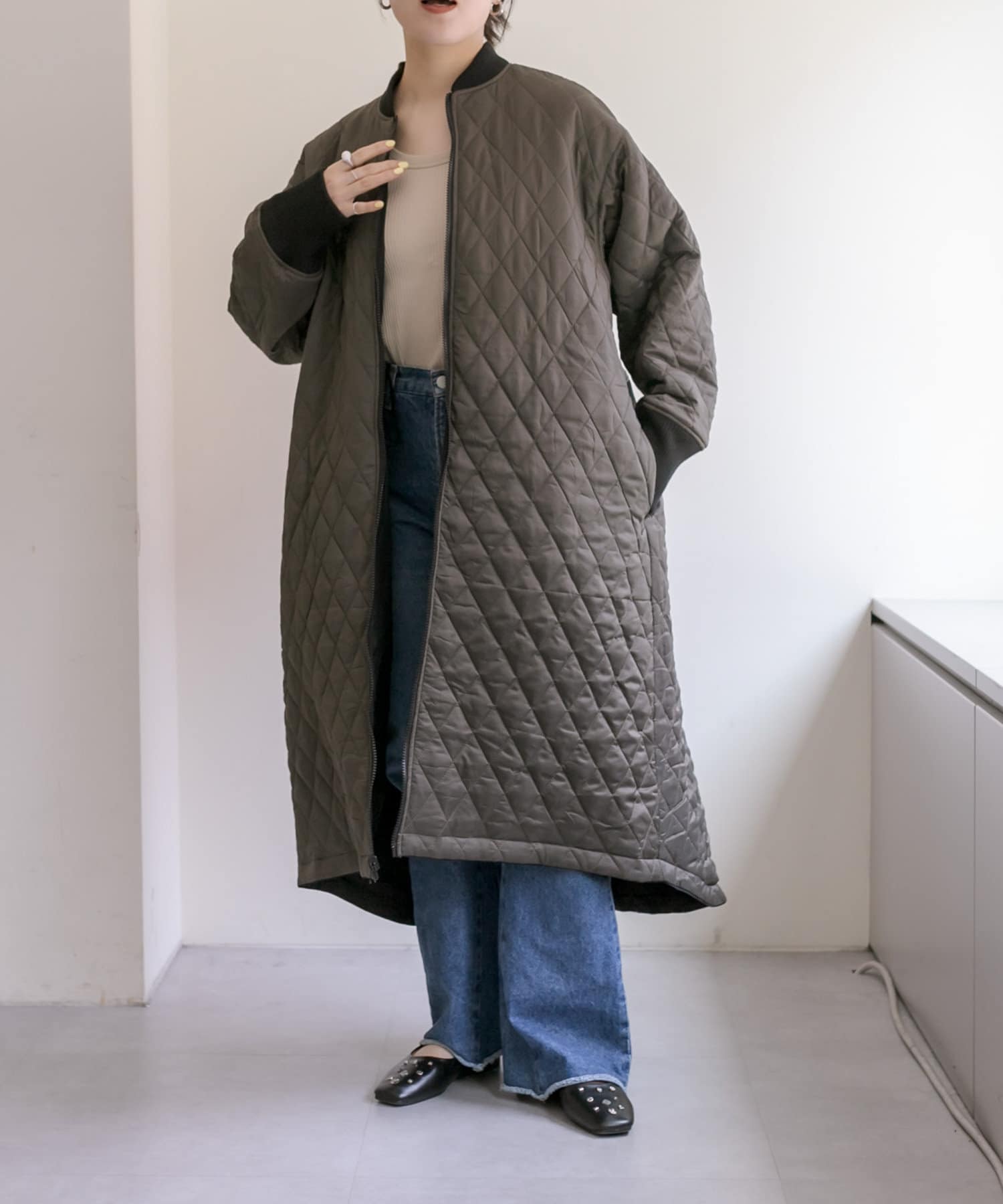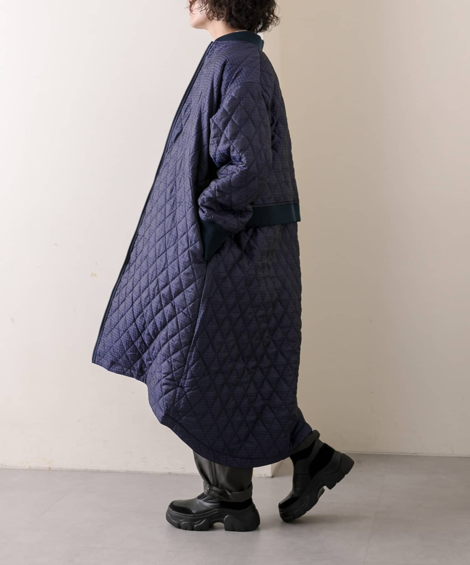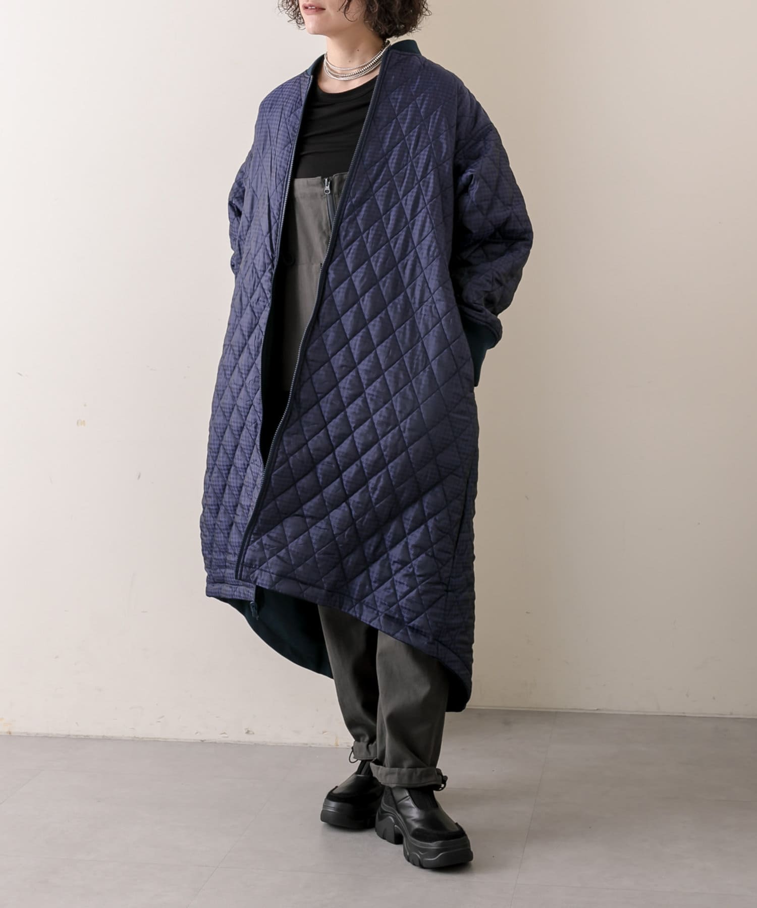 お仕事着などややフォーマルな装いの時はキルティング生地ではない方を表にして着るのが◎