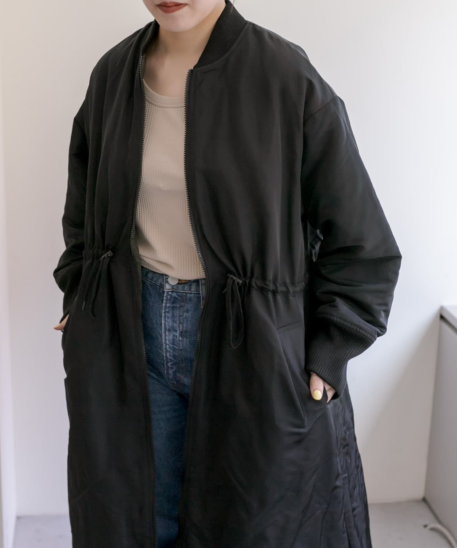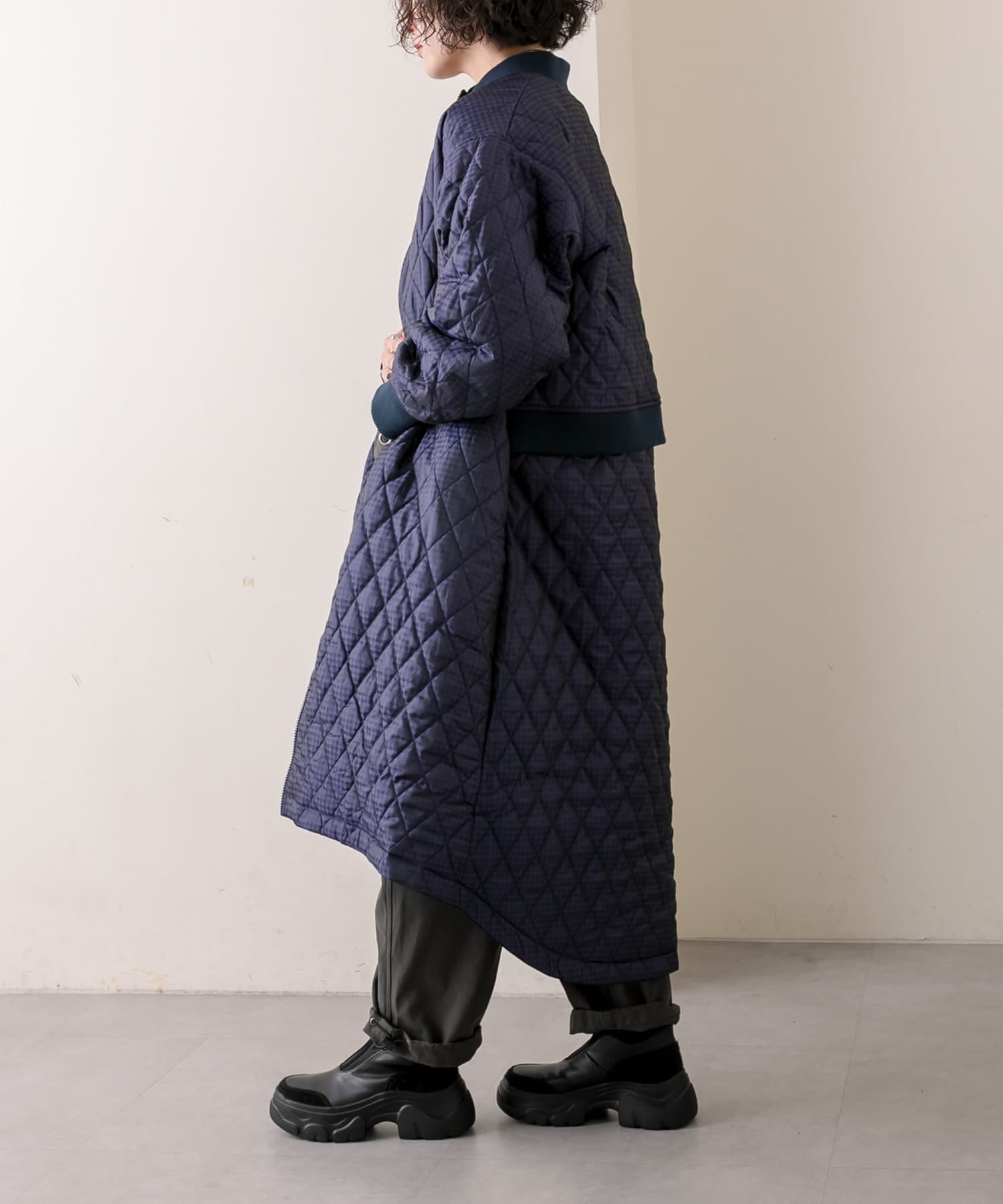※キルティングを表にして着用する際は、無地側のウエストのドローコードは伸ばした状態で着用がおすすめです。