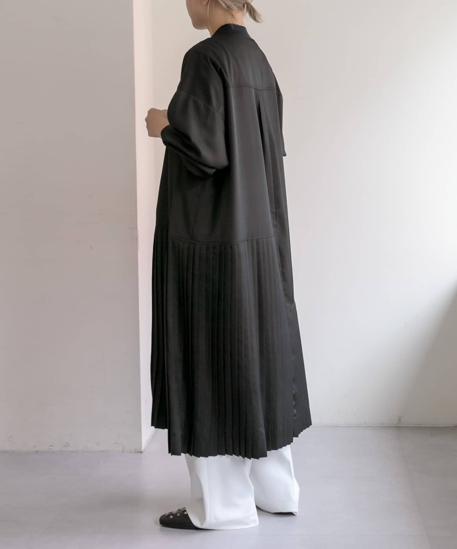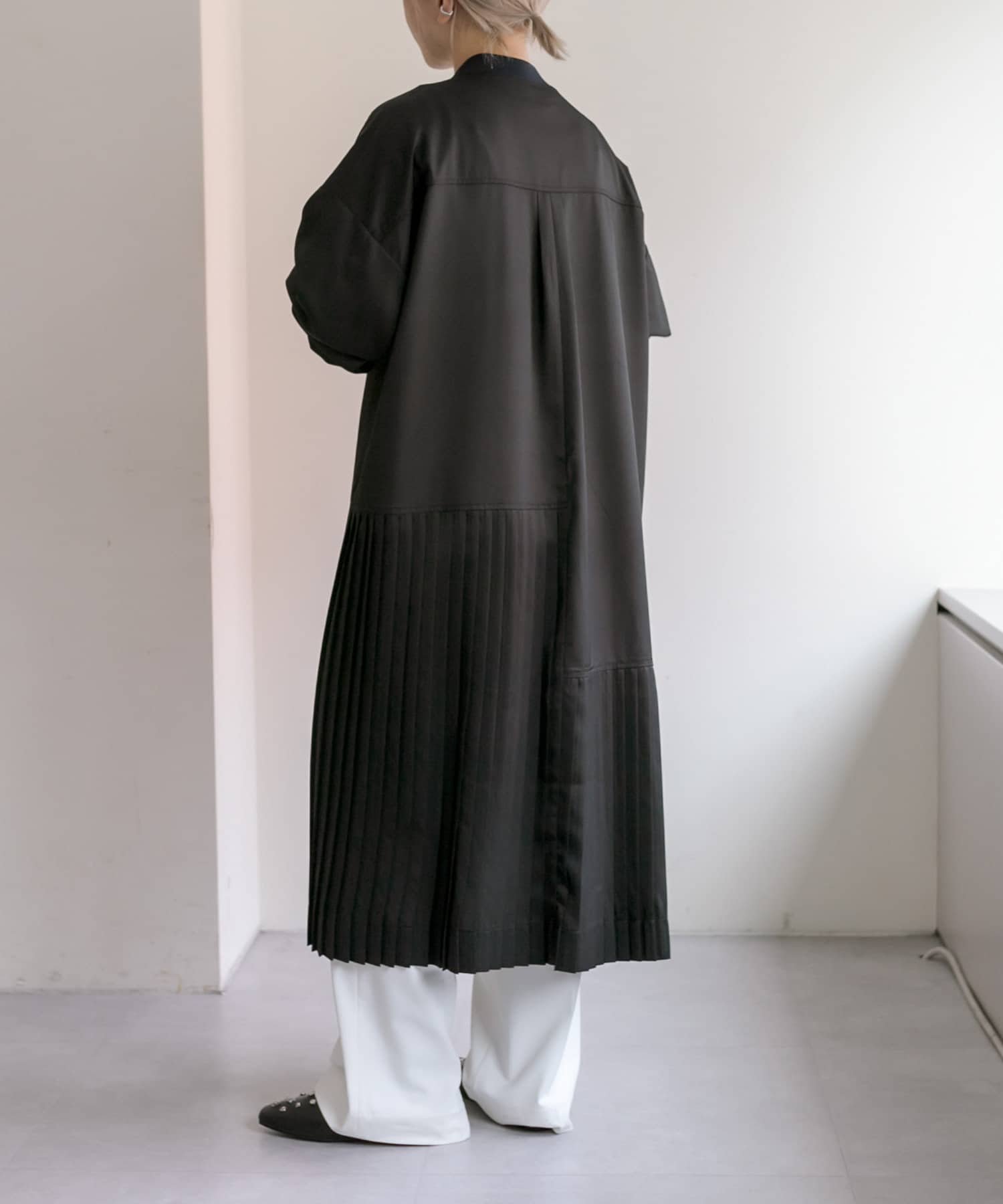 ・縦ラインを強調するプリーツ&幅広のカフスですっきり見え