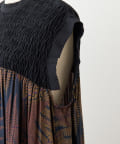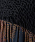 ・シダ柄×胸元のギャザーで華やかさたっぷりのワンピ