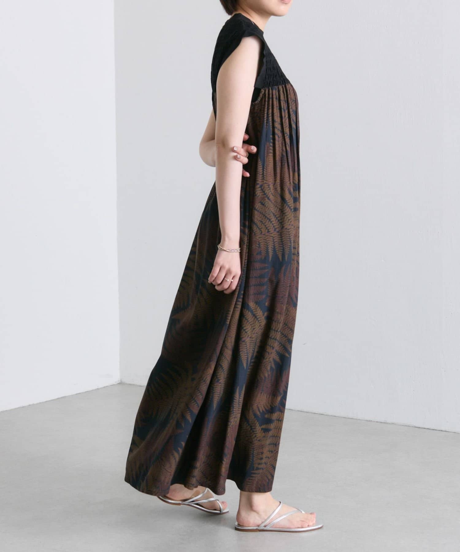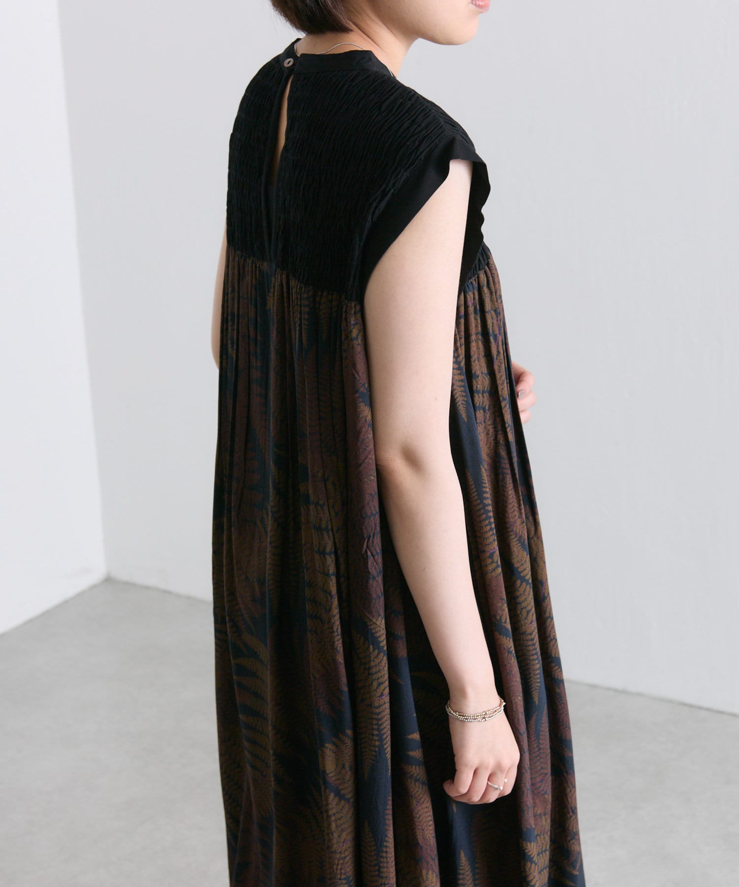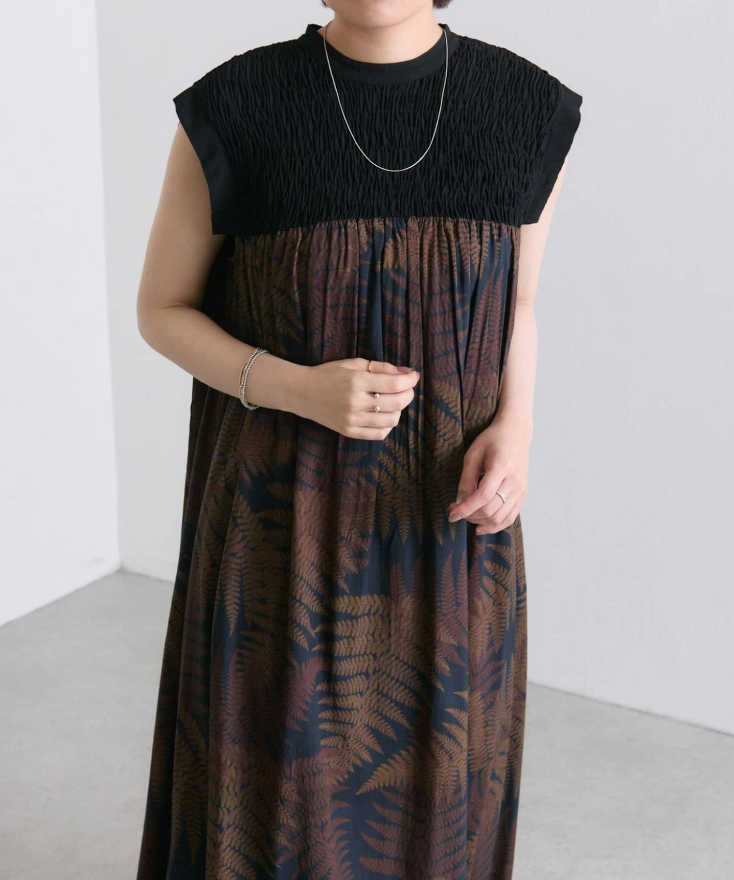 《動画あり》ボタニカル柄/シダ柄ワンピース【SUM1 STYLE(スミスタイル)】