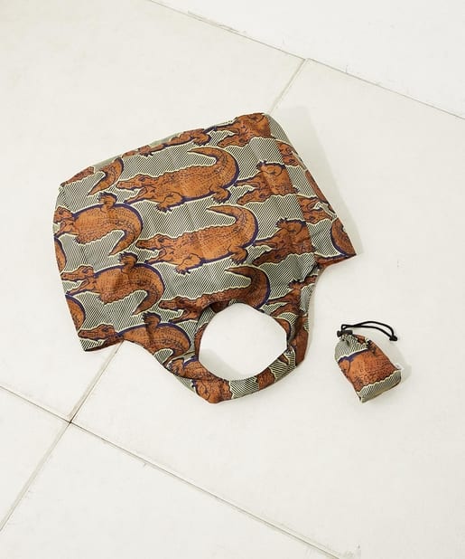 購入場所:店舗ワニのユニークなプリントが、カーキの色でオシャレな感じに。軽いし、大きさも丁度良いです。小さく巾着に収まるので、バッグにいつも入れておきたいです。