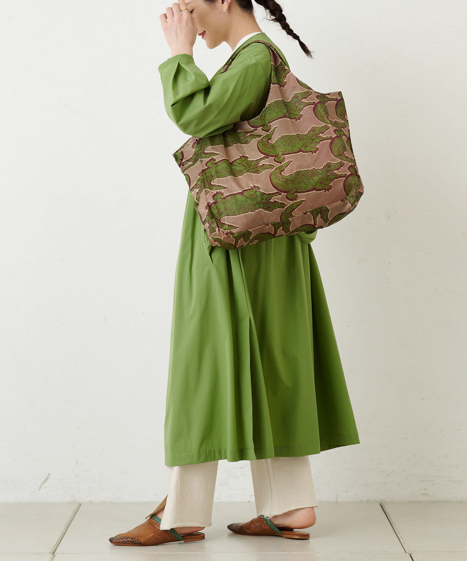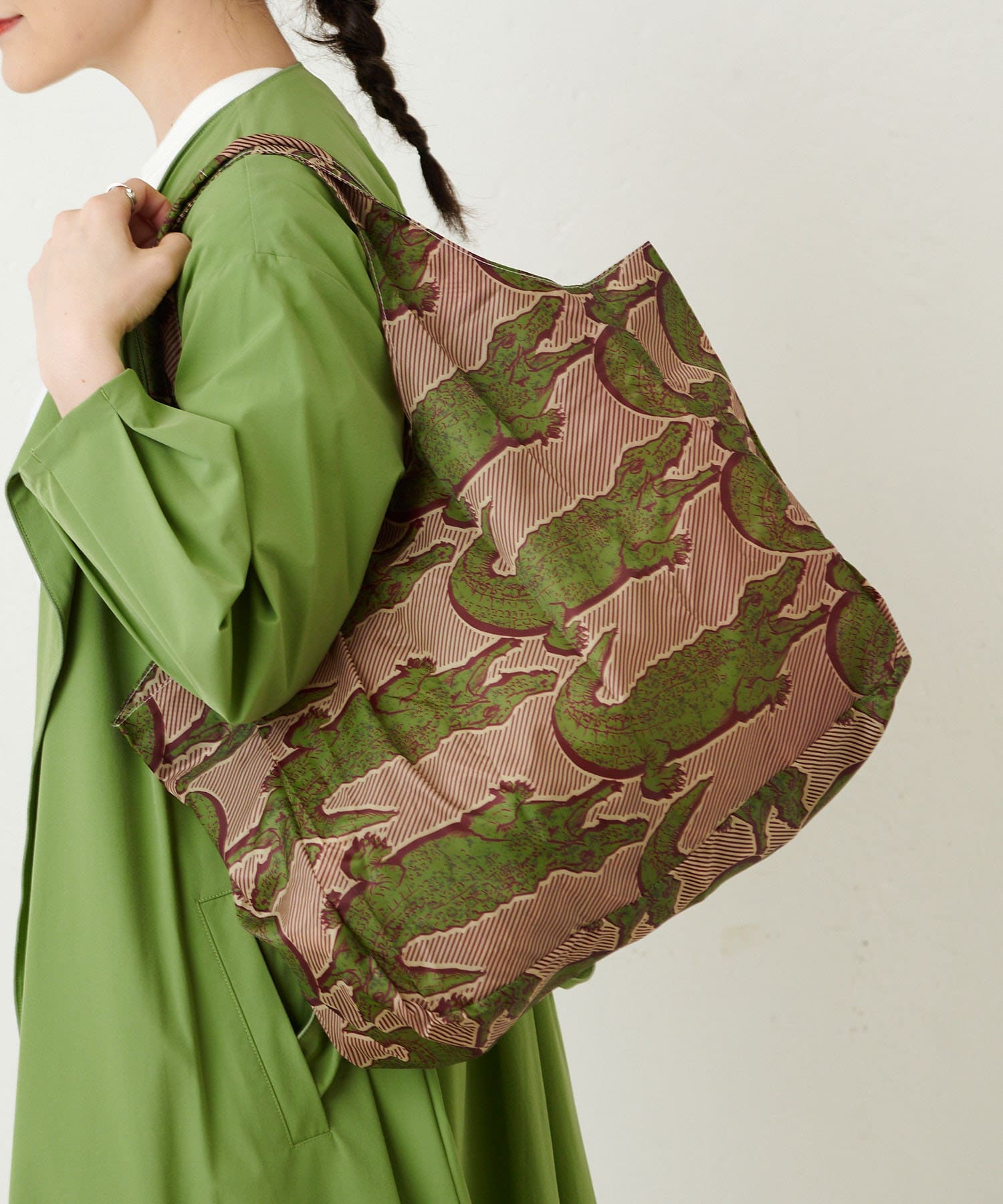 (カーキ)ワニ:2019年秋冬に販売したトートバッグで登場したワニ柄。アースカラーでベージュ系コーディネイトにもぴったり。
