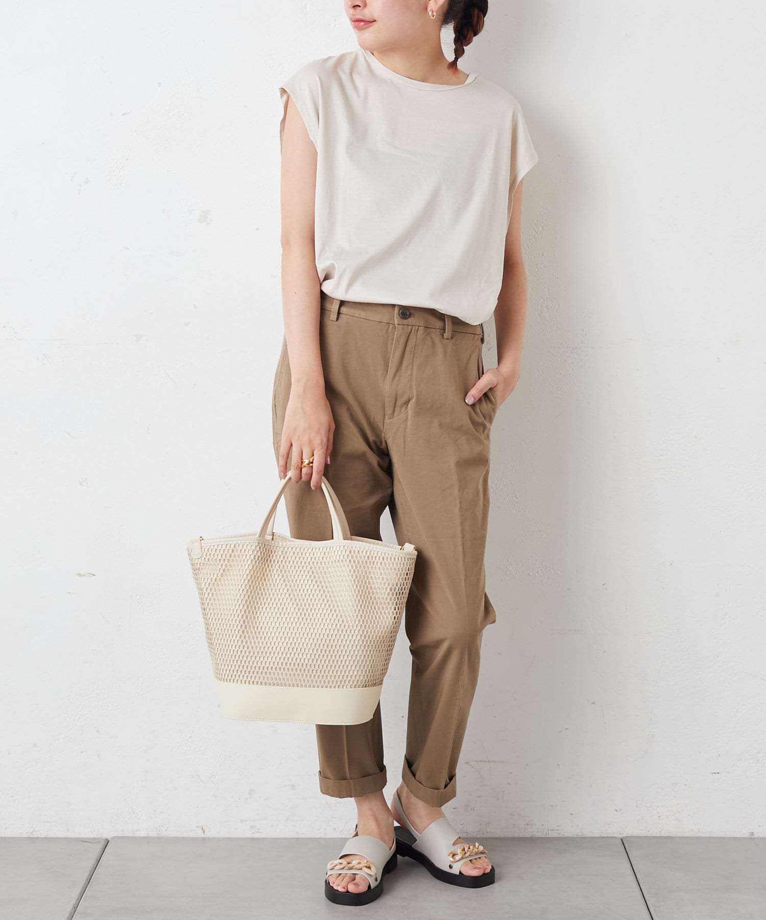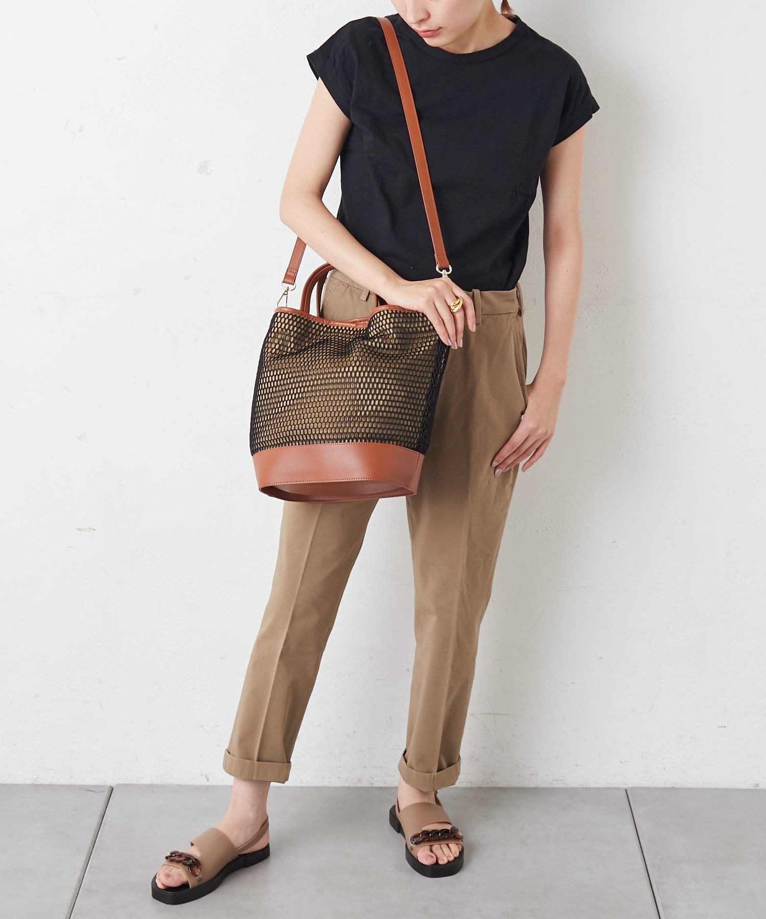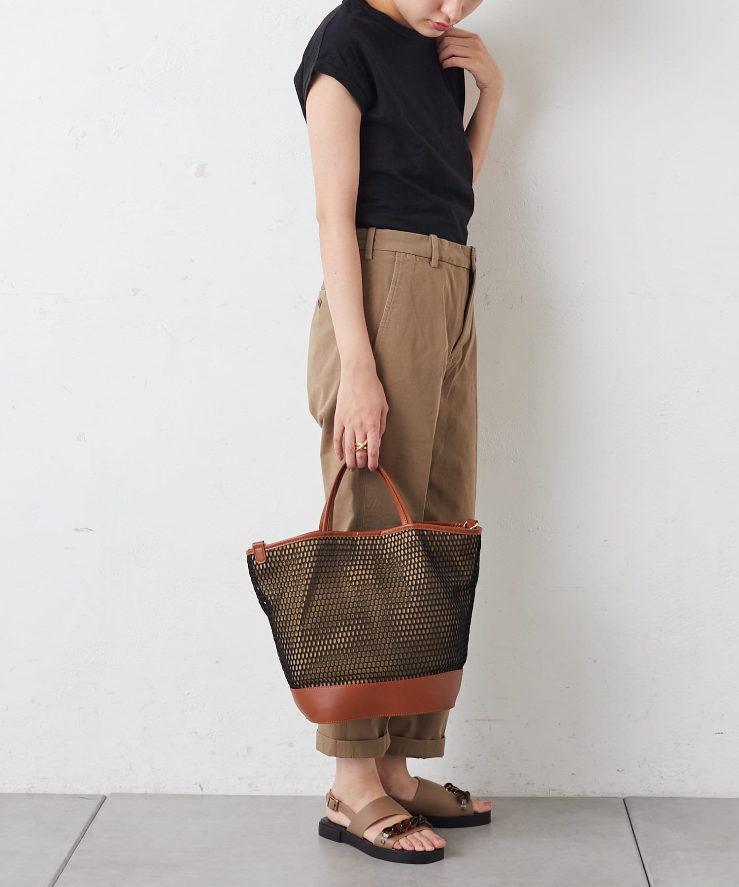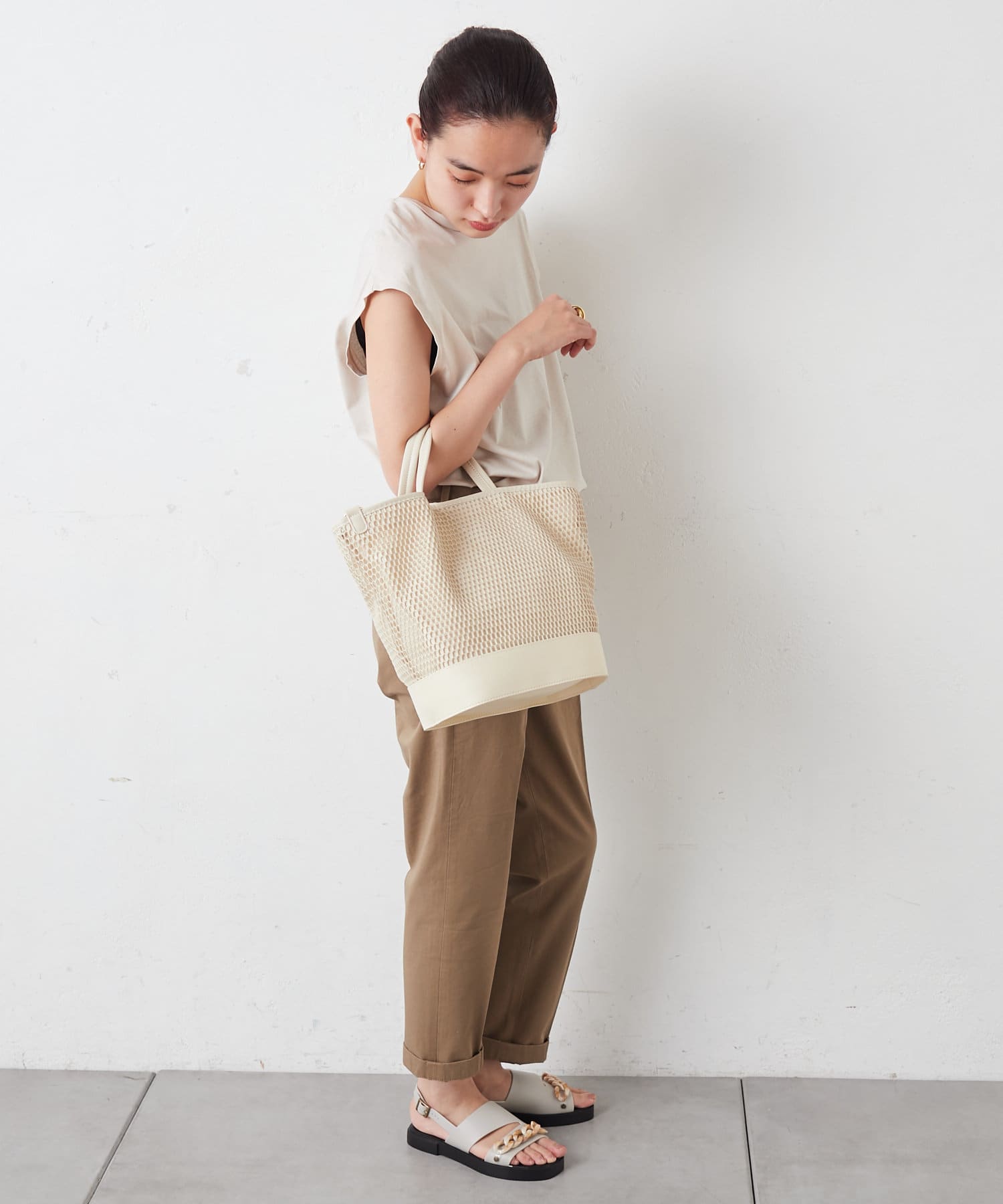 カチッときれい目な印象に仕上げたメッシュバッグ。