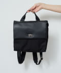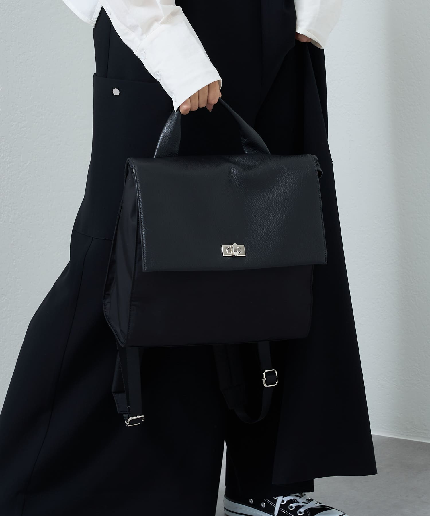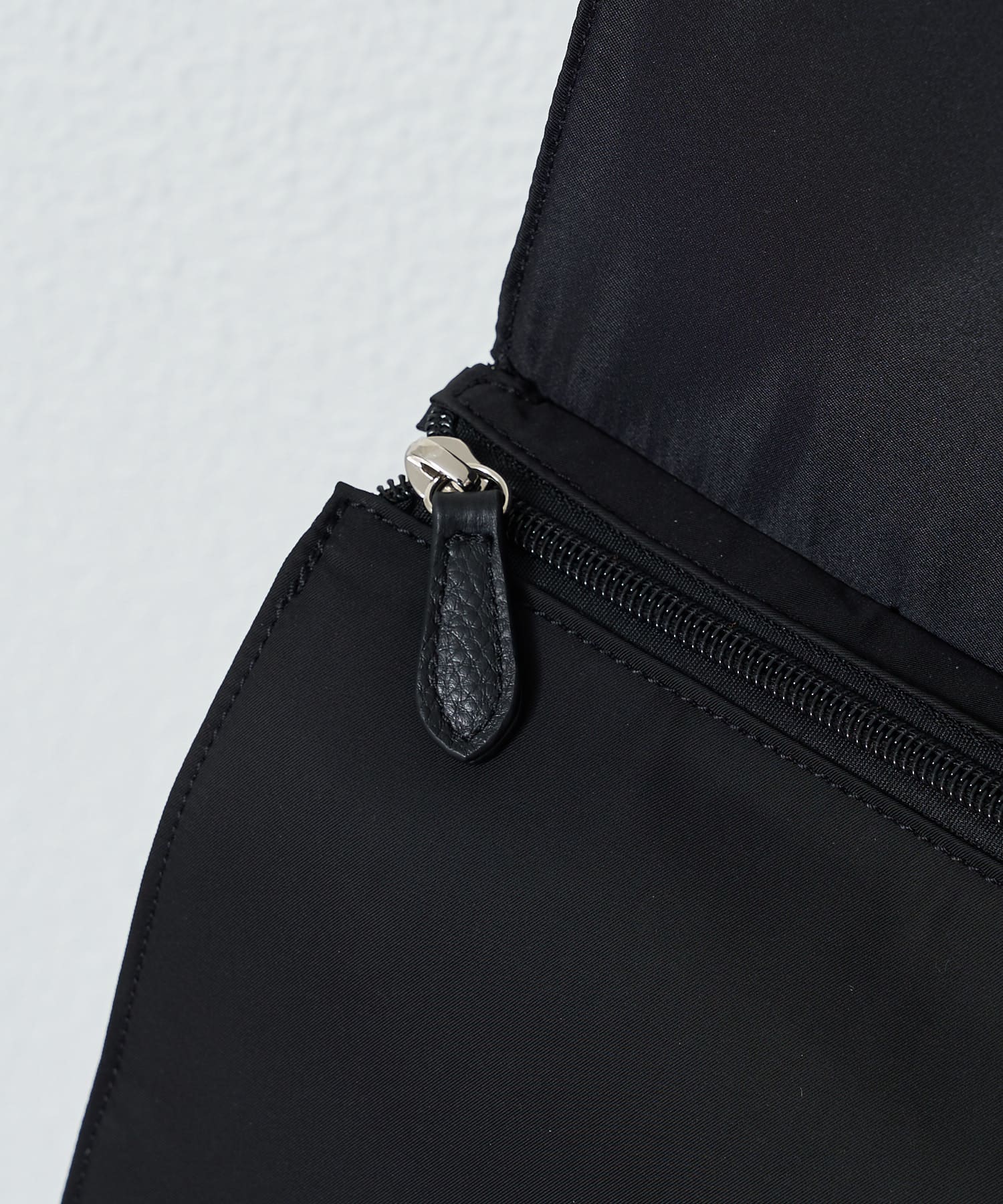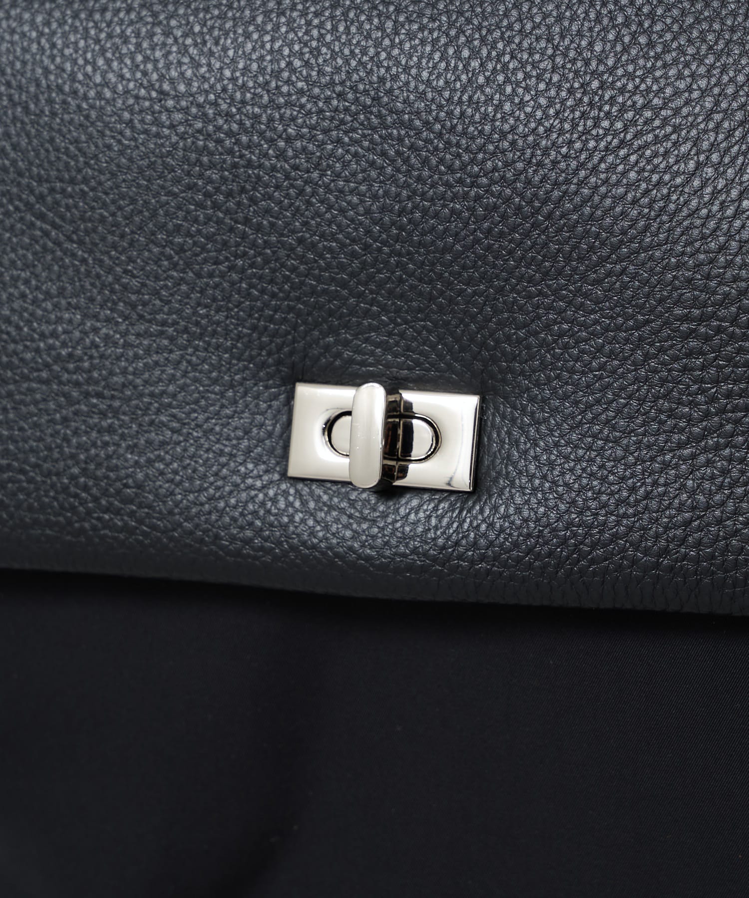 シルバーのひねり金具をフラップ部分に施すことでキレイ目な印象に。