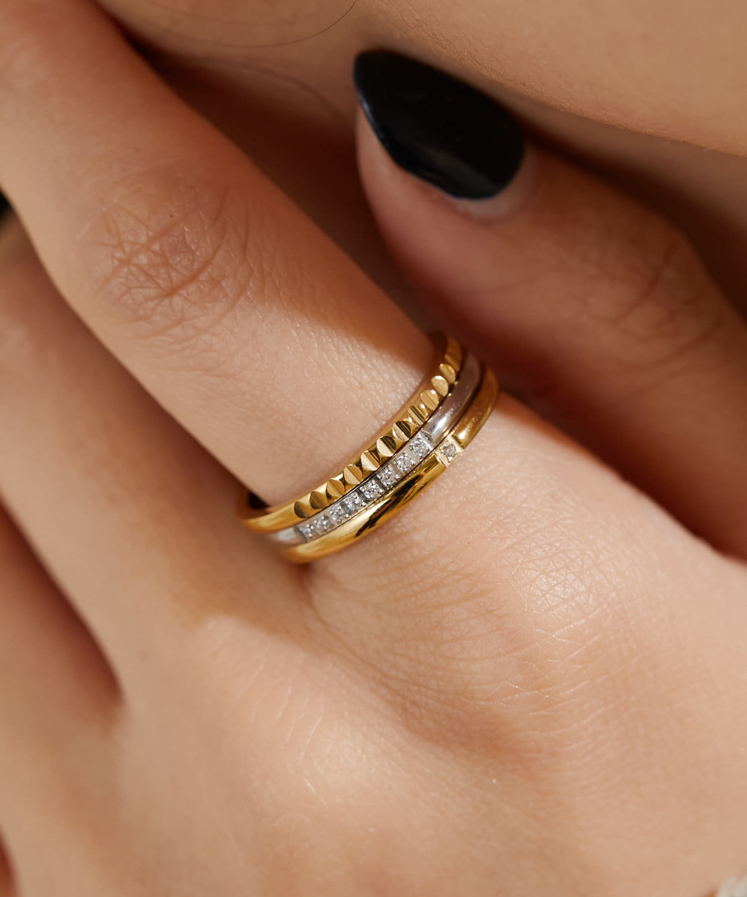色の違う3本セットのリングは、それぞれフロントのデザインが違います。