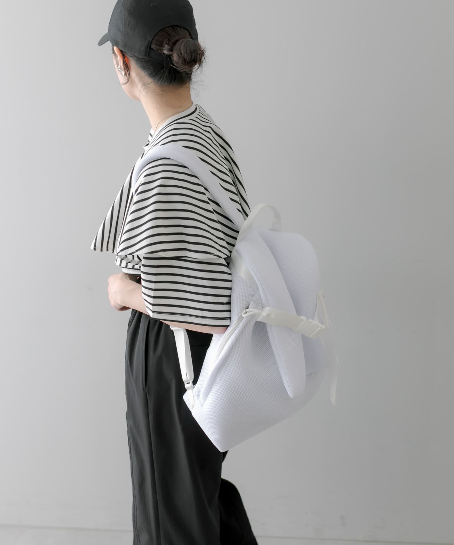 肉圧で柔らかいメッシュ素材を使用し背負い心地のいい仕上がりに。