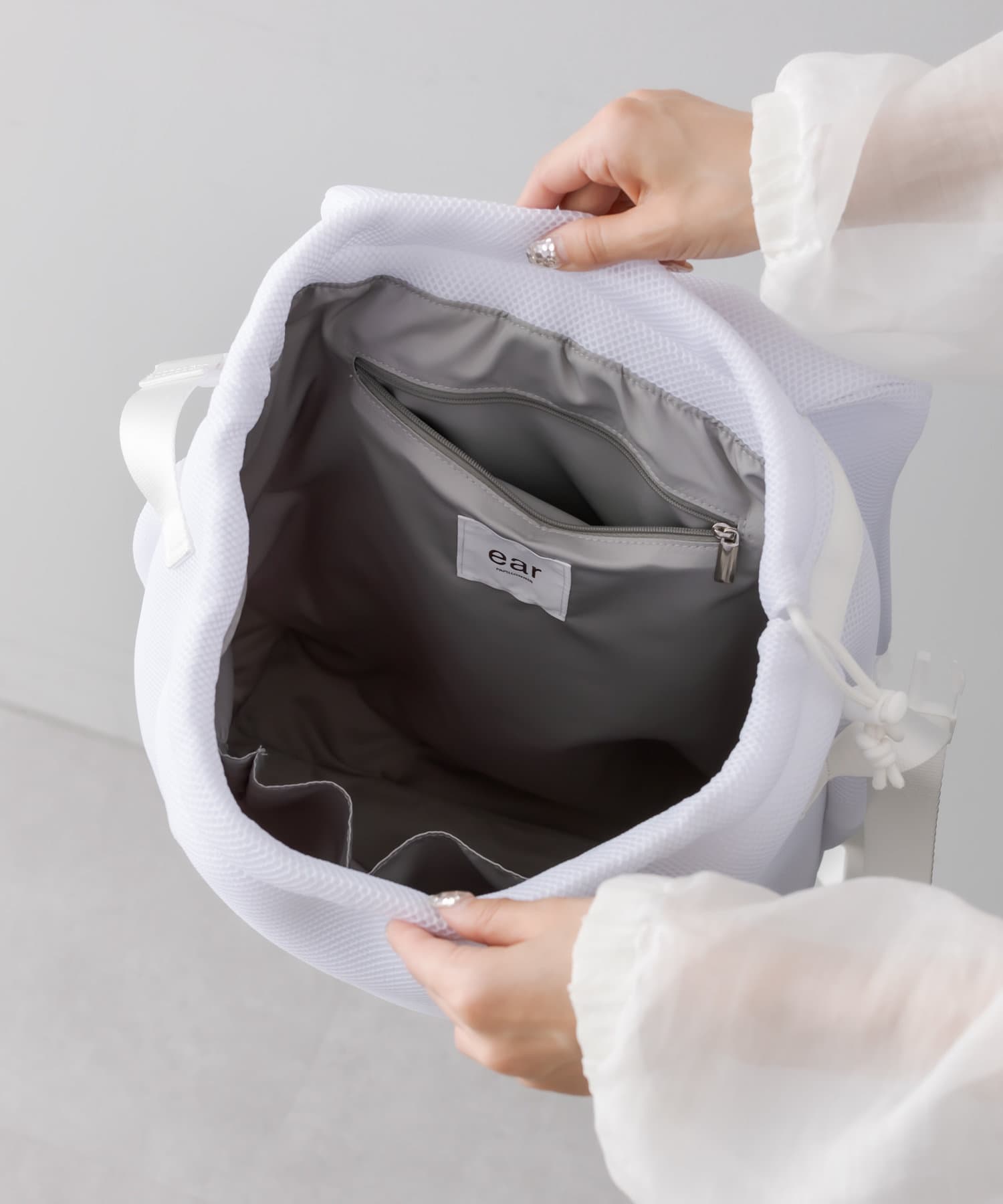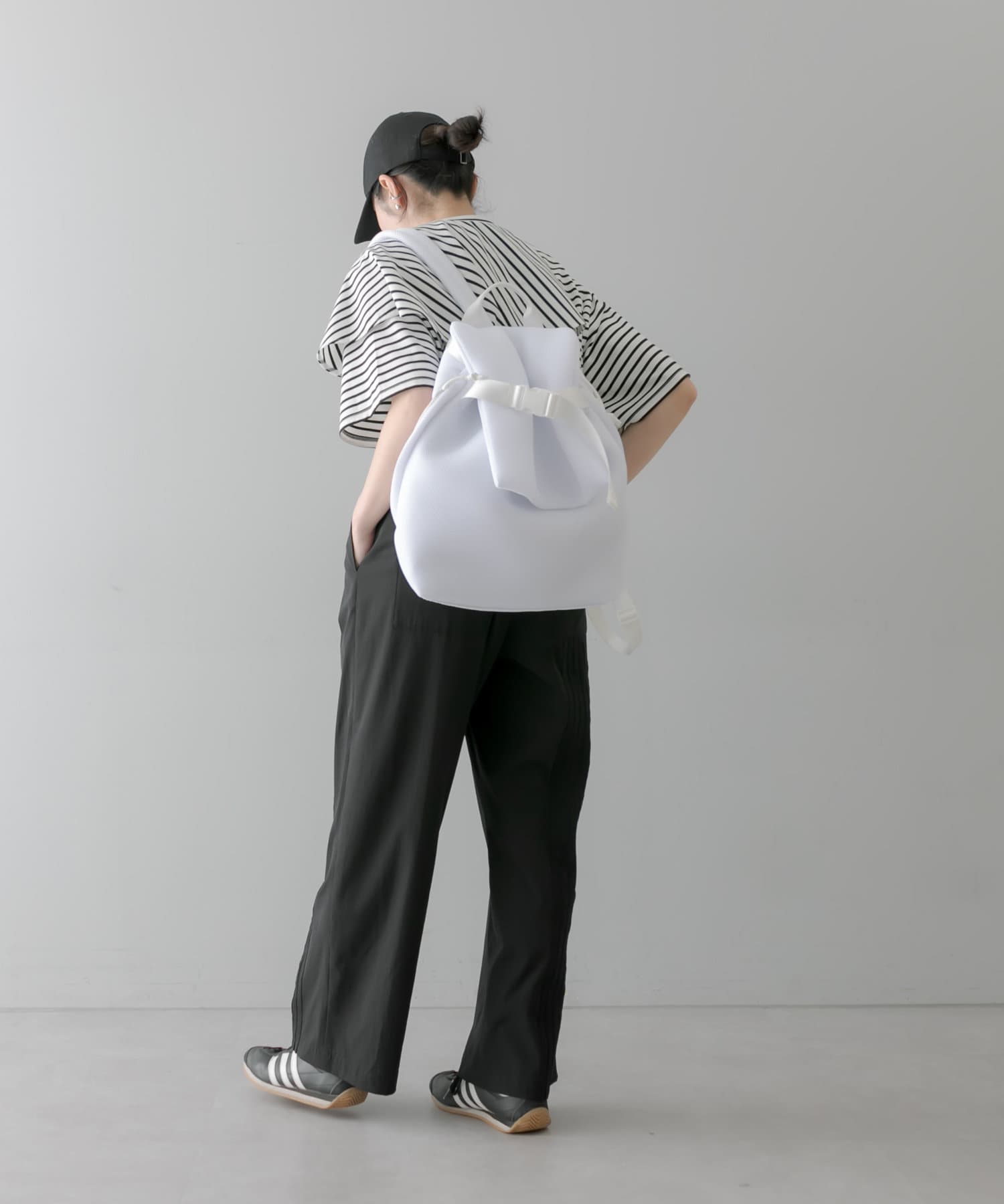 口元は巾着タイプで大きく開き荷物の出し入れがスムーズ。