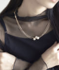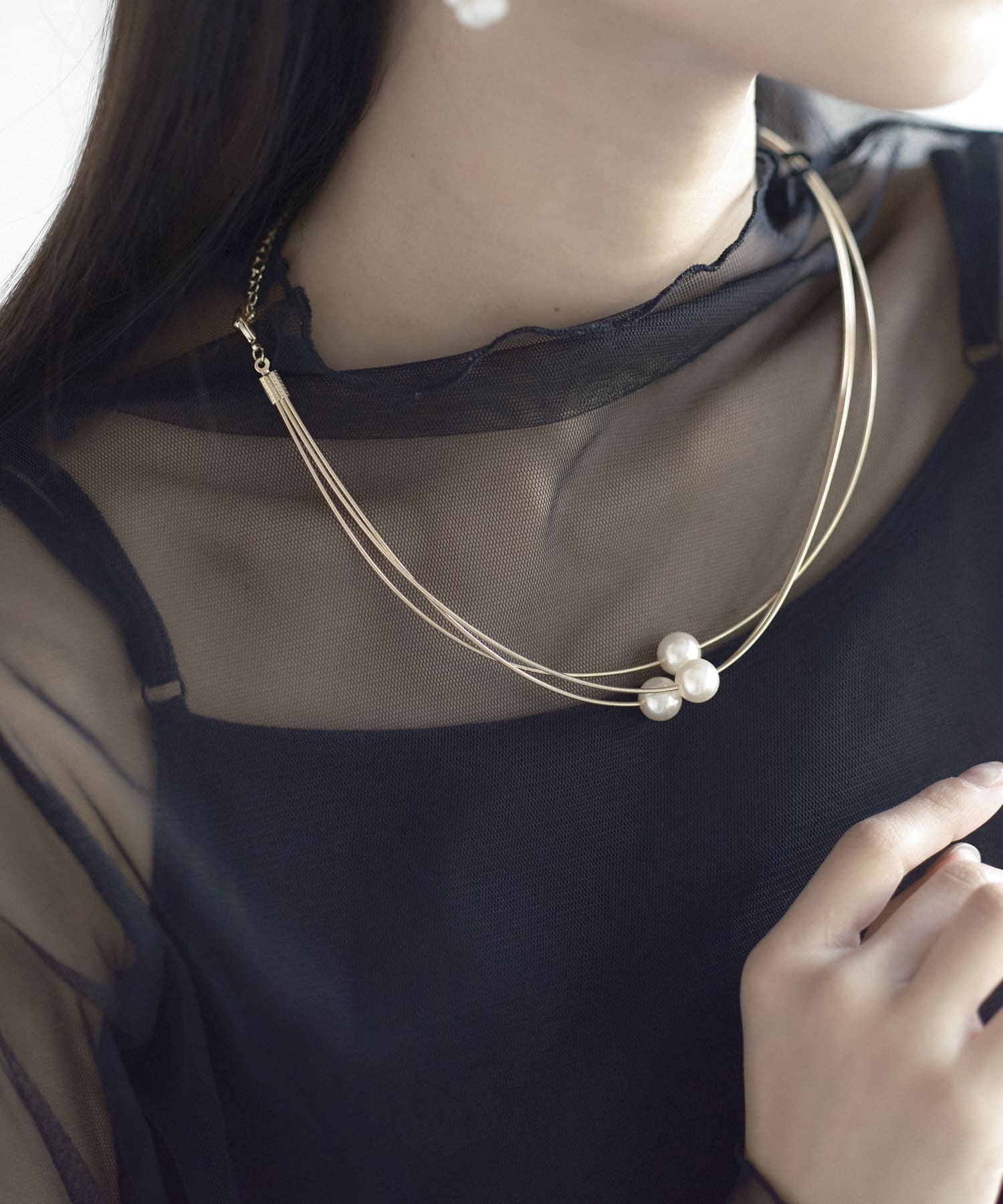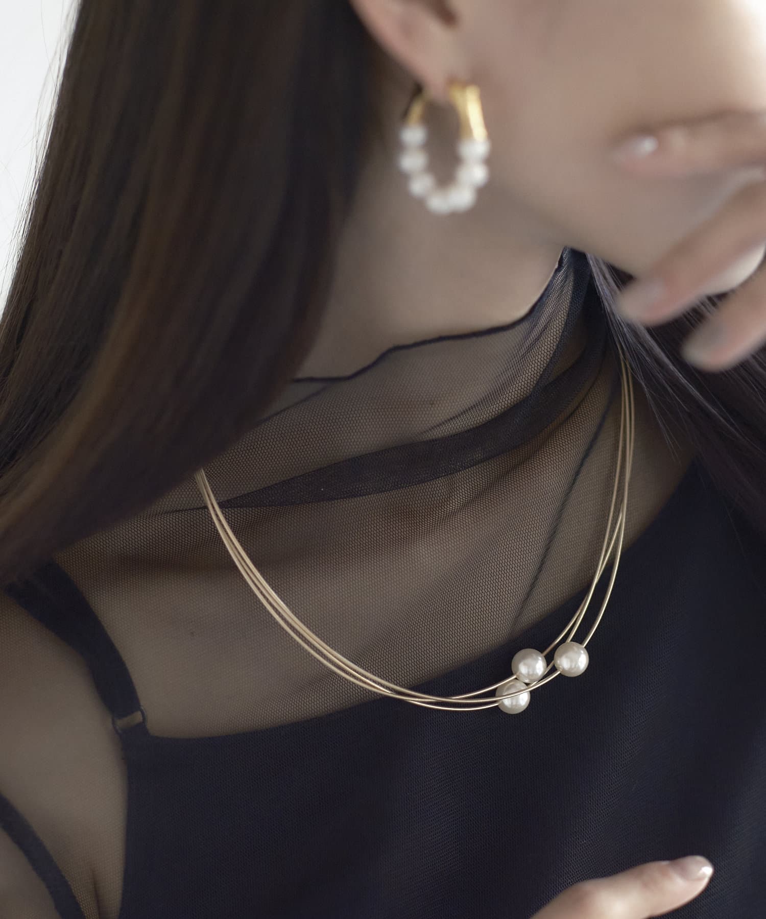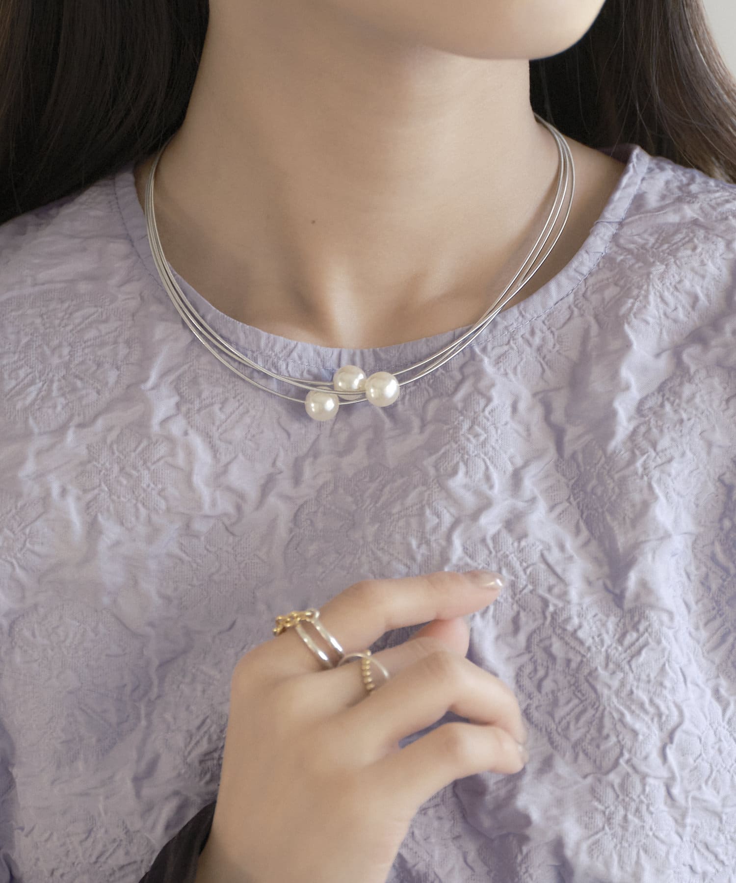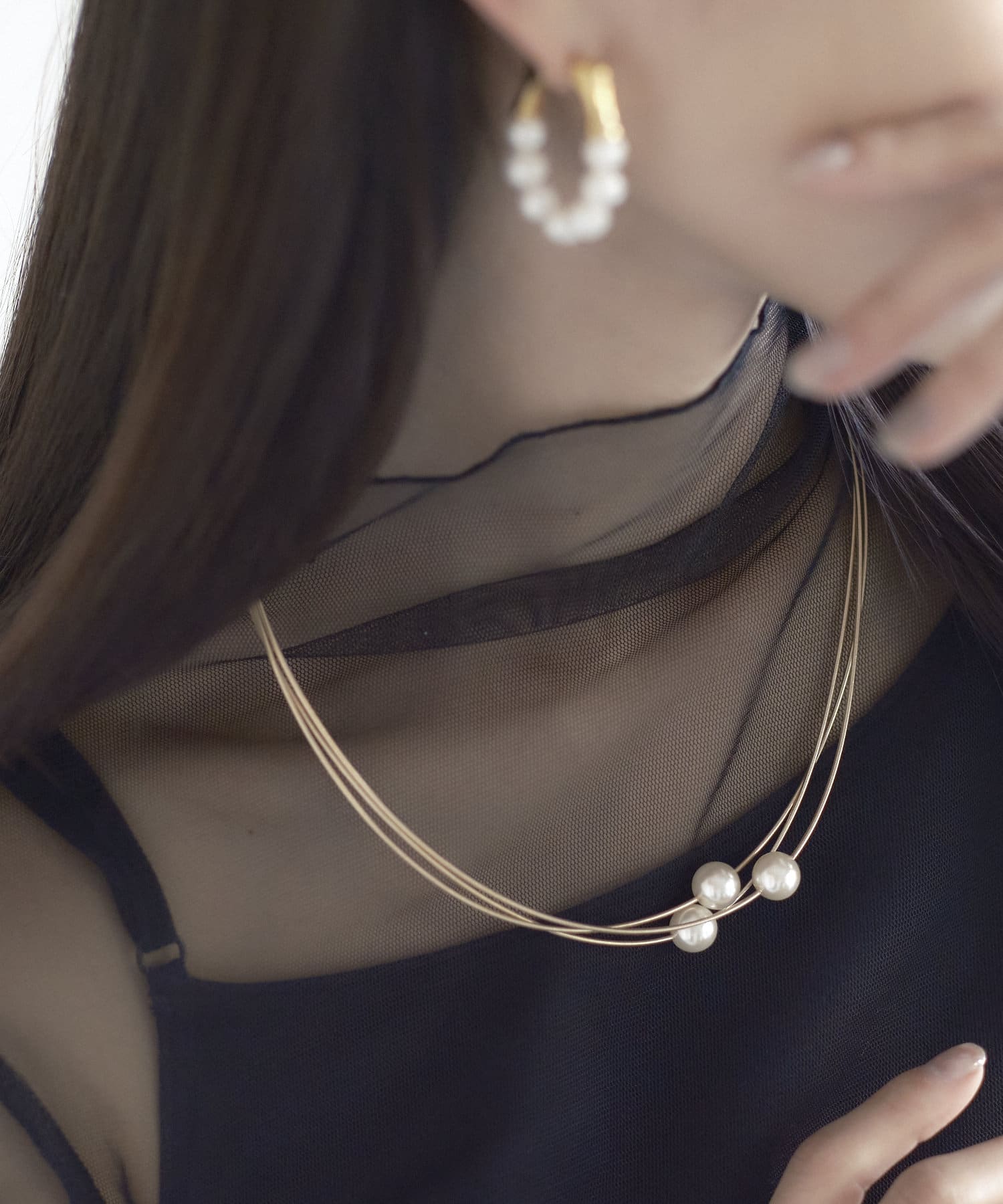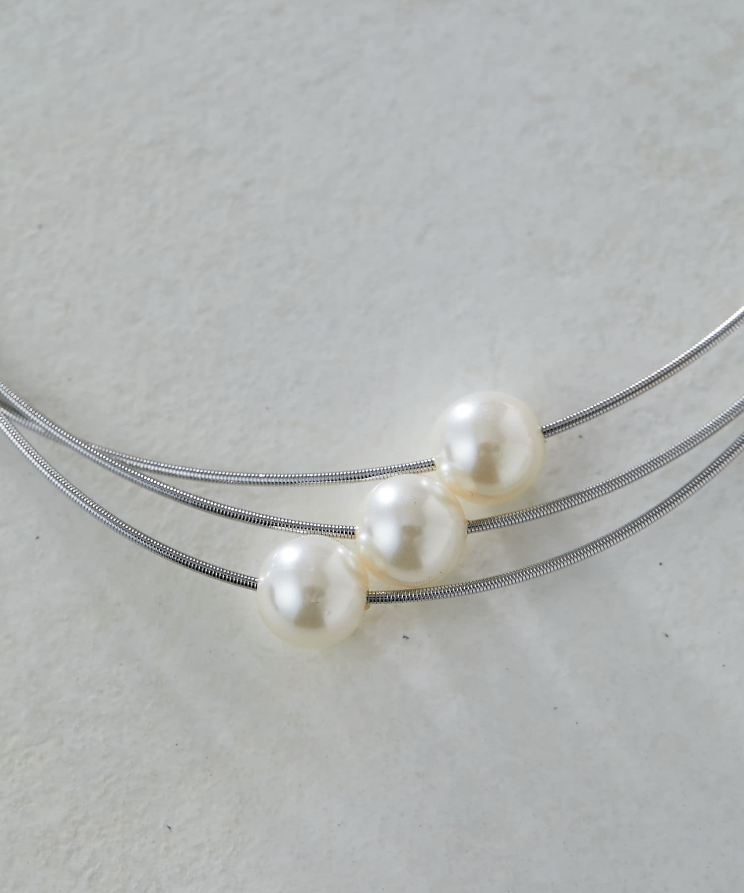 やわらかいワイヤーコードに一粒パールが通った、3連パールネックレス。