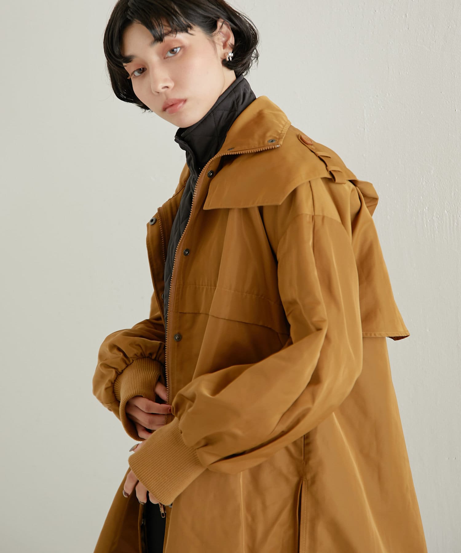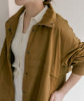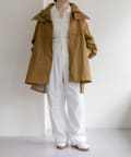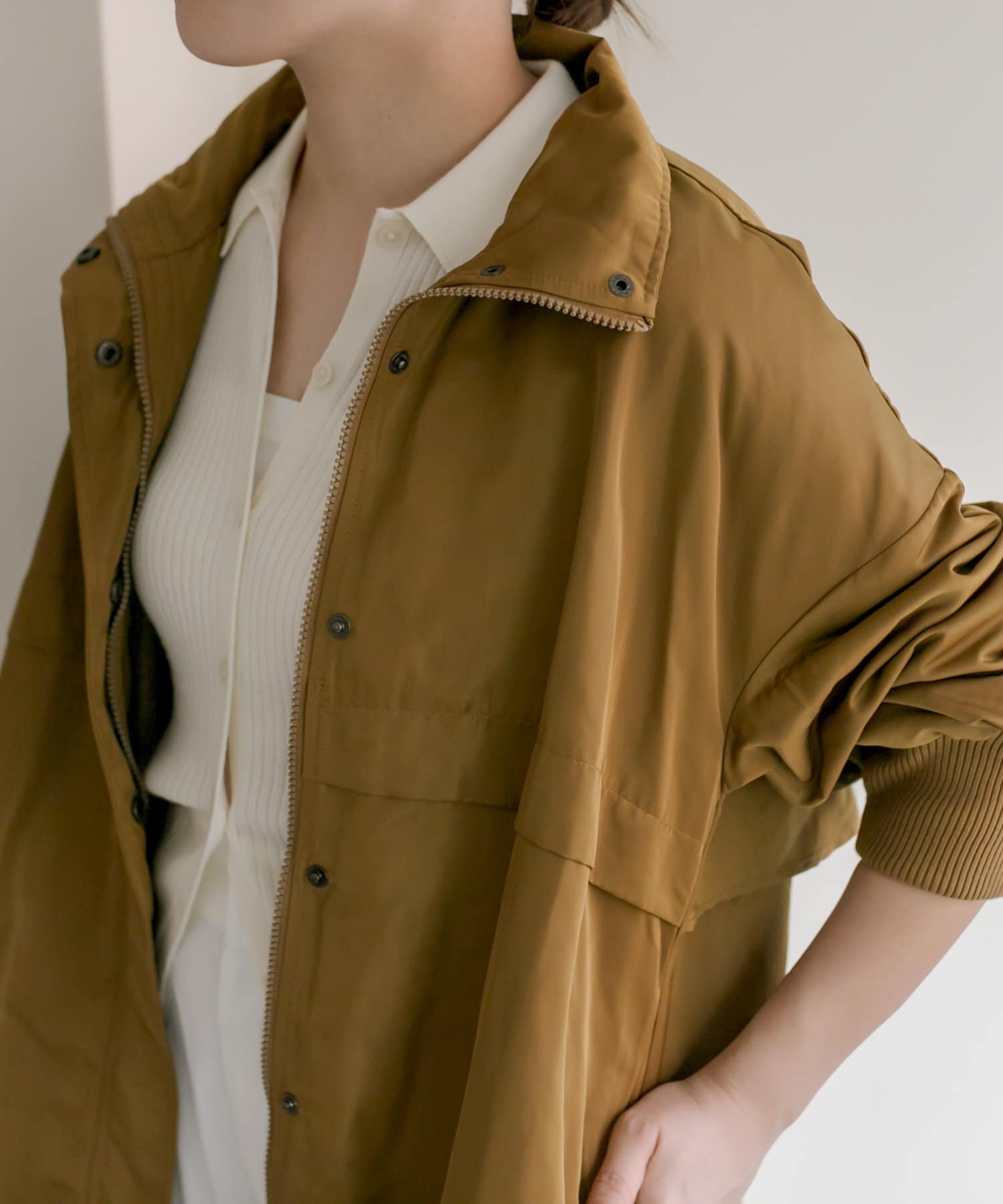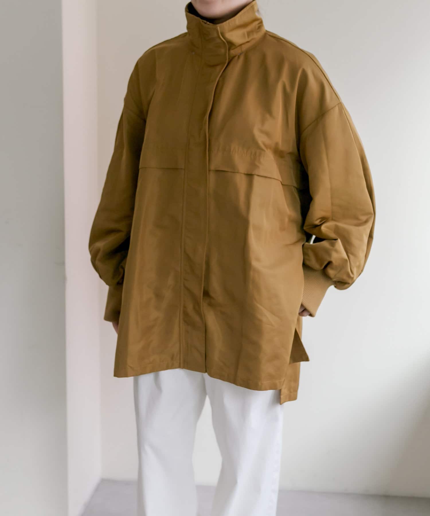 首元まで閉じるとトレンド感のあるスタンドカラーのコートになり、すっきりとした印象に。