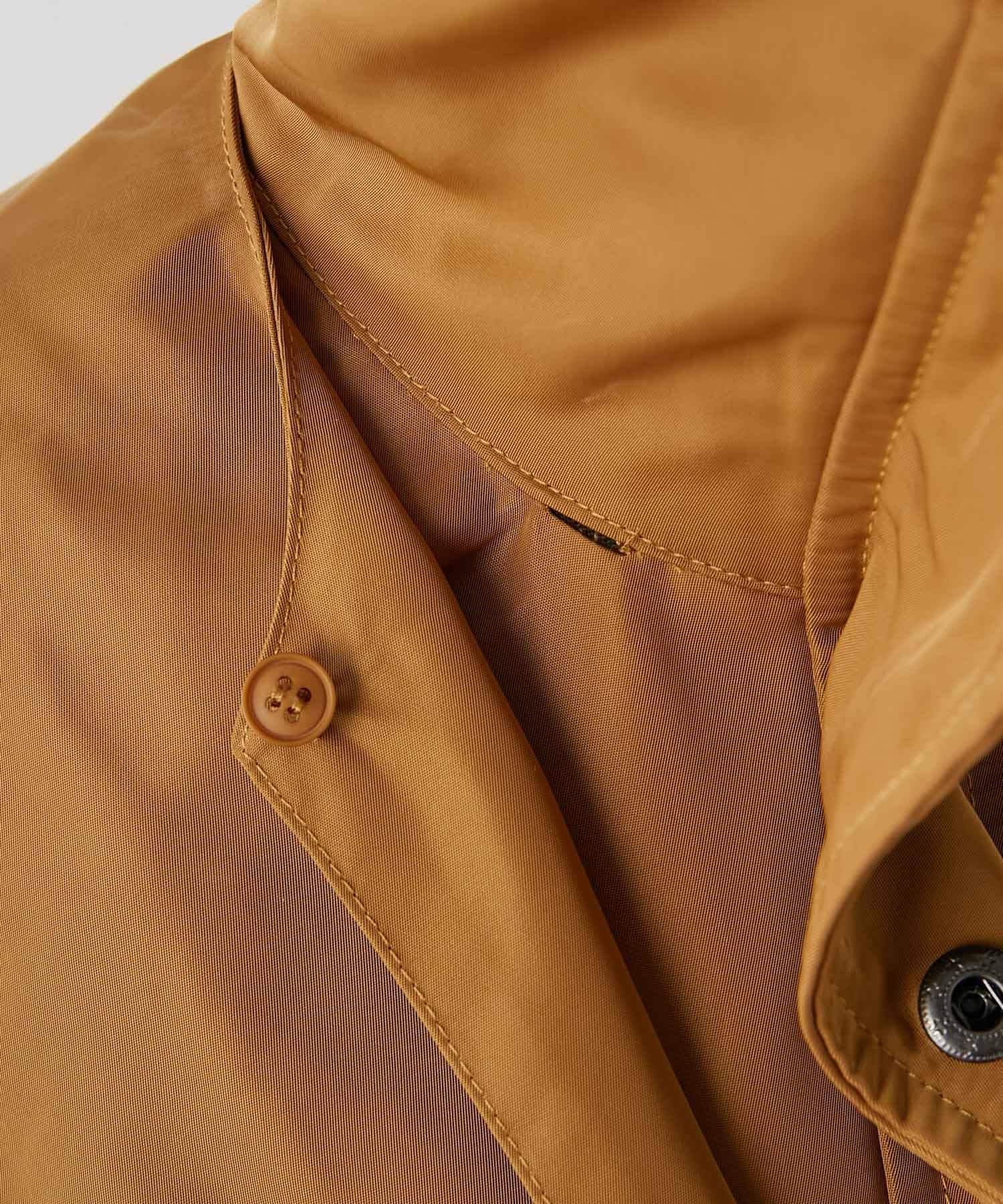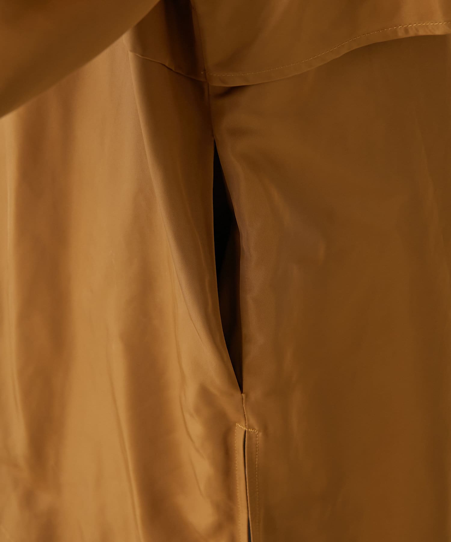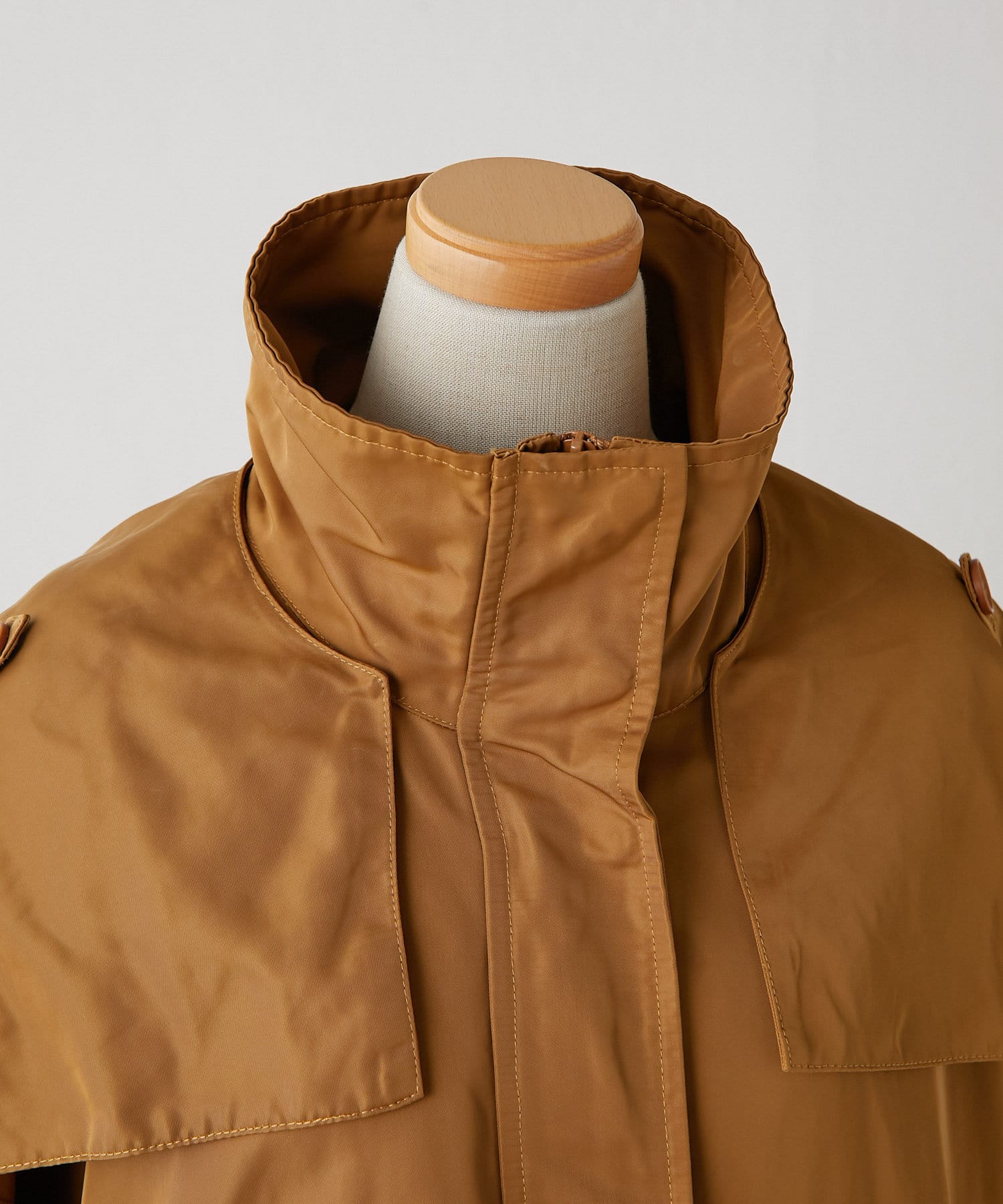 首元まで閉じるとトレンド感のあるスタンドカラーのコートになり、すっきりとした印象に。