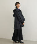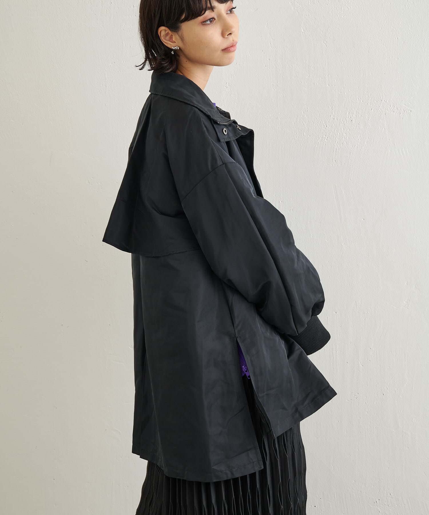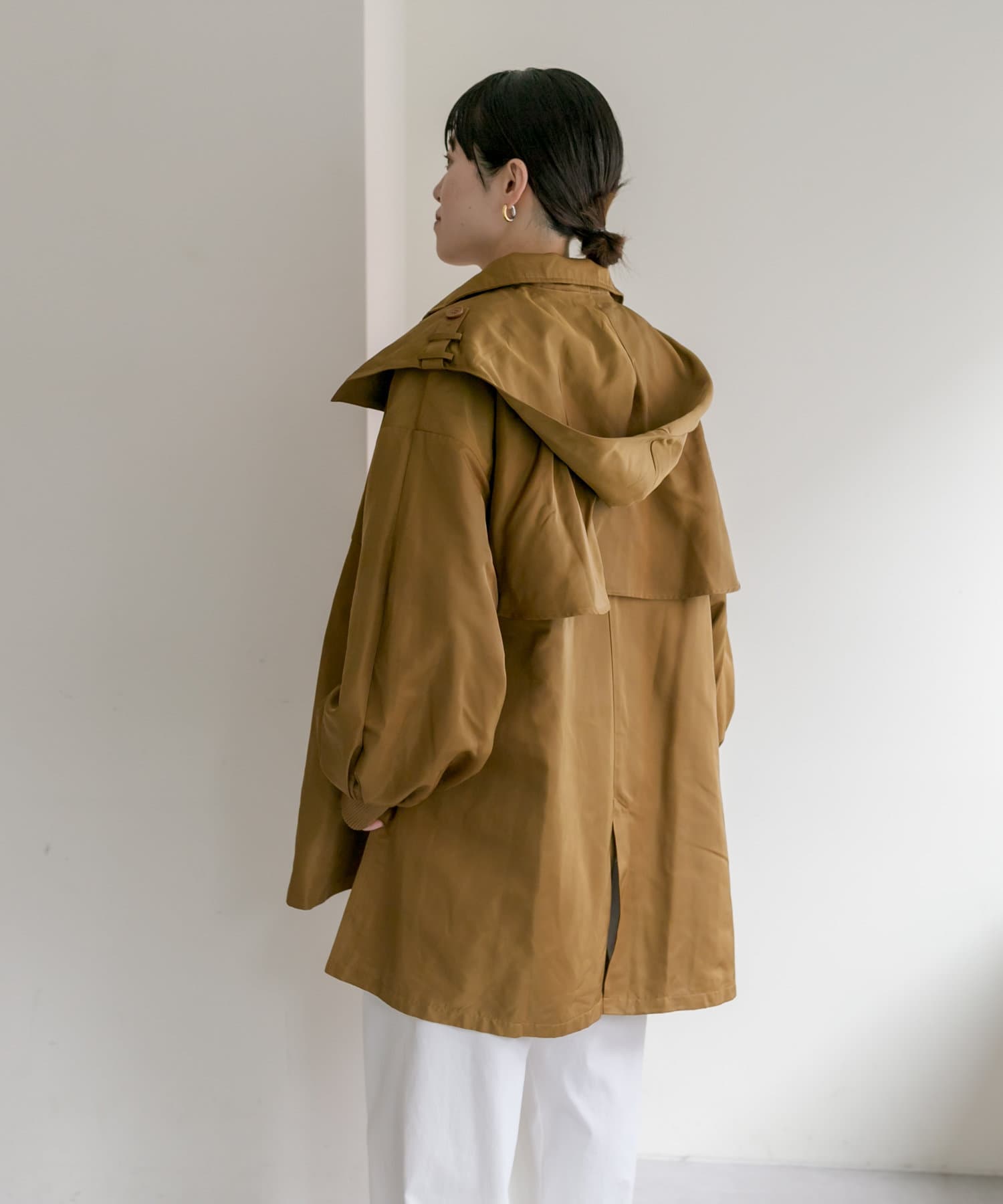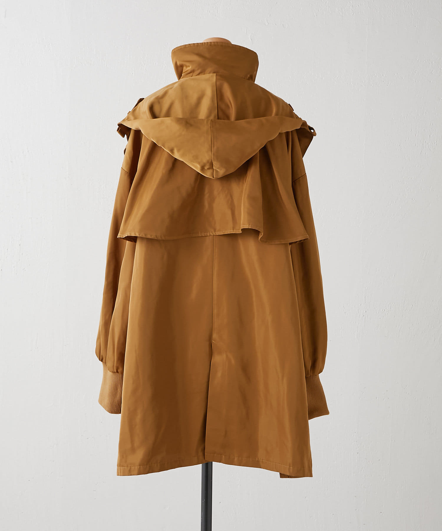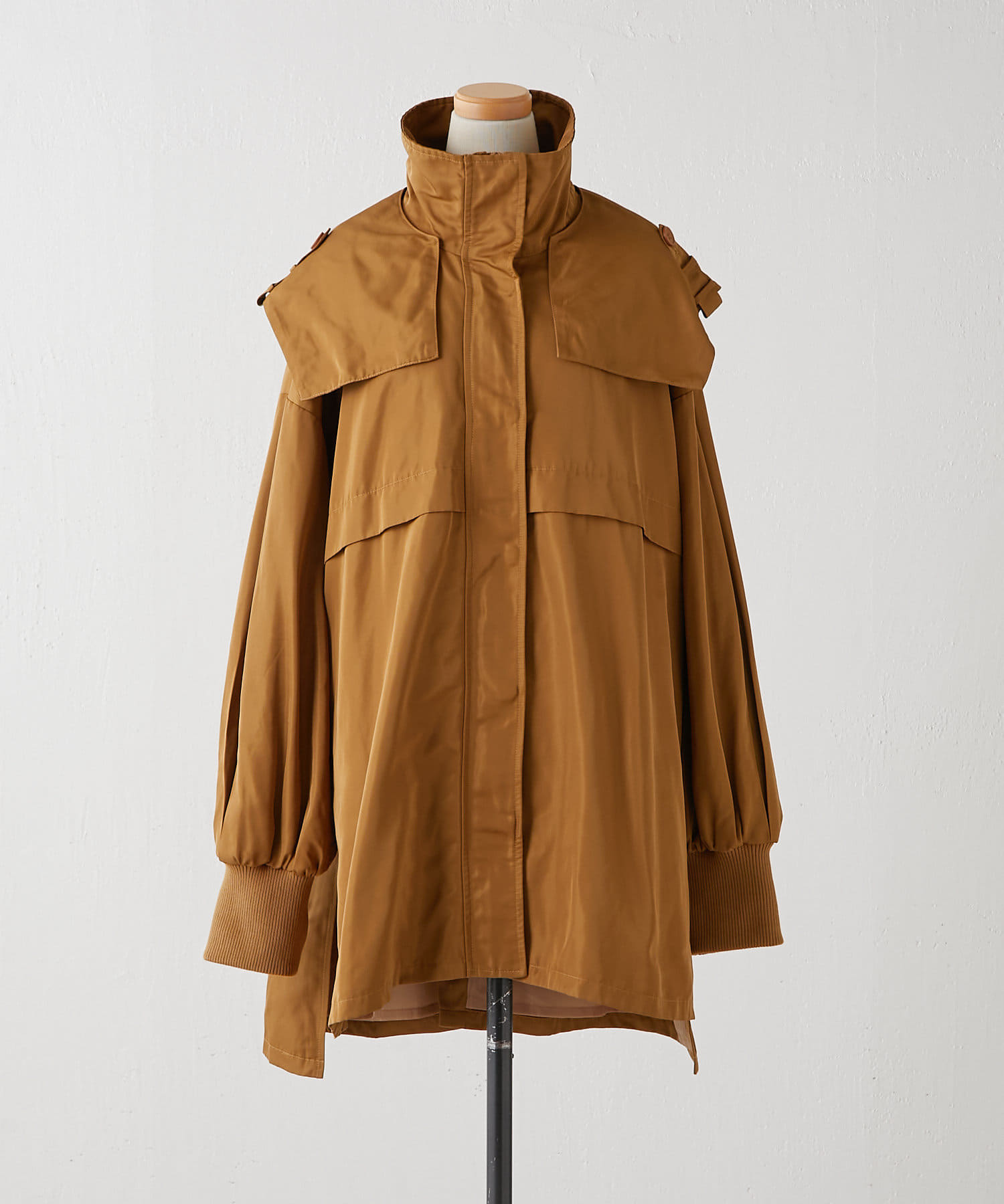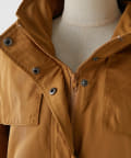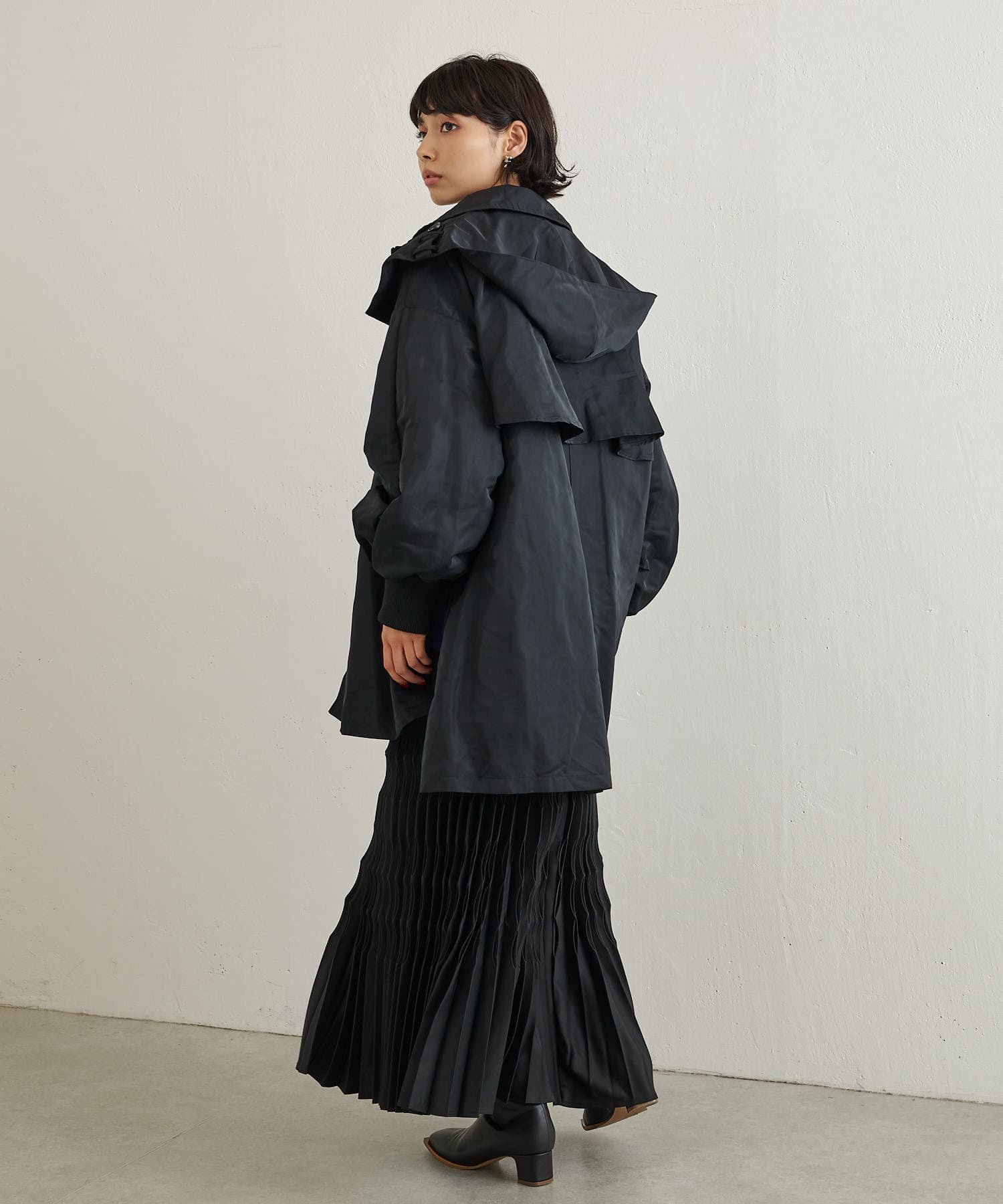 サムホール付きのリブ袖や取り外せるビッグフードなどディテールにこだわった1着。