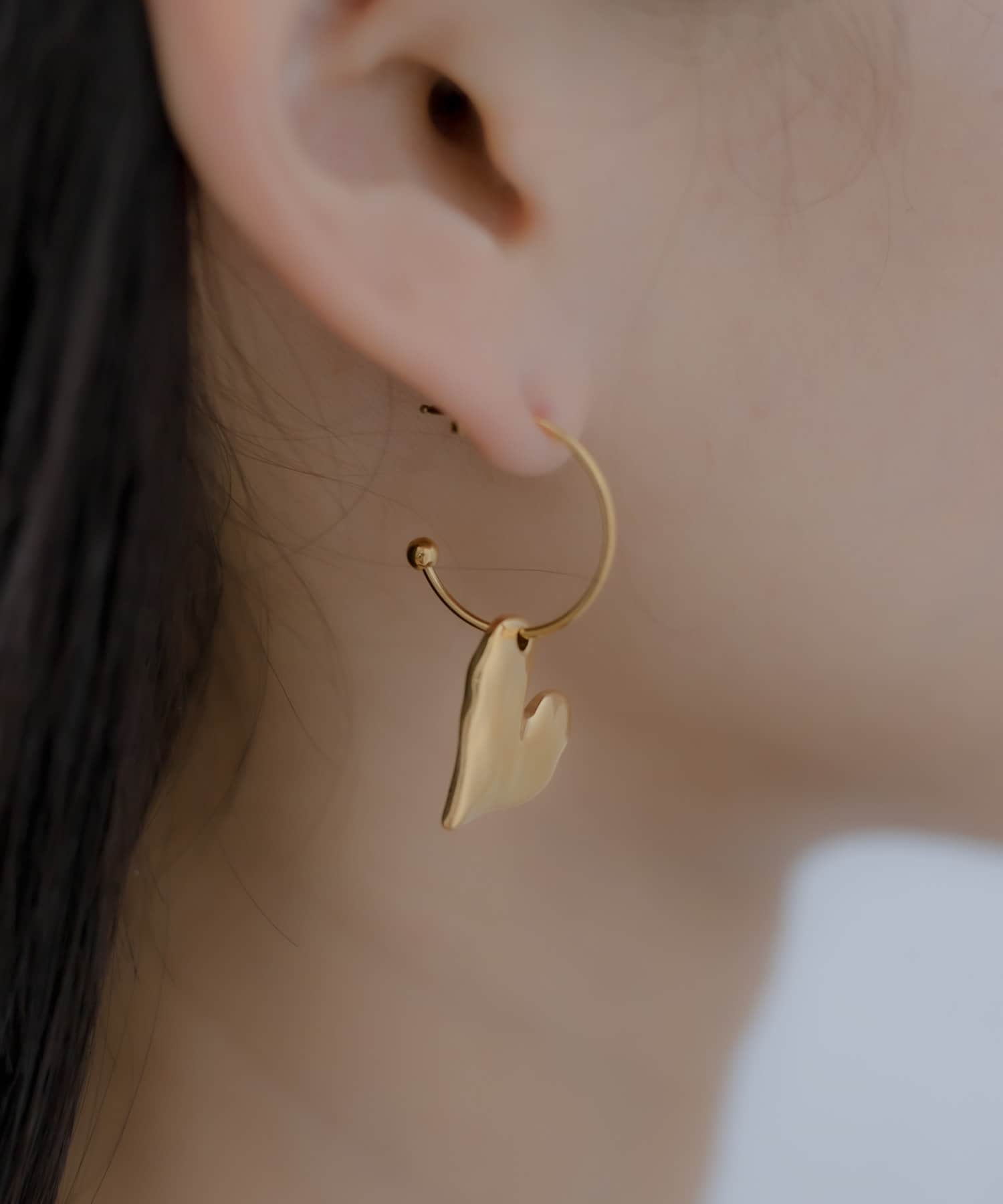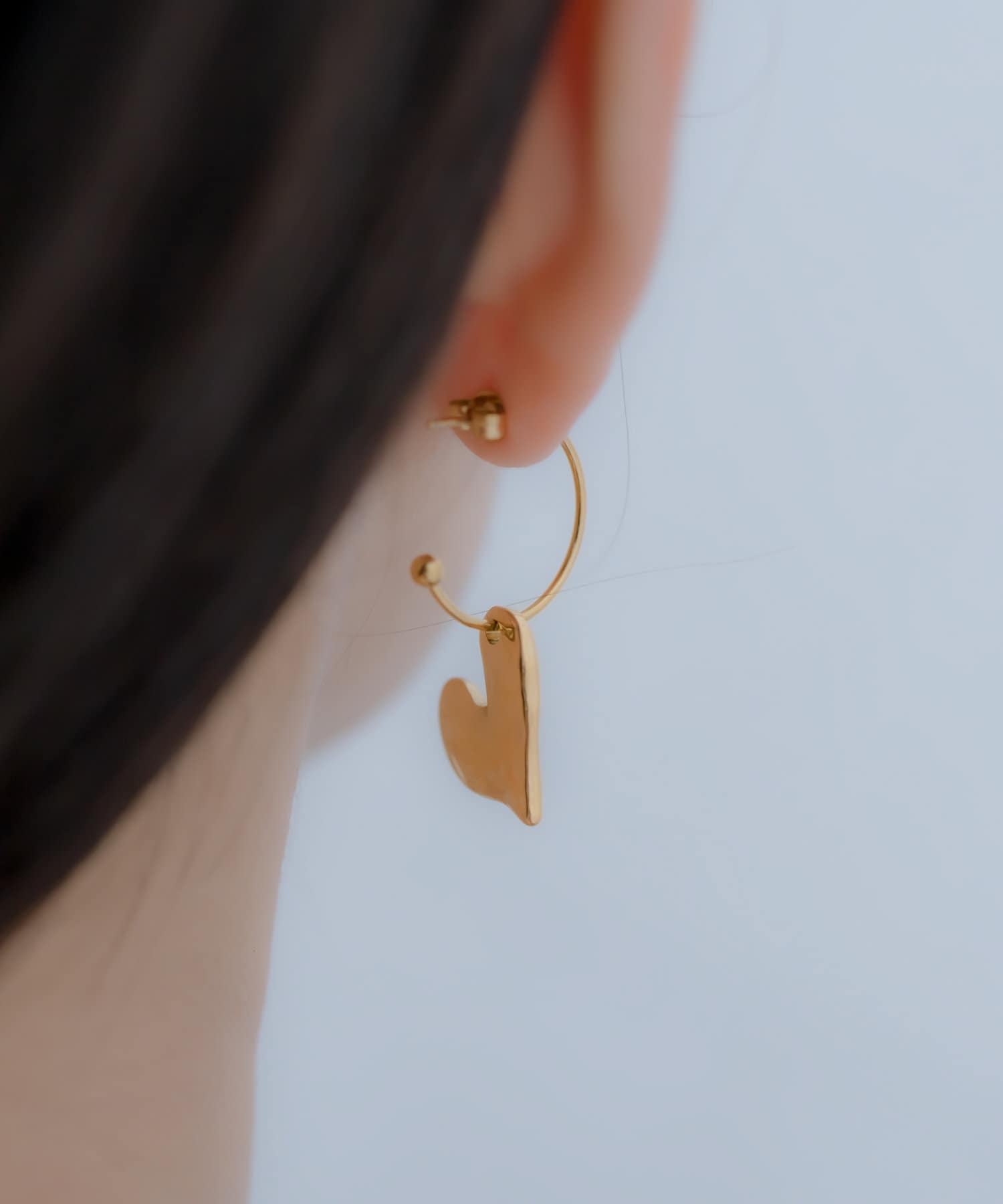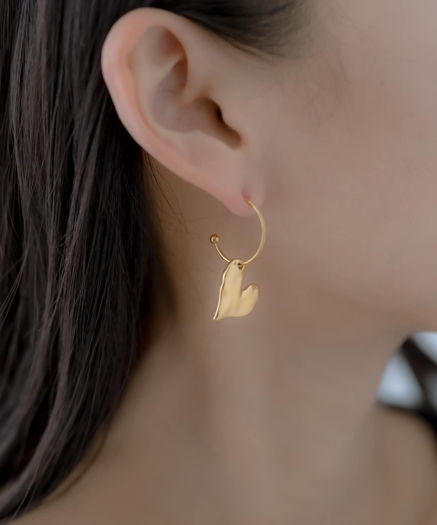 上品な印象の細いフープとクラフト感のある柔らかいハートのフォルムがお顔周りを素敵に演出。