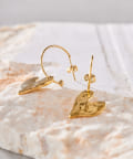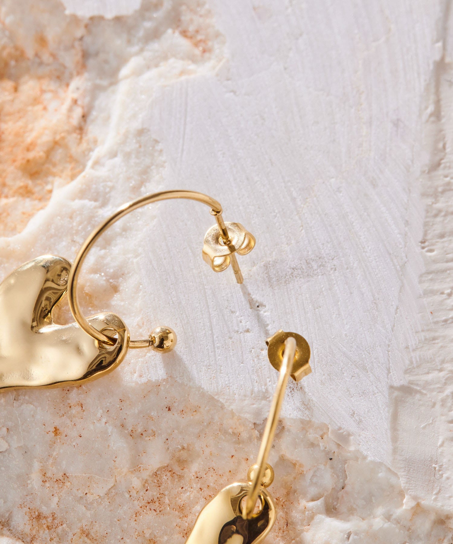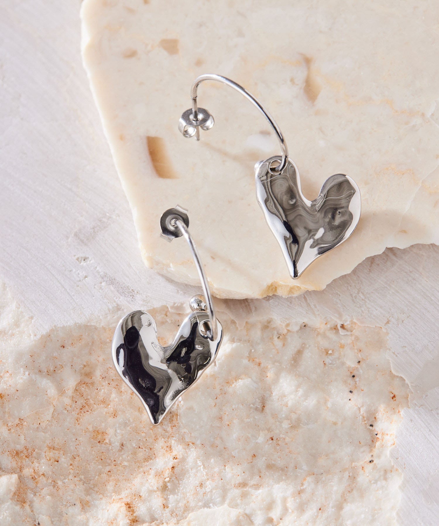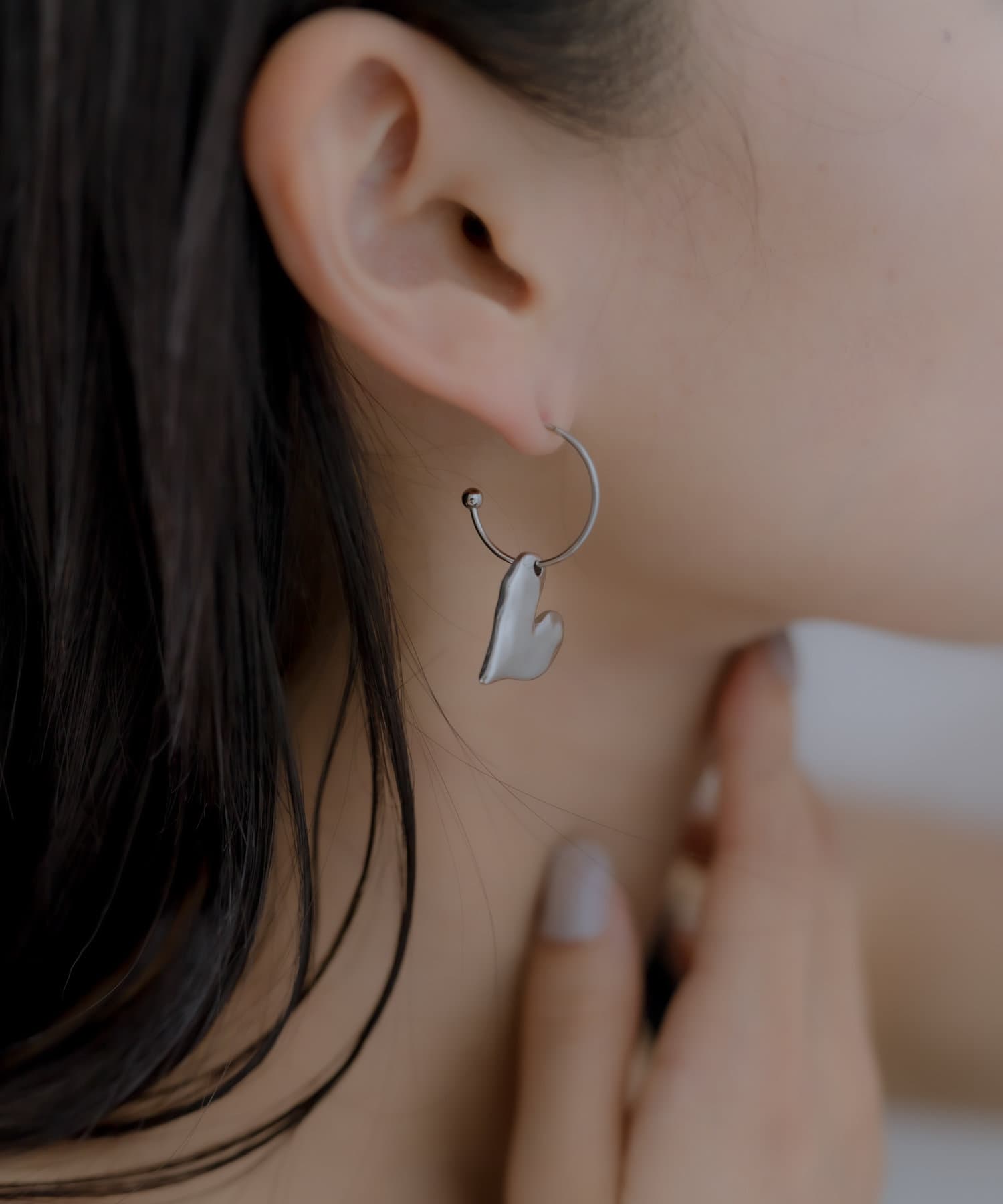 上品な印象の細いフープとクラフト感のある柔らかいハートのフォルムがお顔周りを素敵に演出。