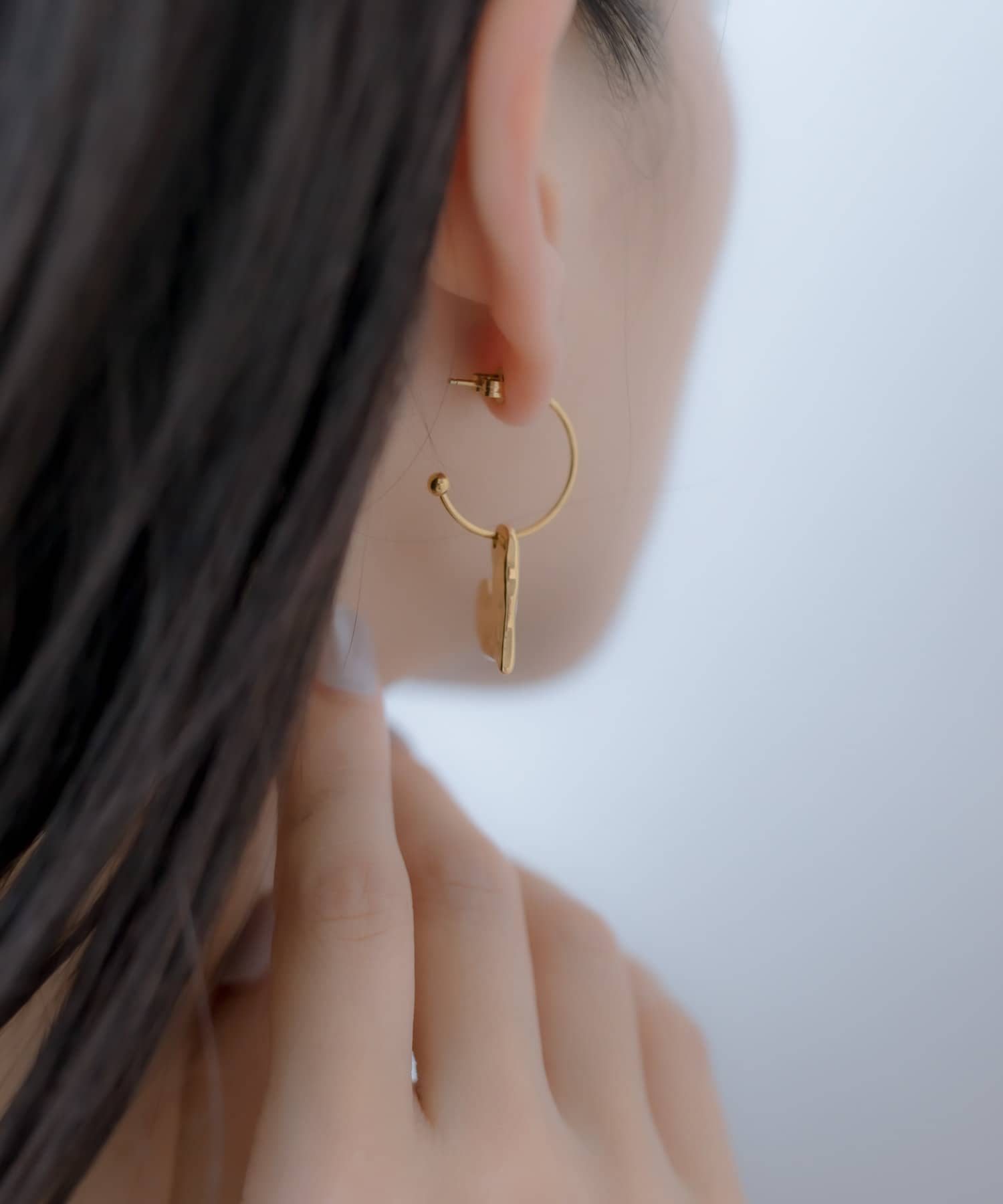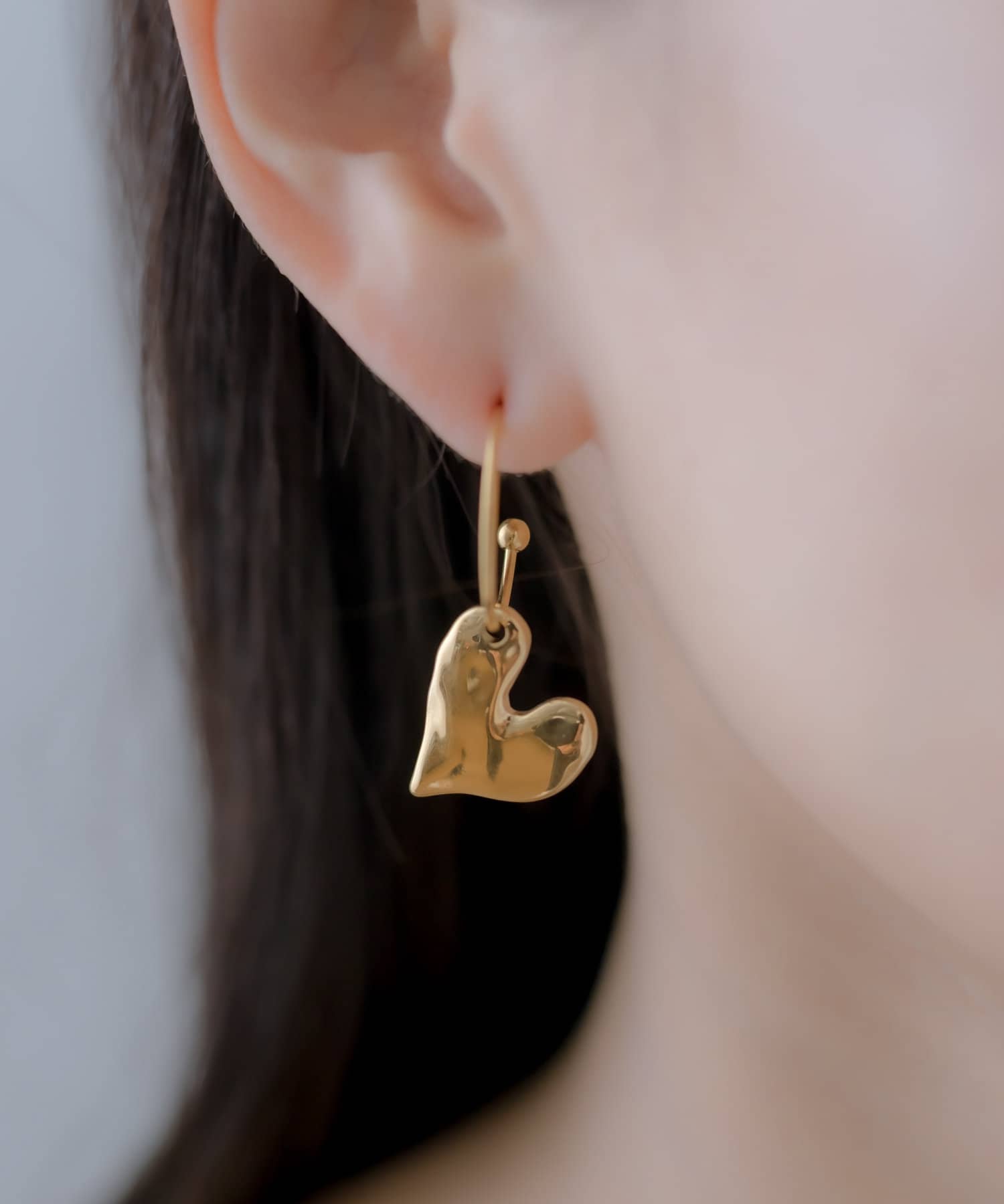 ハートパーツは取り外し可能なので、シンプルなフープピアスとしても着用可能です。