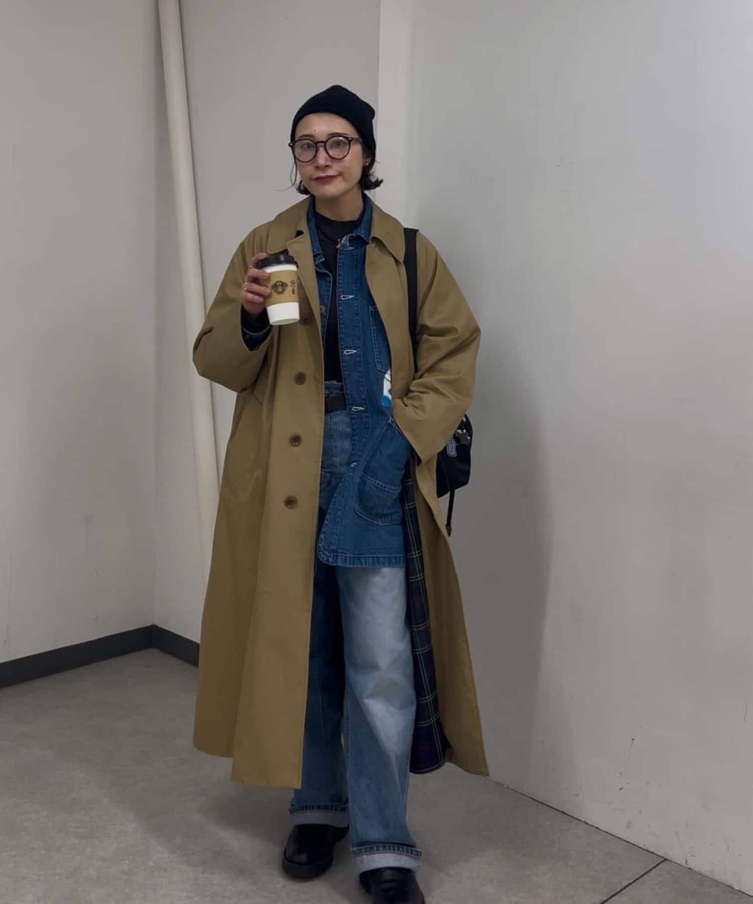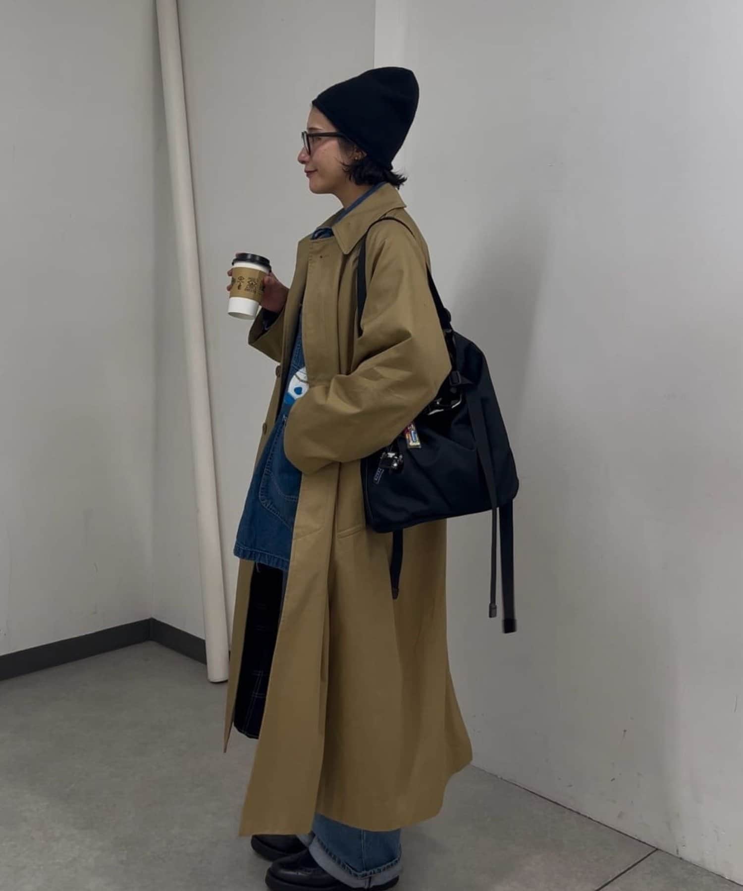 ちらっと覗く裏地のドット柄もコーディネートのポイントになり、