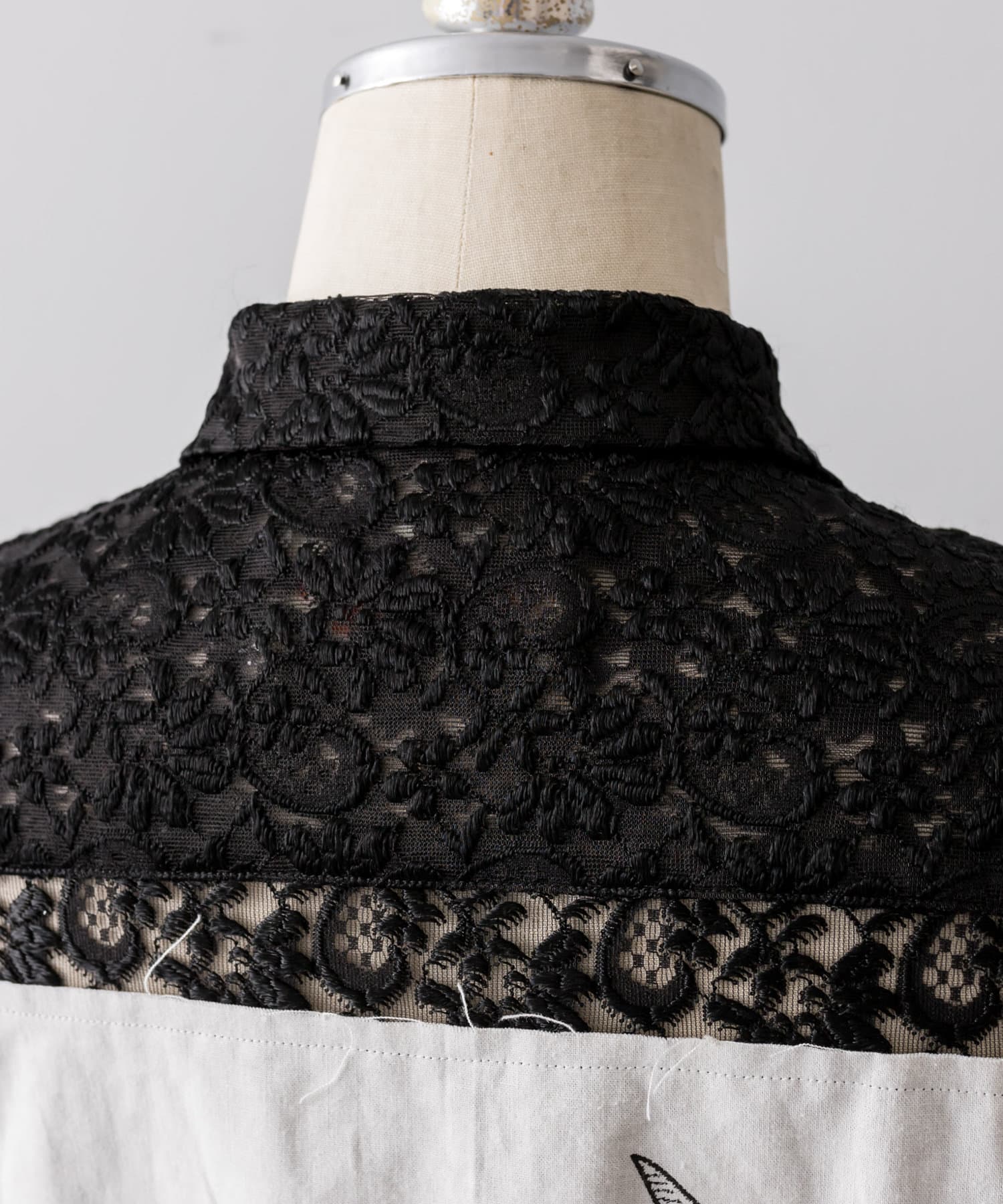 “刺しゅうは布の入れ墨”をコンセプトに、2018年に活動を開始した。“横振りミシン”(足での調節により針が左右に振れ、同時に手を動かすことで柄を構成するミシン。技術の習得に長い時間を要する)を用いた作風が特徴。