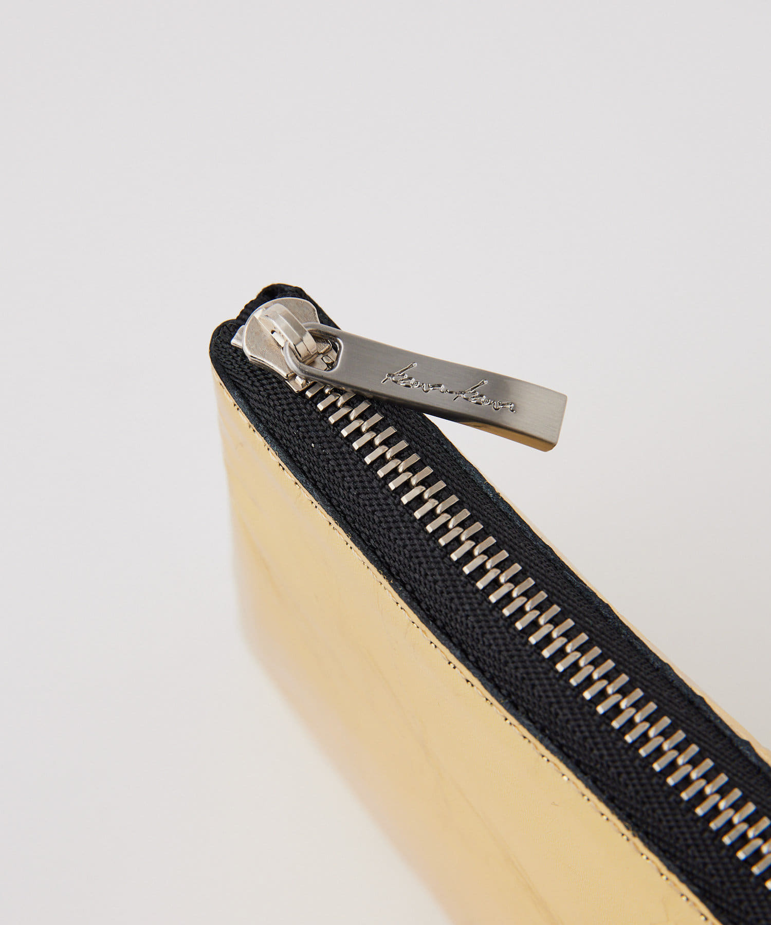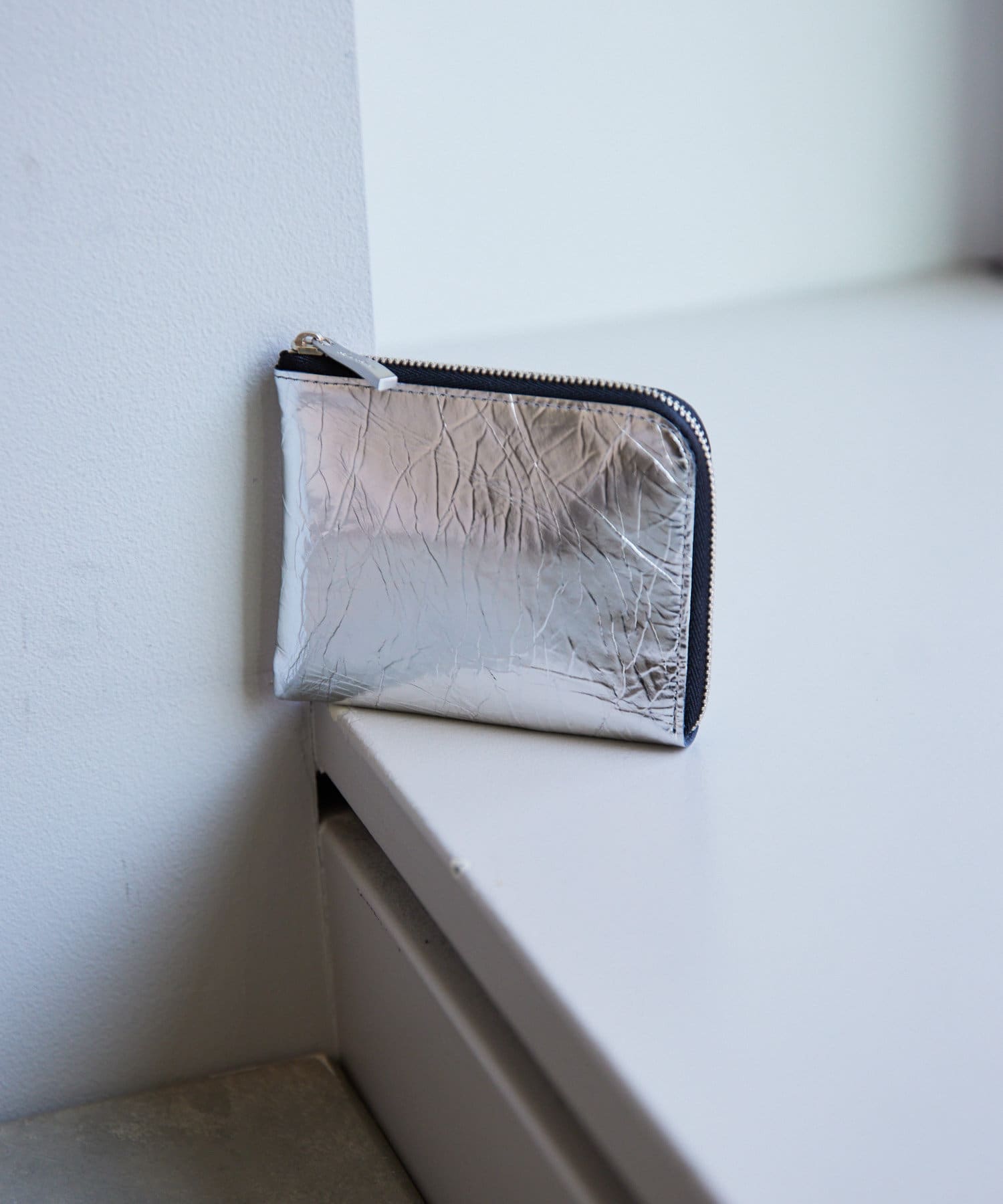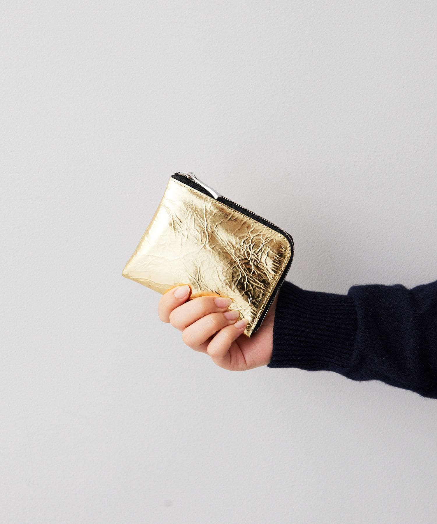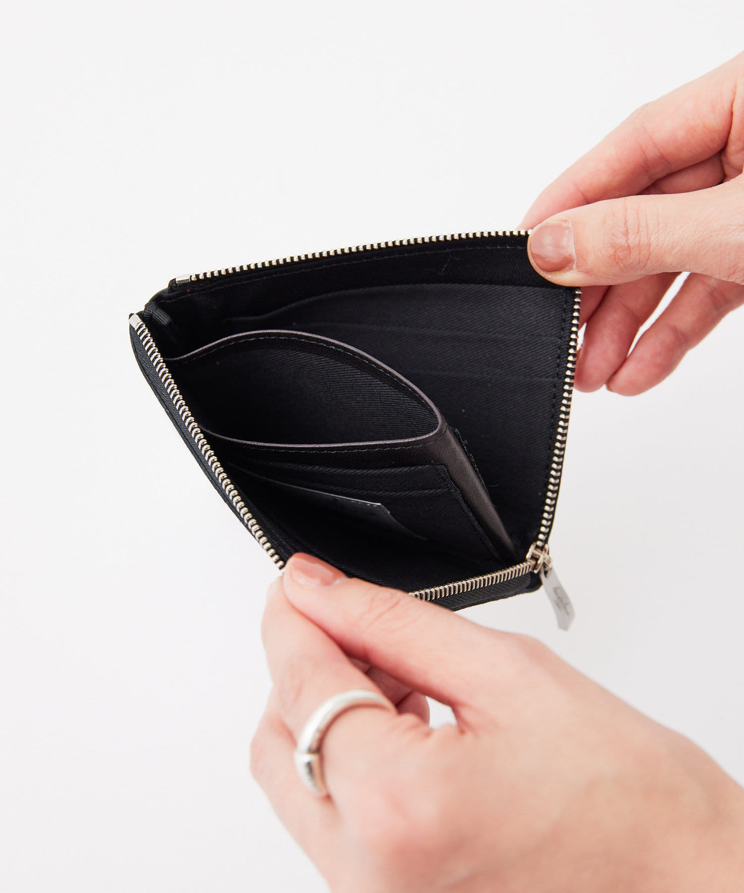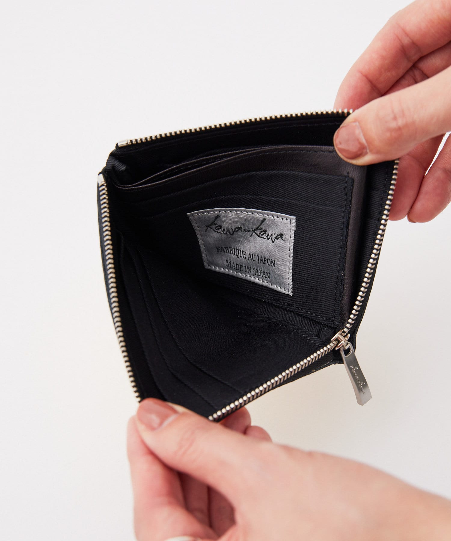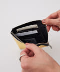 開口部はL字ファスナーですっきりスマートなデザインの折り財布。