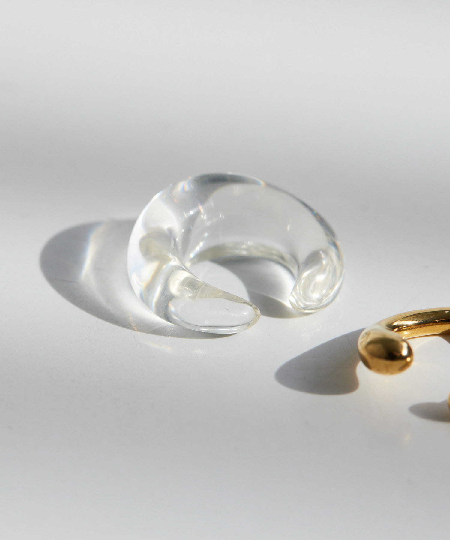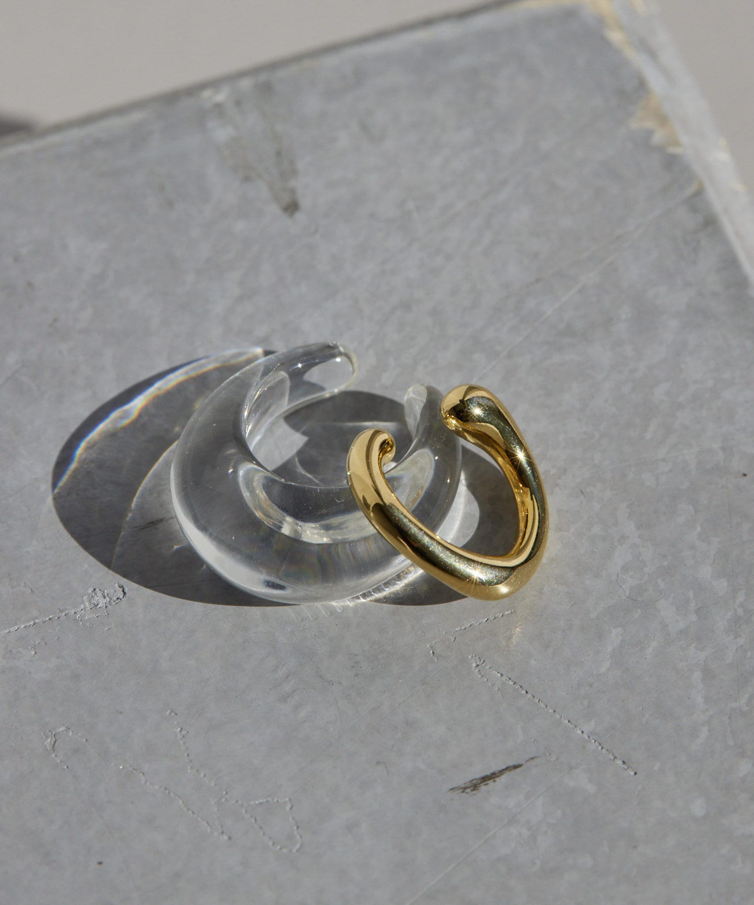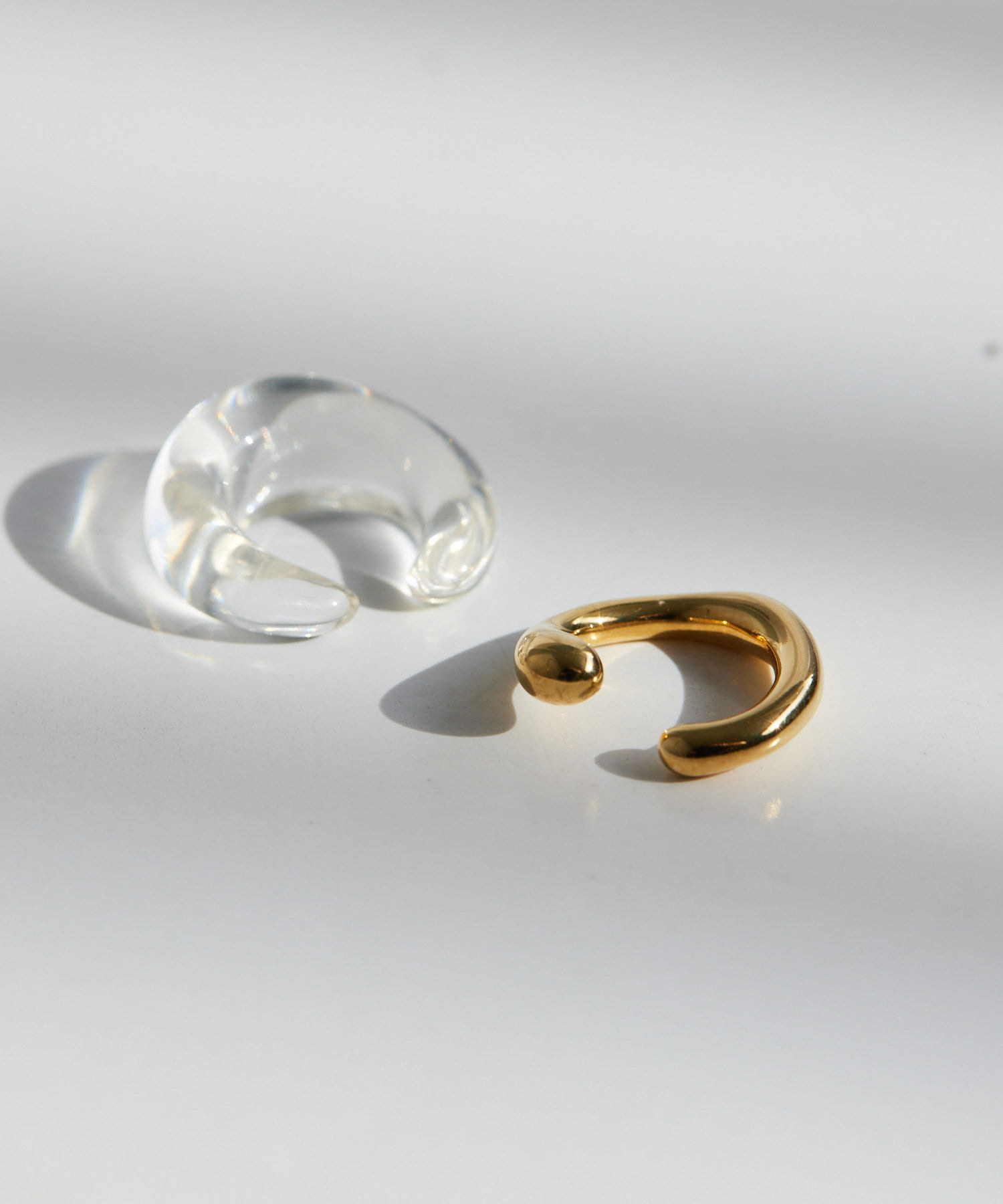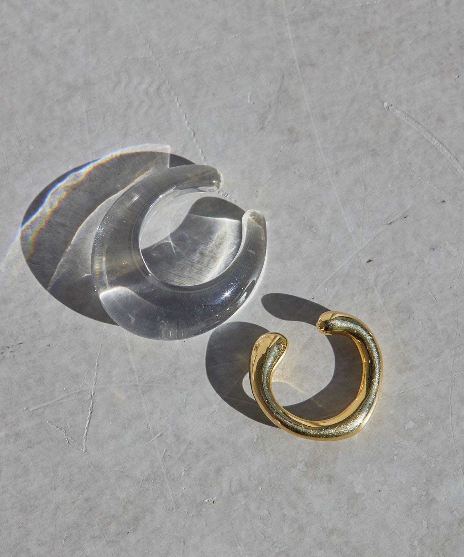 ゆるやかなラインを描いたフォルムが可愛いクリアとメタルのセットイヤーカフ。
