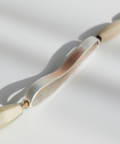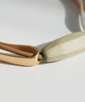 緩やかに湾曲したメタルパ―ツと暖かみのあるウッドパーツの組み合わせは洗練された大人っぽい印象。