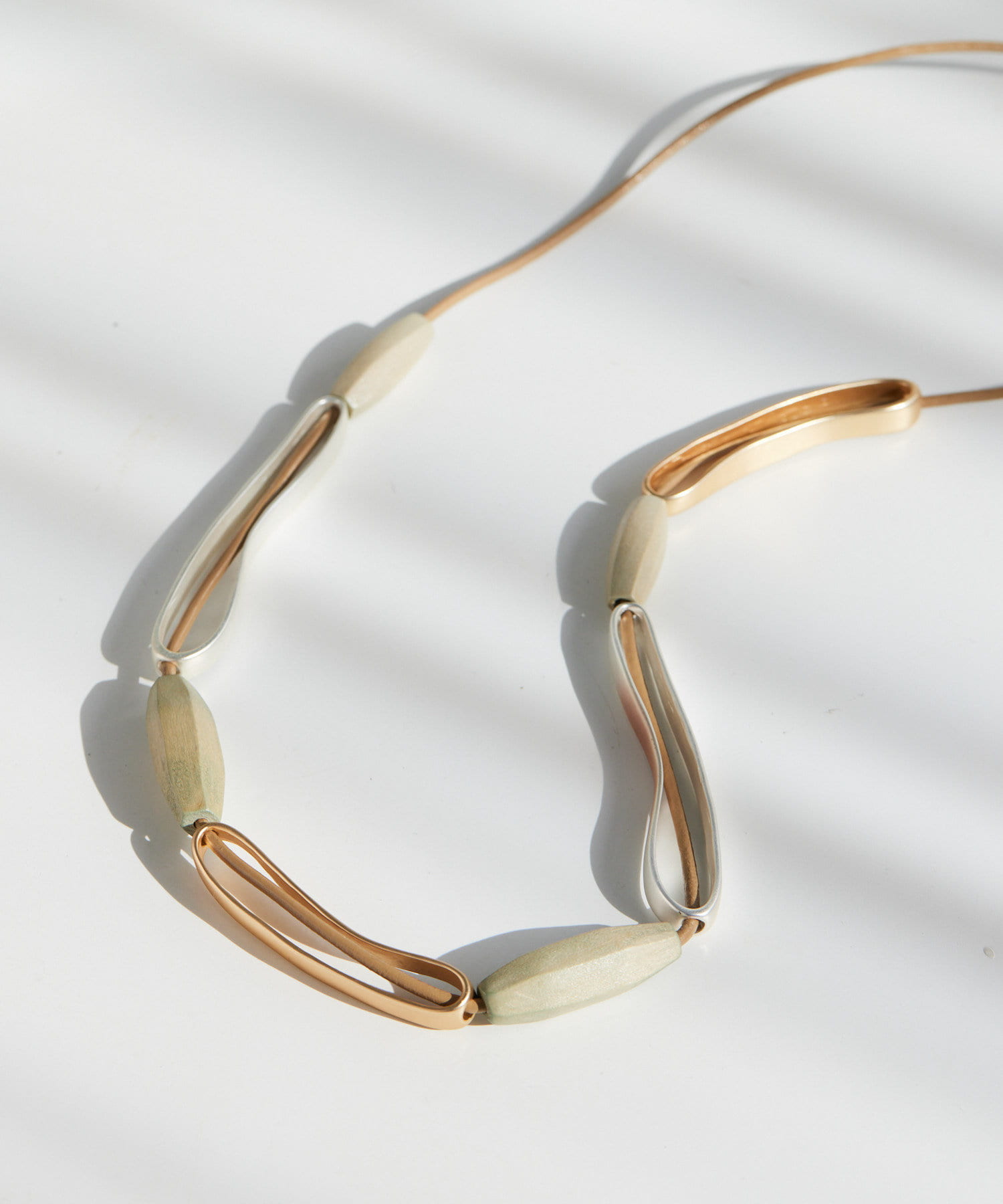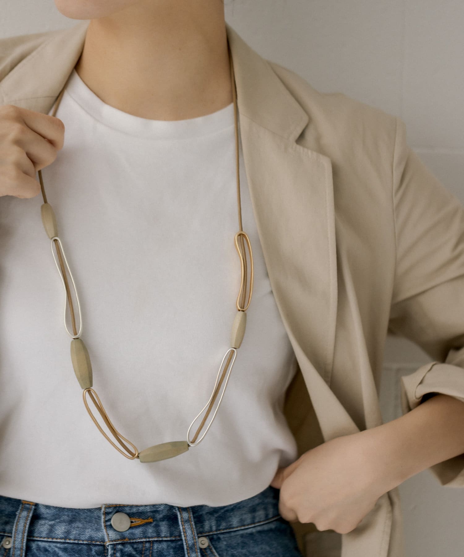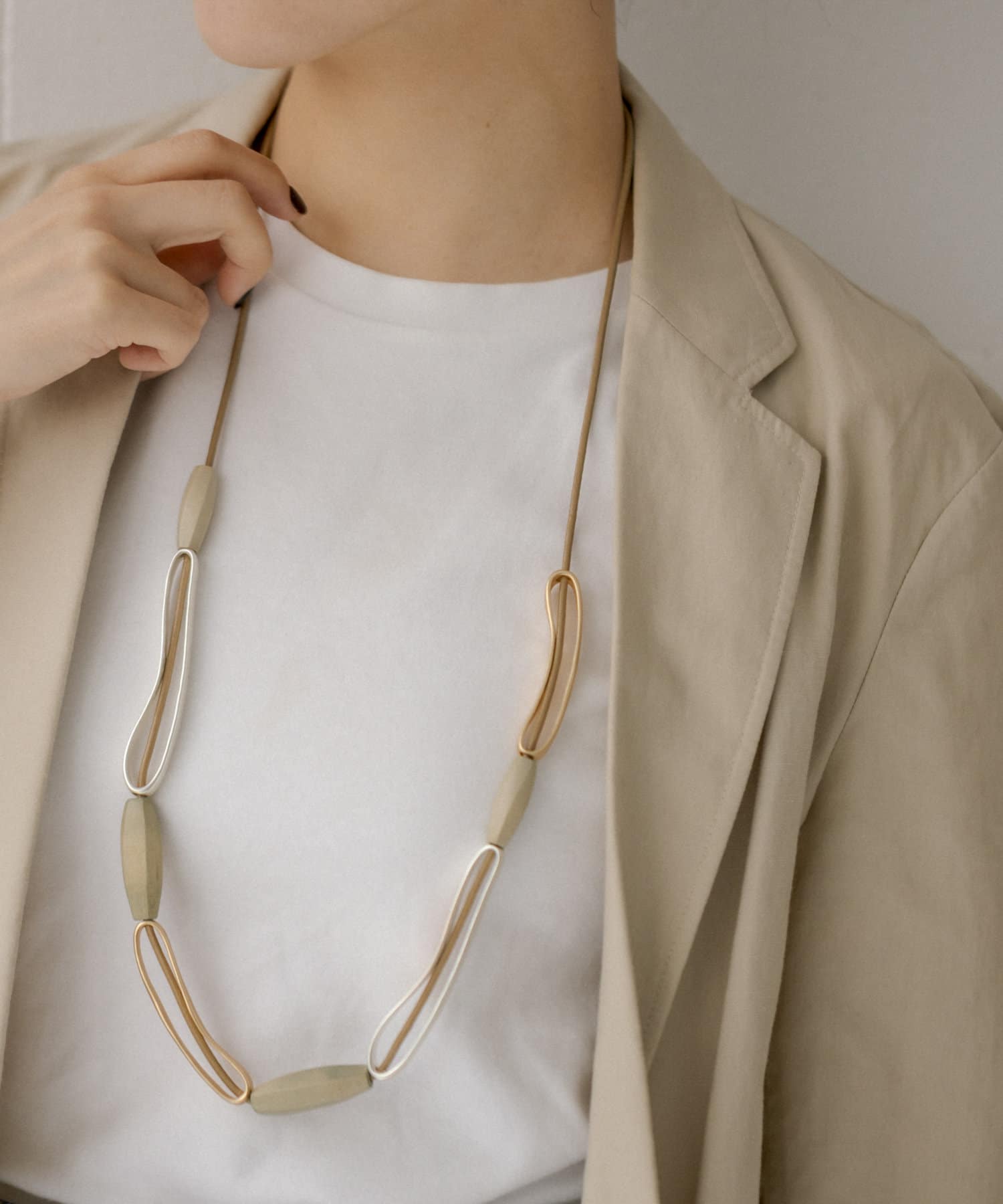 《ウッドパーツ使用》スルーケイブロングネックレス