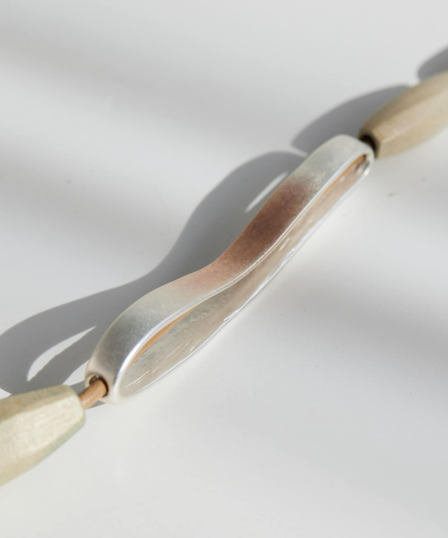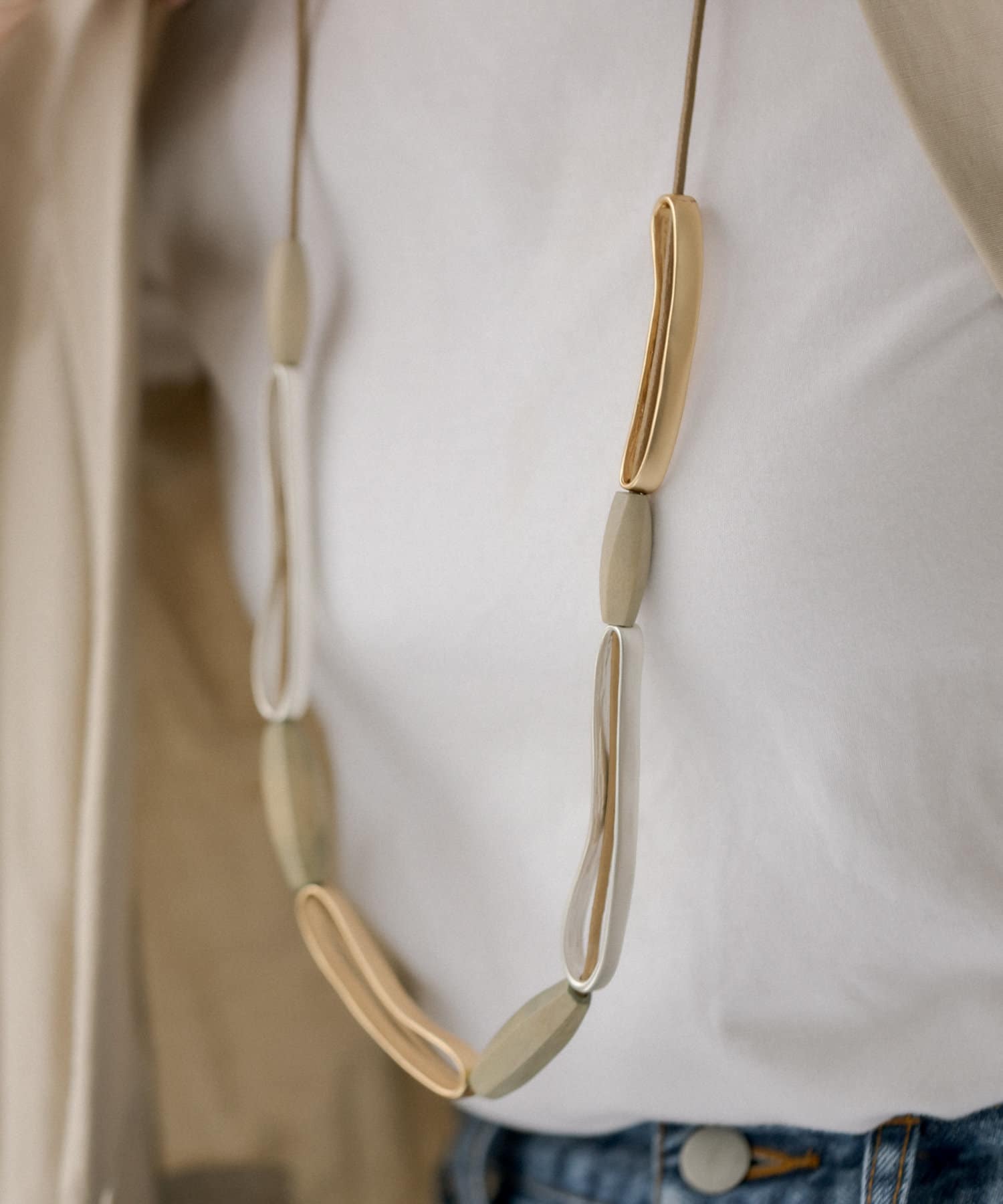 落ち着きのあるナチュラルな色合わせが魅力の大ぶりネックレス。