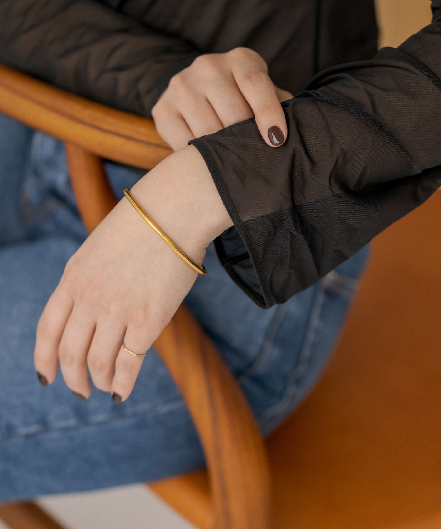 コーデに取り入れやすいシンプルデザインが魅力の正円バングル。